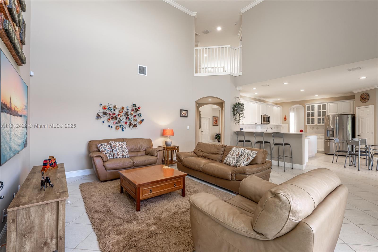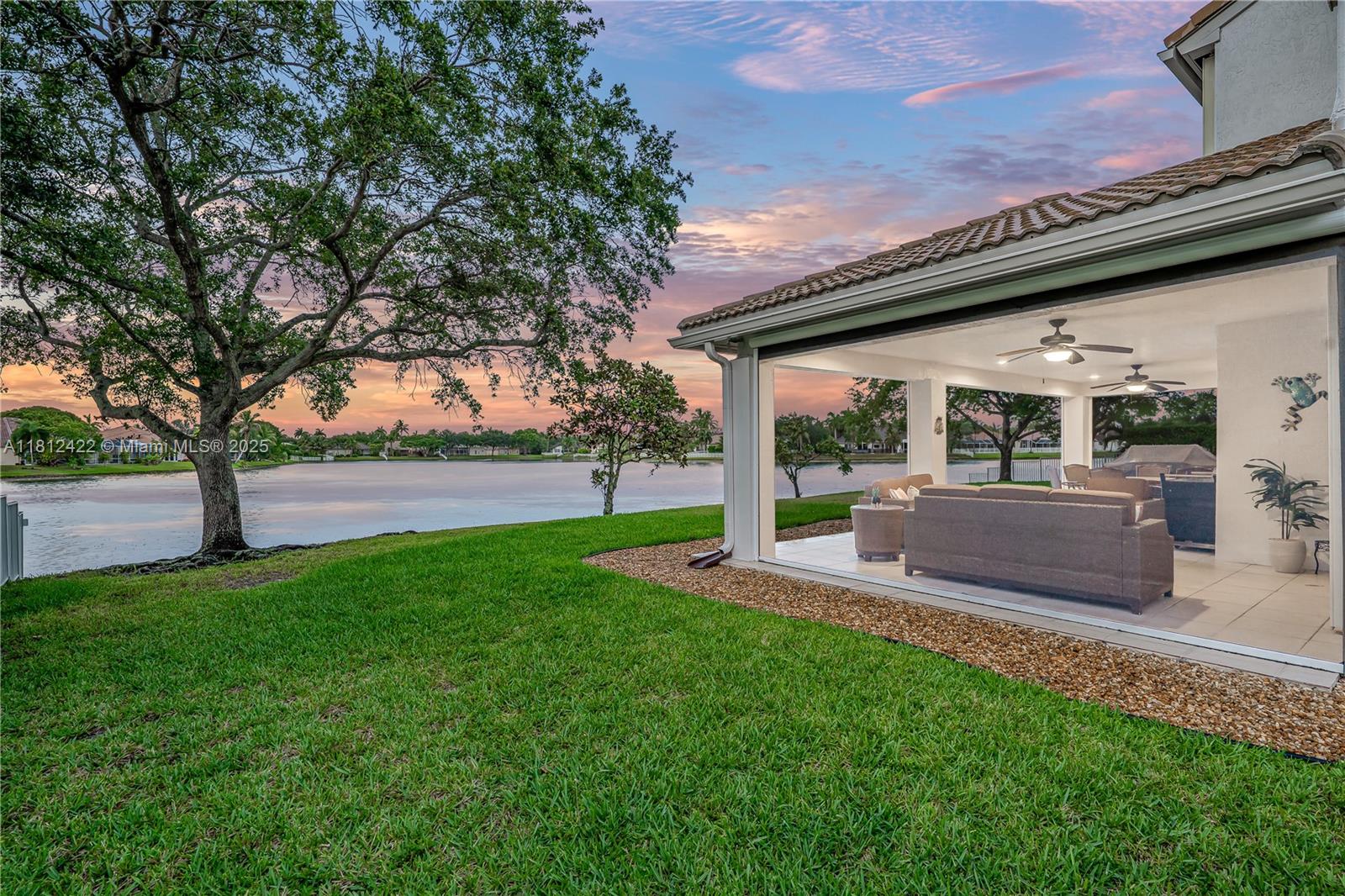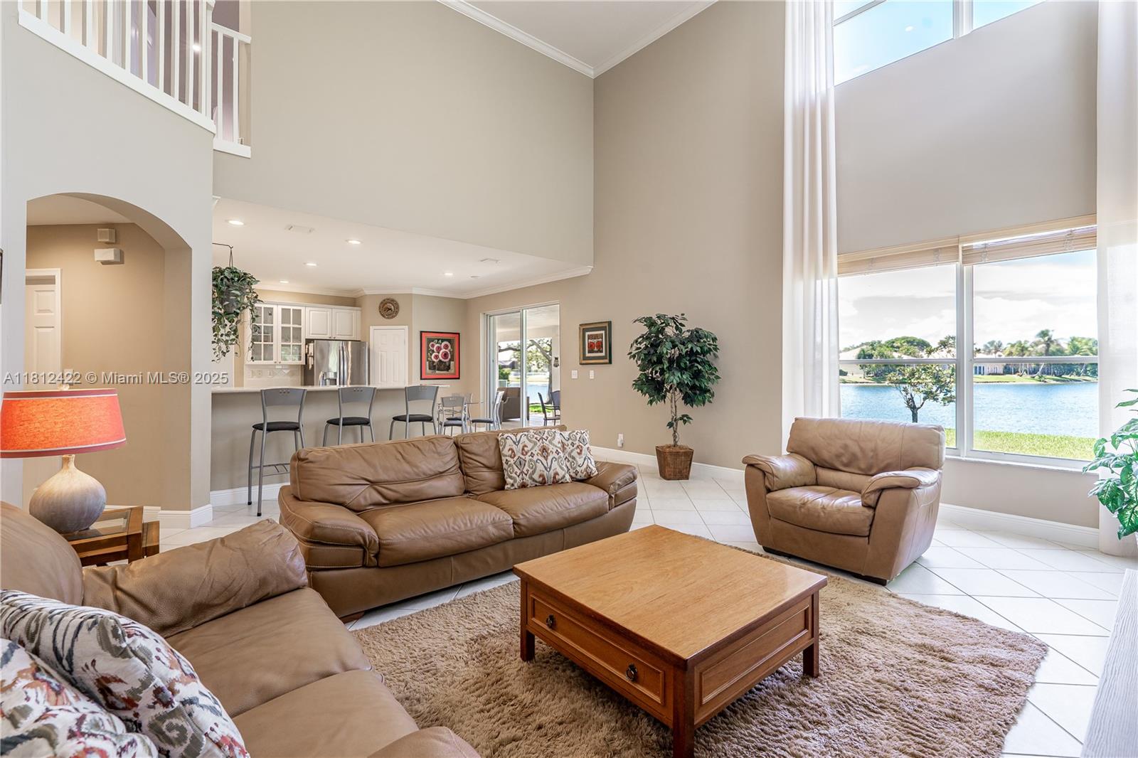 DISCOVER THE JOY OF COMING HOME TO SWEEPING LAKE VIEWS IN PEMBROKE FALLS * THIS GRAND CAYMAN MODEL WITH 5 BED, 4 BATH SITS ON A PIE-SHAPED LOT WITH 120 FT OF WATER FRONTAGE—A RARE FIND! RELAX UNDER YOUR CUSTOM EXTENDED COVERED PATIO WITH RETRACTABLE SCREENS - PERFECT FOR ENTERTAINING * ENJOY PEACE OF MIND DURING ANY STORM WITH A WHOLE HOME GENERATOR, PARTIAL IMPACT WINDOWS & ACCORDION SHUTTERS * THE SOARING 20-FOOT CEILINGS FILL THE OPEN CONCEPT KITCHEN & FAMILY ROOM WITH NATURAL LIGHT & ENERGY * THE OVERSIZED PRIMARY SUITE OFFERS A SITTING AREA, 2 WALK-IN CALIFORNIA CLOSETS & AN ADDITIONAL 3RD CLOSET * A SECONDARY BEDROOM & BATHROOM LOCATED ON THE FIRST FLOOR * COMMUNITY AMENITIES INCLUDE A RESORT-STYLE CLUBHOUSE, NATURAL GAS & MORE * HOA INCLUDES CABLE, INTERNET, 24HR SECURITY & MORE!
