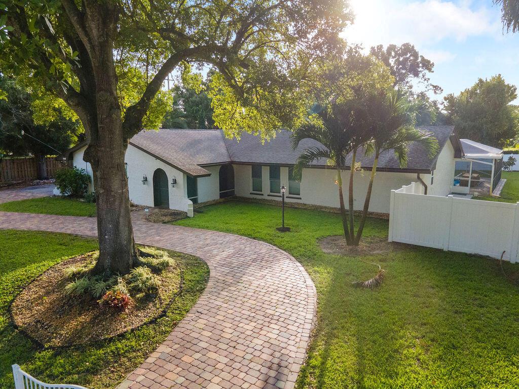 Back on Market! Brand New Roof with Transferable Warranty! Enjoy timeless Old Florida charm in this beautifully maintained 4BR/3BA home on a private 0.64-acre lot with nearly 2,000 sq ft of updated living space. Features include a split floor plan, quality finishes, and exceptional craftsmanship by a local contractor who built beyond code. Relax by the screened, solar-heated saltwater pool surrounded by lush landscaping and a 900+ sq ft paver pool deck (2019). A 6' privacy fence encloses the property, including a gated circular paver driveway. Located minutes from beaches, shopping, dining, parks, and recreation. Classic Florida character with modern updates throughout. Schedule your showing today!