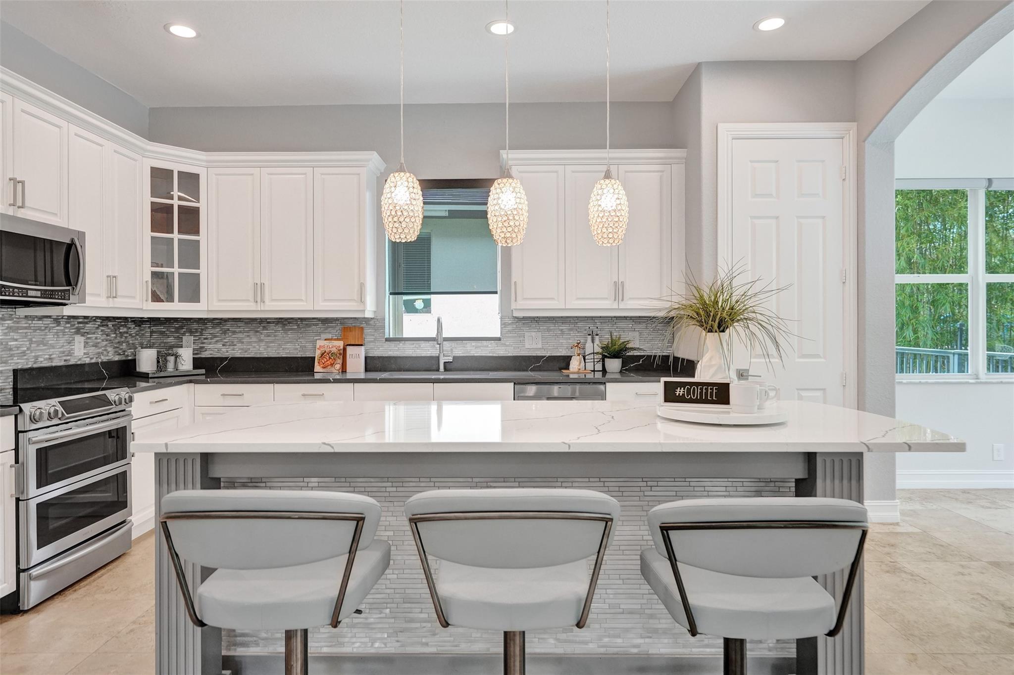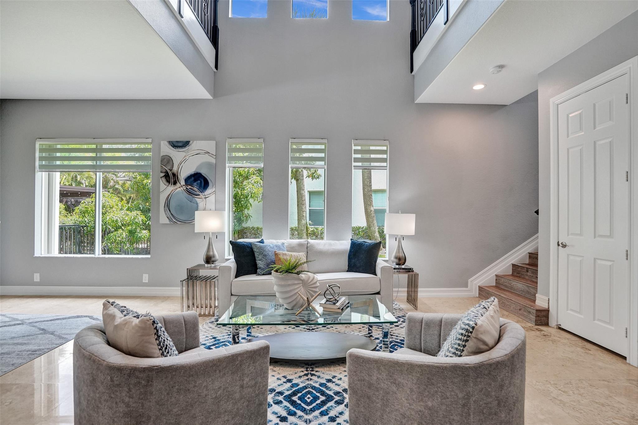 Beautifully renovated St. John Expanded model in Heron Bay. This 2-story 4BR + loft, 3BA home features a private pool, fenced yard, and 2-car garage with EV charger wired. Updated kitchen with white quartz countertops, stainless appliances, and open living/family space. Marble tile downstairs, laminate upstairs. First-floor bedroom with full bath. Upstairs offers a large primary suite with balcony, Jack-and-Jill bedrooms, loft, and laundry room with sink. Updates include pool refinished (2024), pool pump (2021), water heater (2019), 2 impeccably maintained AC units (2016), garage storage, and insulated attic. Upgraded Modern Light Fixtures & Custom Window Treatments, Low HOA Dues:2 Resort Clubhouses w/Tennis,Fitness Center,2 pools,pickle ball,24-Hour Guard Gated, & A+ Schools!