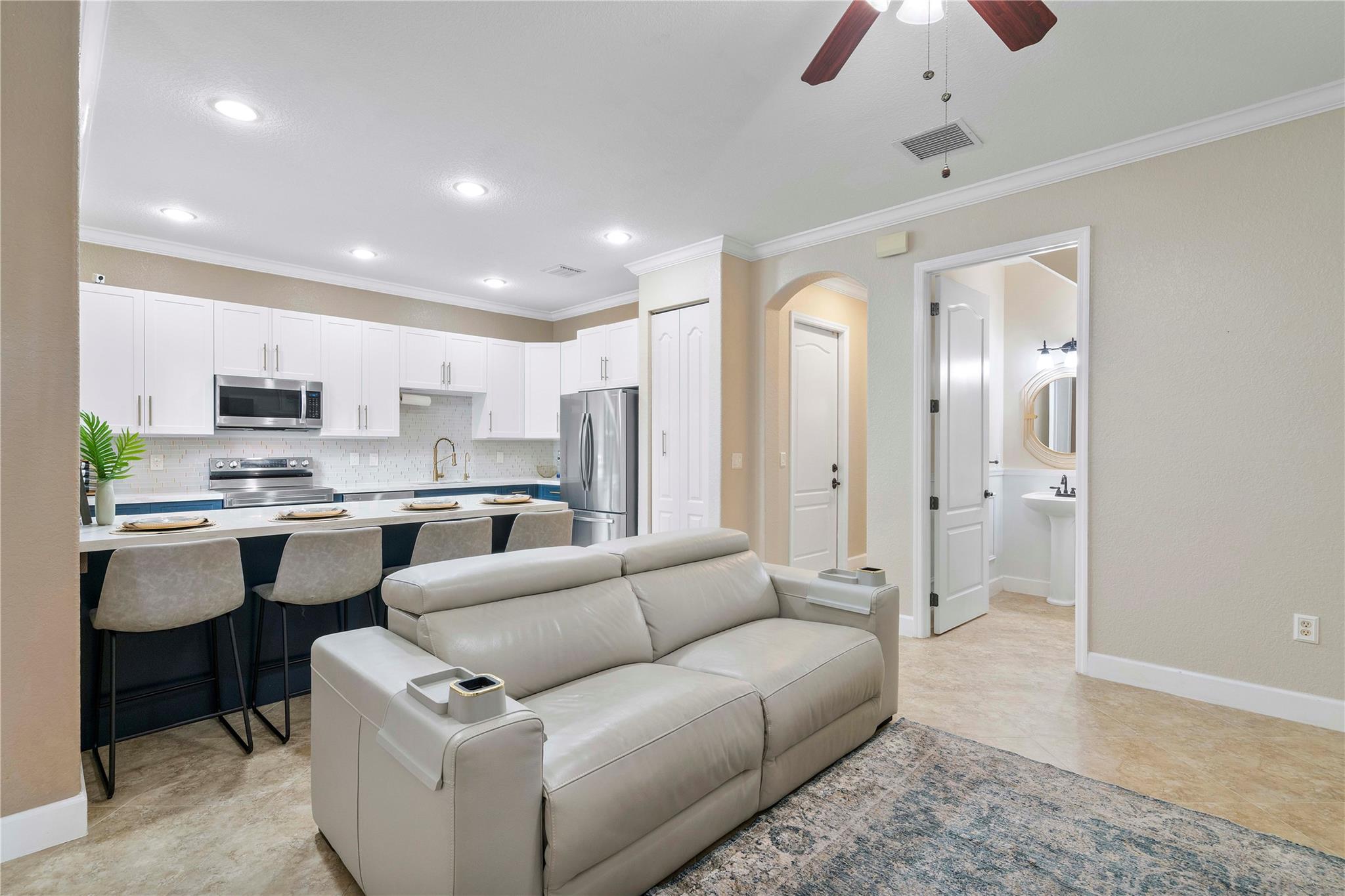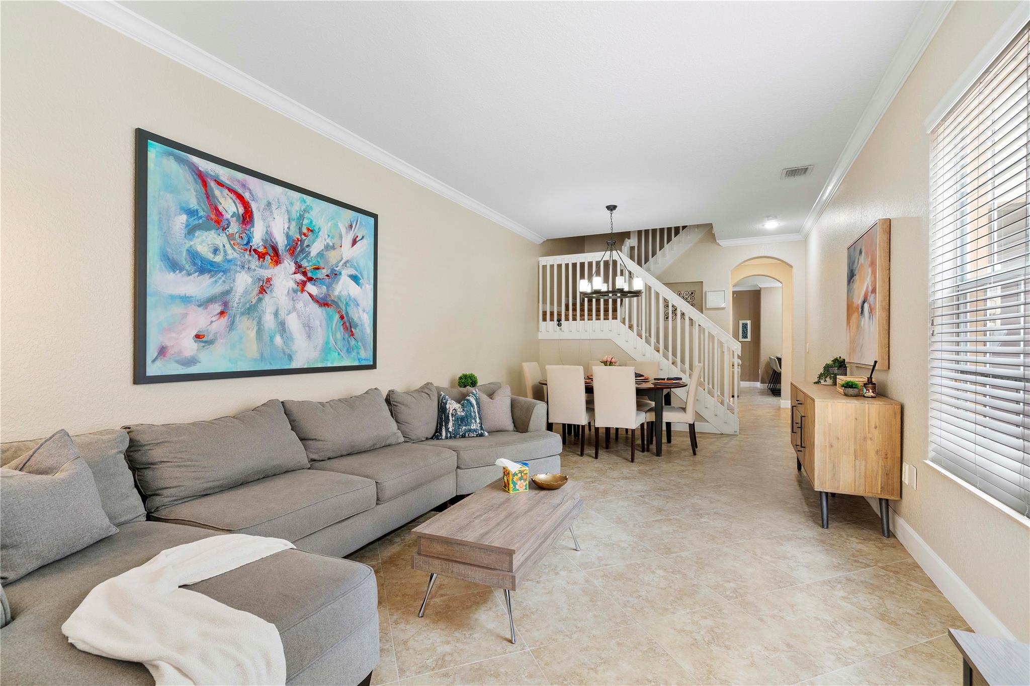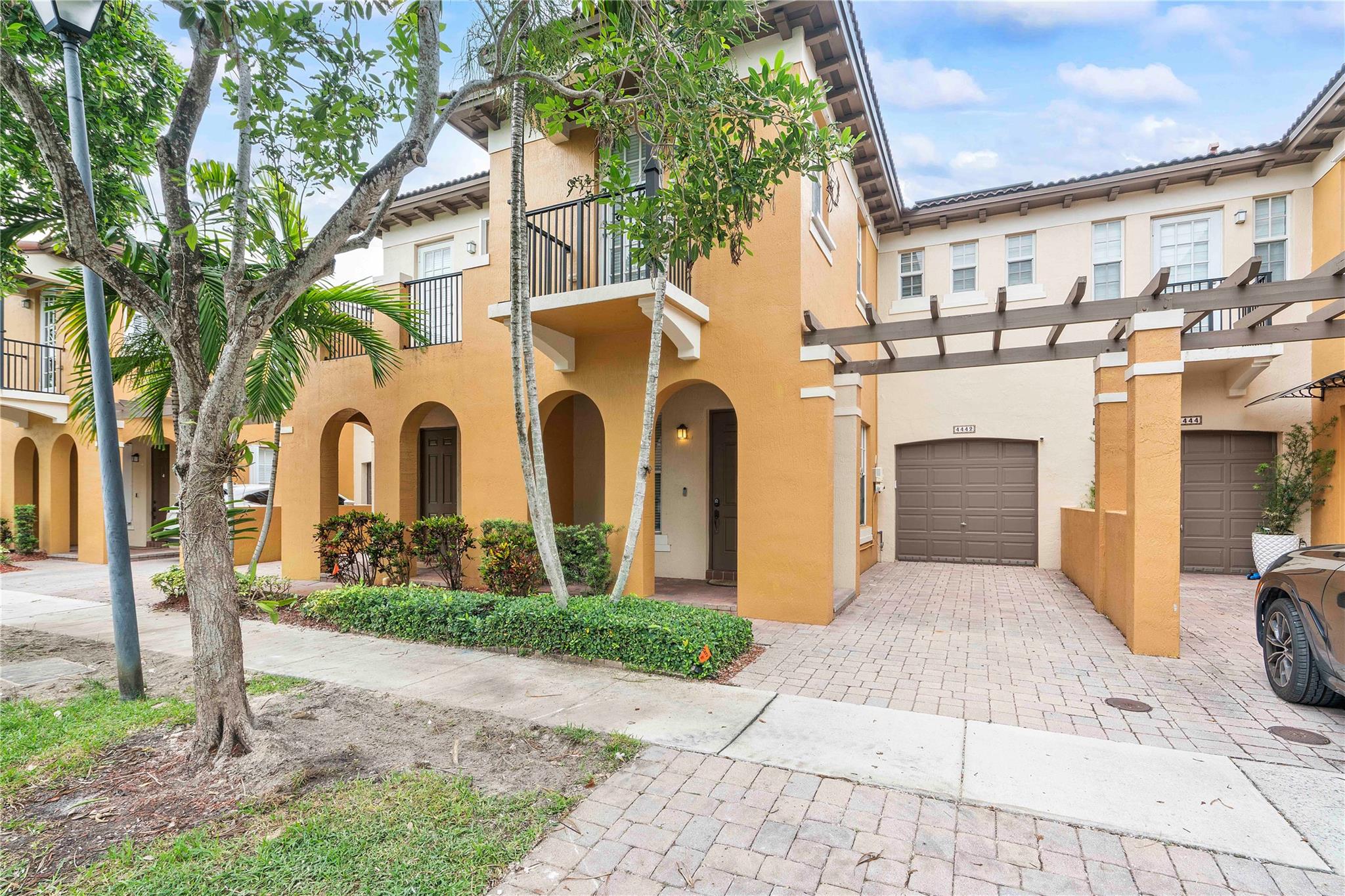 Lovely townhome nestled in desirable Cimarron community. From your covered porch, enter to a spacious layout through a combined living/dining area. The updated kitchen opens to the living room, with views of a fenced courtyard. First floor also offers a single-car garage & half bathroom. The second floor landing splits to two guest rooms a full-bathroom and laundry area. The primary suite has two large closets upgraded with built-in shelving & a modern bathroom. Large layout allows for addition seating area. Unpack your bags & enjoy. Area is highly desired for it's A-rated schools, convenience to airport, dining, parks & entertainment. low HOA includes ADT, fiber internet, community pool, & maintenance. no lease 1st year, association approval required.