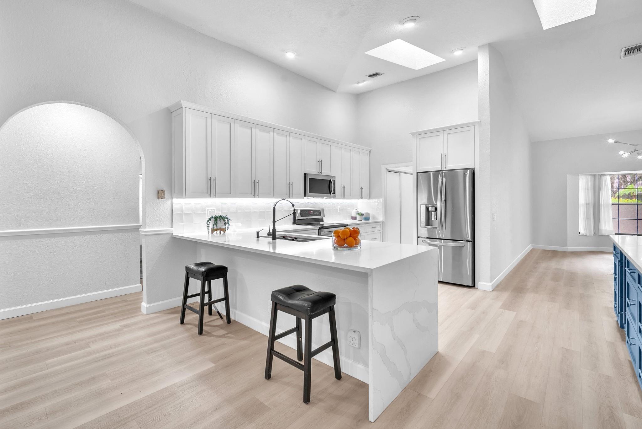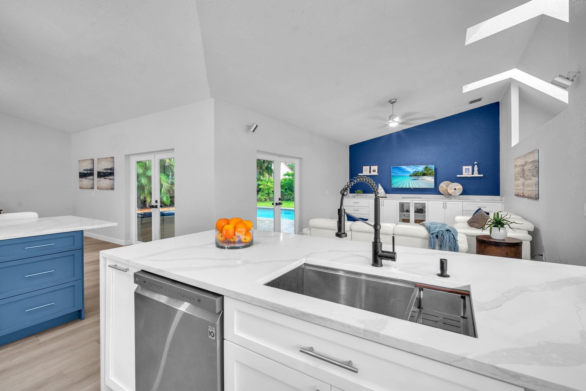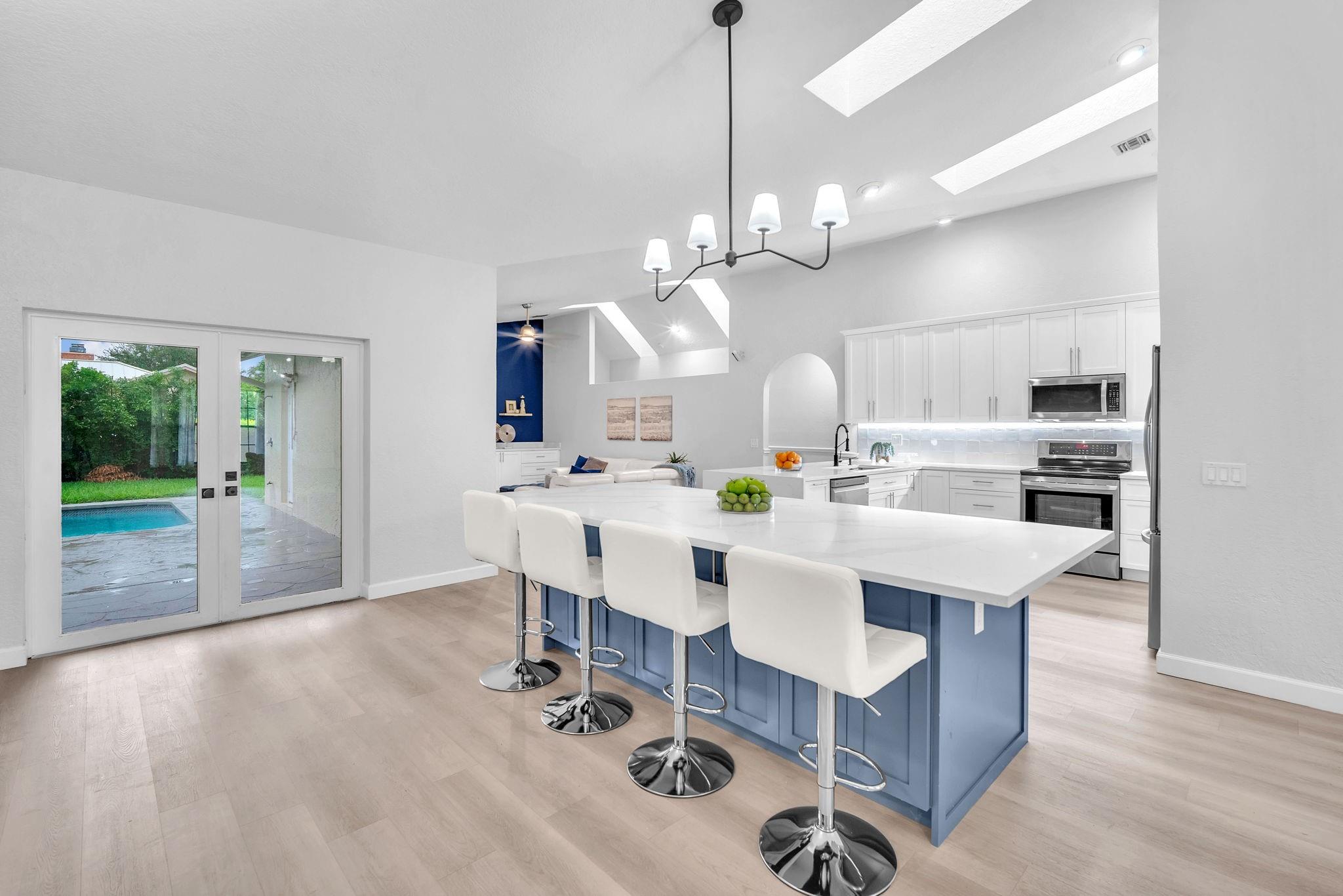 Professional Pics coming soon. Beautifully remodeled 1 story home with circular driveway and pool. Vaulted ceilings. Professionally designed open kitchen was recently remodeled with upgraded 42 inch wood cabinets, quartz countertops, handmade tile backsplash, and stainless steel appliances. Double Island with 8 + seating. Master bath recently remodeled with soak in tub, separate shower and double vanity. Large pool and yard with cabana bathroom. Family Room remodeled with built in entertainment area boasting gorgeous view of pool area. Large Open Dining and Living Room with vaulted ceilings. Split 1 story plan. Beautiful community in Coral Springs within walking distance to shopping and restaurants.
