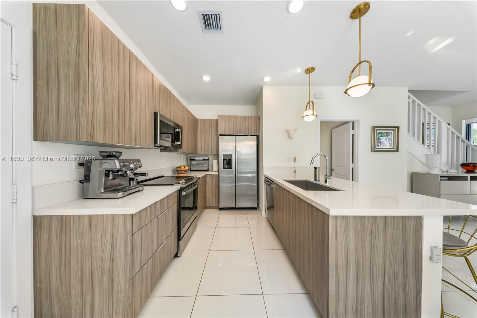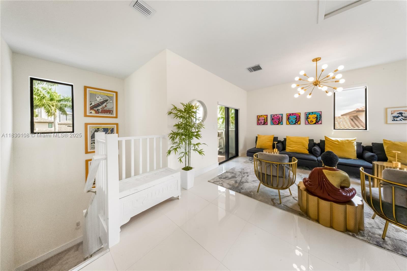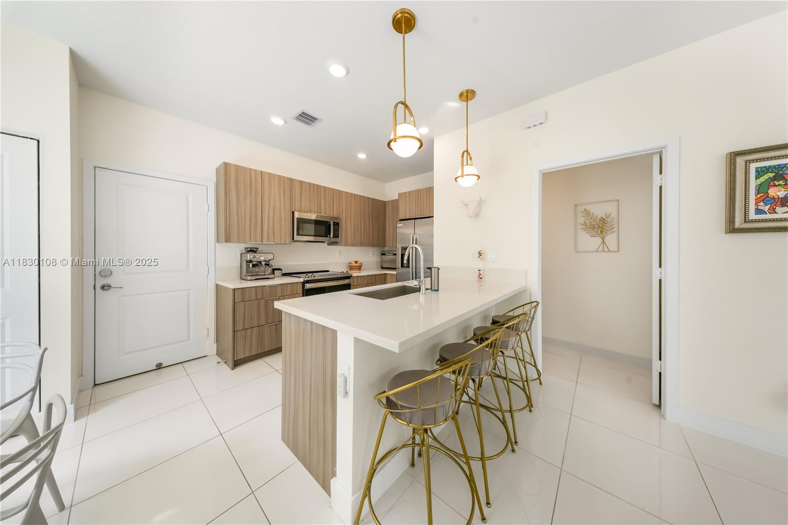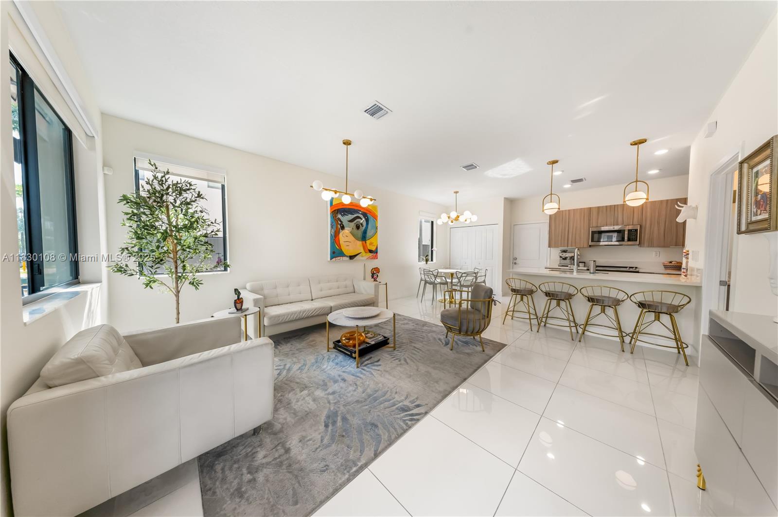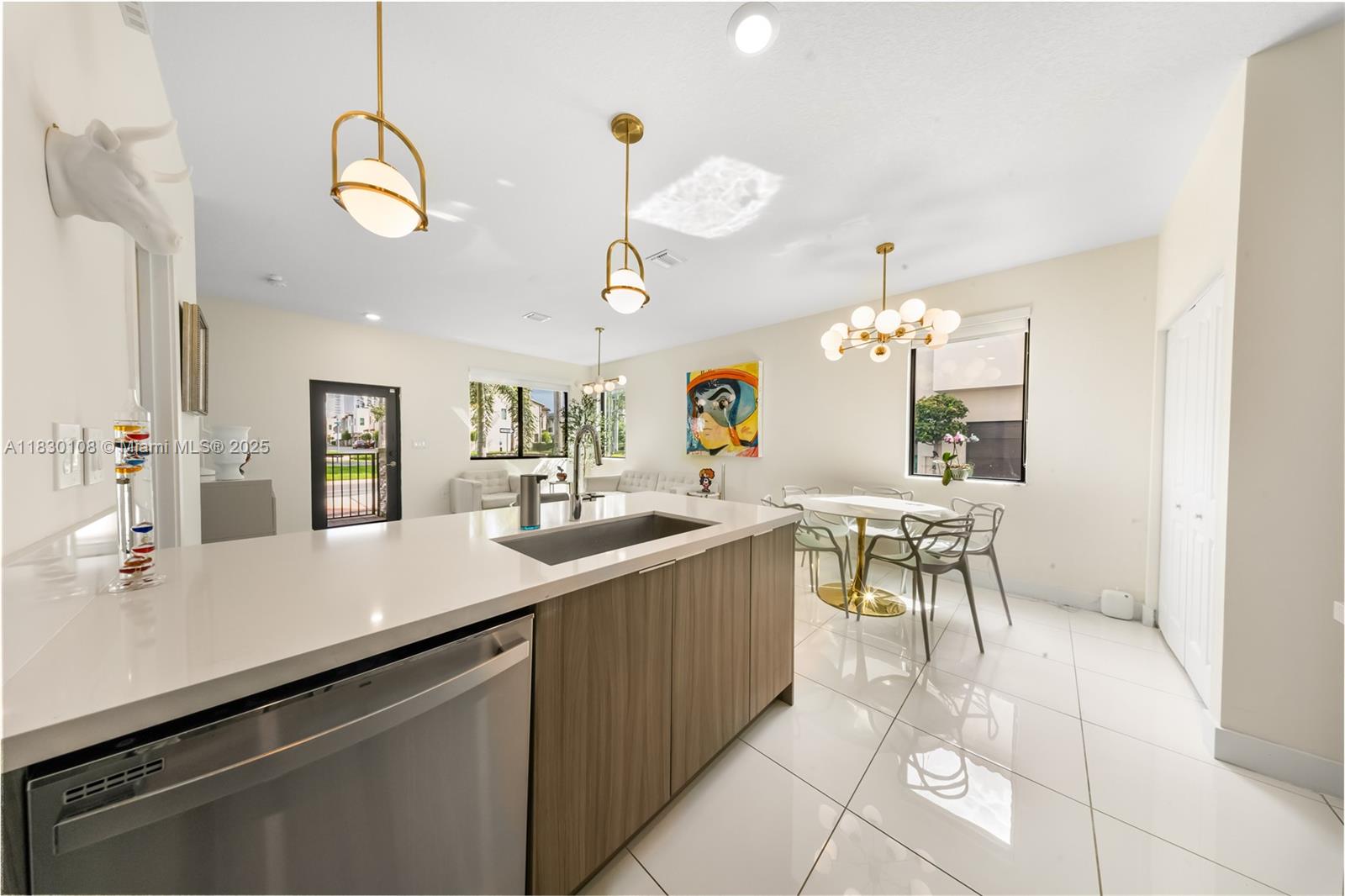 Welcome to this stunning 3-story townhouse in the heart of Doral, perfectly located across from Central Park! Featuring 3 spacious bedrooms, 2 full baths & 2 half baths, this smart home sits on a premium corner lot with a 2-car garage. Enjoy custom kitchen cabinets, fully wired alarm system, fans in every bedroom, 2 A/C units, tankless water heaters and WiFI extenders on every floor for seamless connectivity. The 3rd floor skyview terrace includes a stainless steel kitchen, cozy sitting area and lake view ideal for entertaining or relaxing. Residents enjoy resort-style amenities: Pool, BBQ area, clubhouse, game room, splash park, fitness center, indoor track and basketball courts. Steps from downtown Doral, schools, parks and entertainment, this home offers a vibrant, walkable lifestyle.