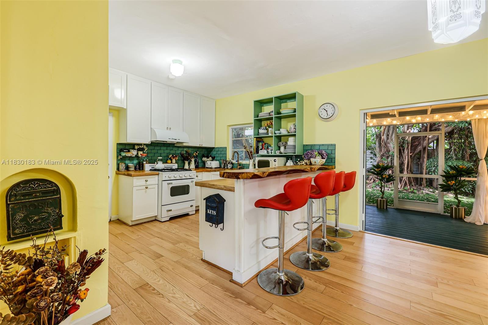 Undoubtedly the best street in South Beach, Espanola Way is a hidden little cup-de-sac lined with beautiful single family homes right in the heart of South Beach. This gorgeous 2 story home stands out as a charming, uniquely designed gem by renowned architect L. Murray Dixon. The 3 spacious bedrooms upstairs are filled with sunlight & you have 2 beautifully appointed bathrooms. Downstairs, the open floor plan creates a harmonious flow between the rooms. The kitchen is a standout, perfect for both entertaining & daily use while the adorable screened sunroom features billowing curtains & ceiling fans, ideal for enjoying the outdoors year round. The stunning foliage adds to the home's tranquility & an air conditioned, sunlit garage adds convenience & comfort to this exceptional property.