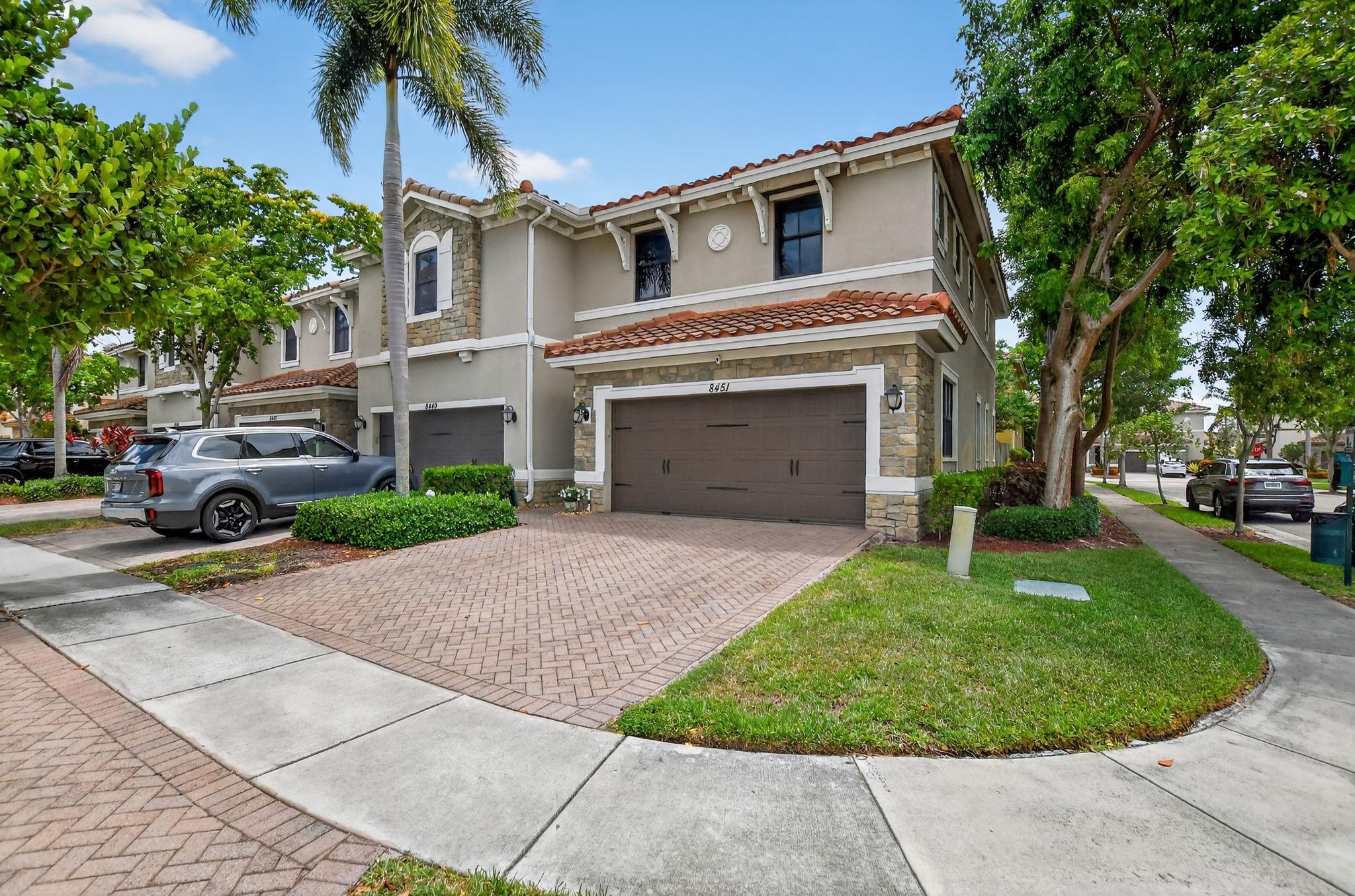 LOWEST PRICED END UNIT! Do not miss this beautiful 3BR/2.5BA with Generator & water filtration system. Enjoy impact windows & doors, sleek tiles on the 1st floor & wood look floors on staircase & 2nd level (no carpet!). Thoughtful upgrades include spa inspired master ensuite with luxurious stand-alone tub & walk-in shower, fully renovated guest bath, contemporary smooth-finish flat walls & ceilings, custom closets in all bedrooms, new Refrigerator, Dishwasher, Washer & Dryer & privacy/temperature-control window tinting on the first floor. The garage has tons of storage, bolted-in safes & Tesla EV charger. Step outside into your private, fully fenced backyard perfect for relaxing. Enjoy resort-style amenities at Mira Lago & Cascata - pools, fitness centers, tennis, 24-hr Guard Gate & more!