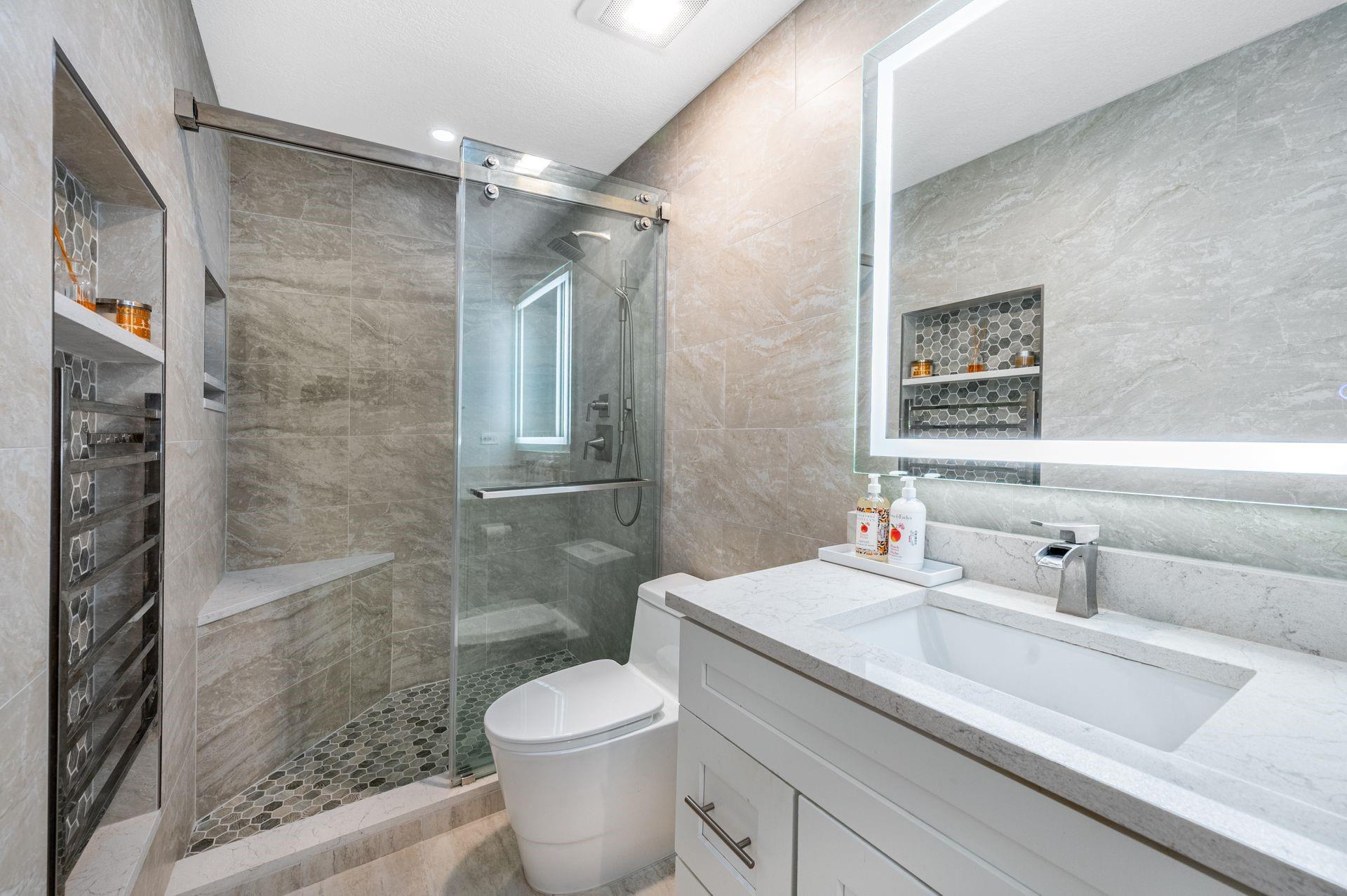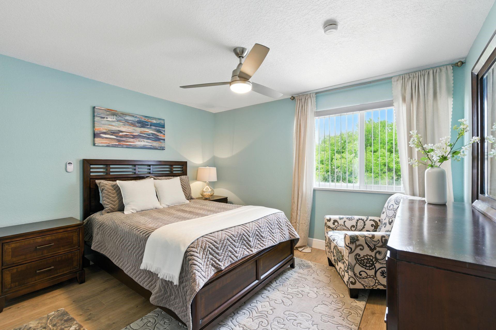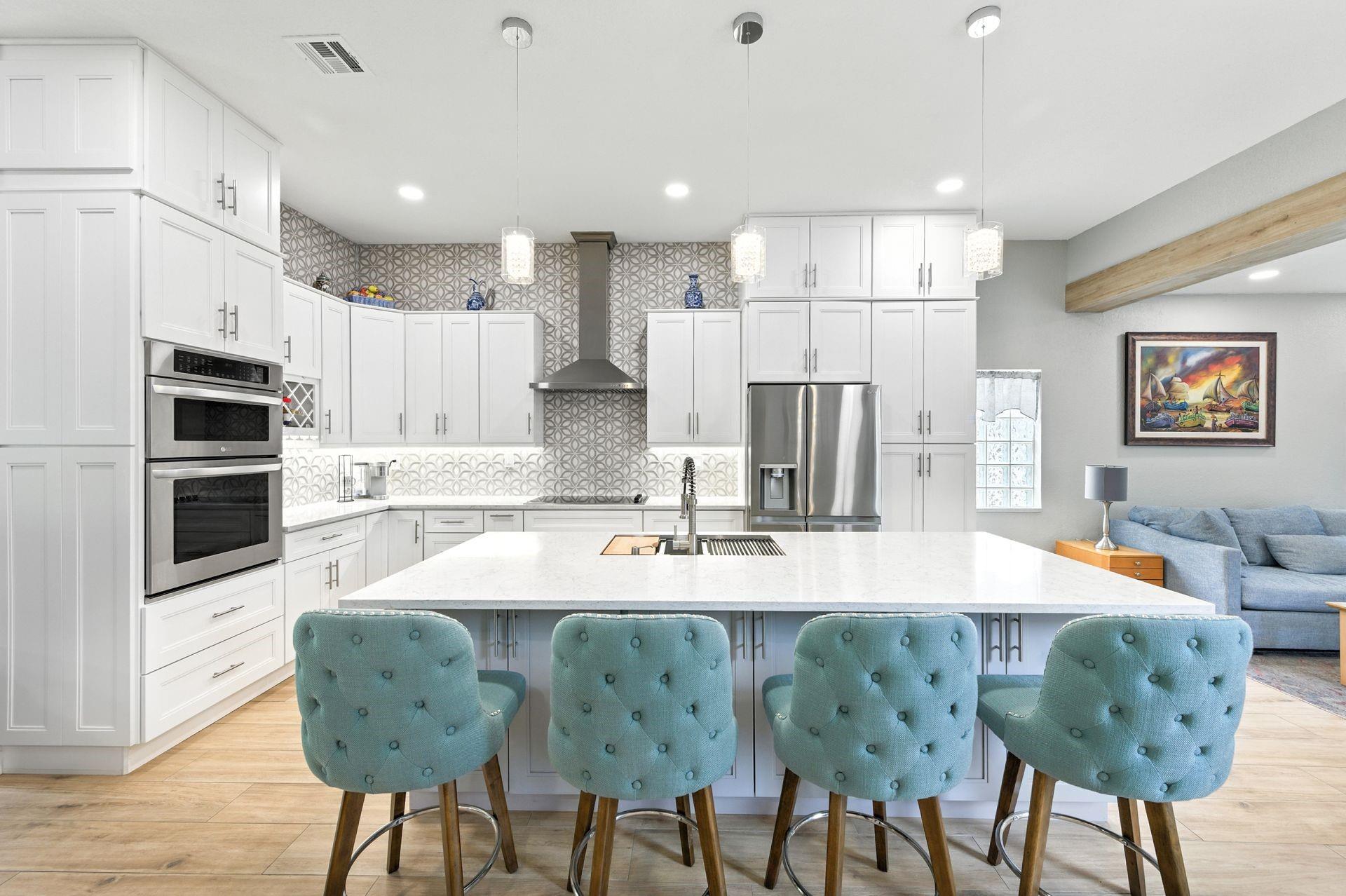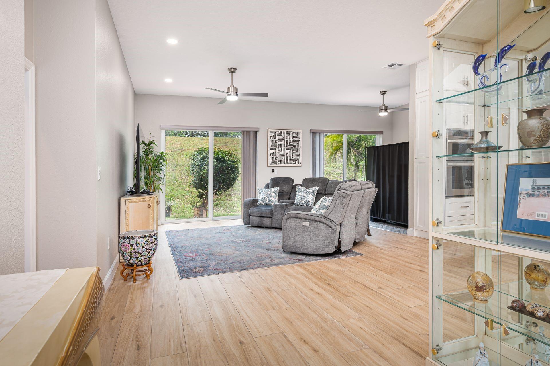 Discover this beautifully updated courtyard home offering complete privacy. The main house features 3 bedrooms, 2.5 baths, with a downstairs primary suite. A separate attached suite provides an additional bedroom and bath—perfect for guests or in-laws. Enjoy a stunning open kitchen, renovated bathrooms, and elegant tile flooring throughout. Impact windows/doors and a newer roof provide peace of mind. The courtyard boasts generous entertaining space with a plunge pool and tranquil water feature.