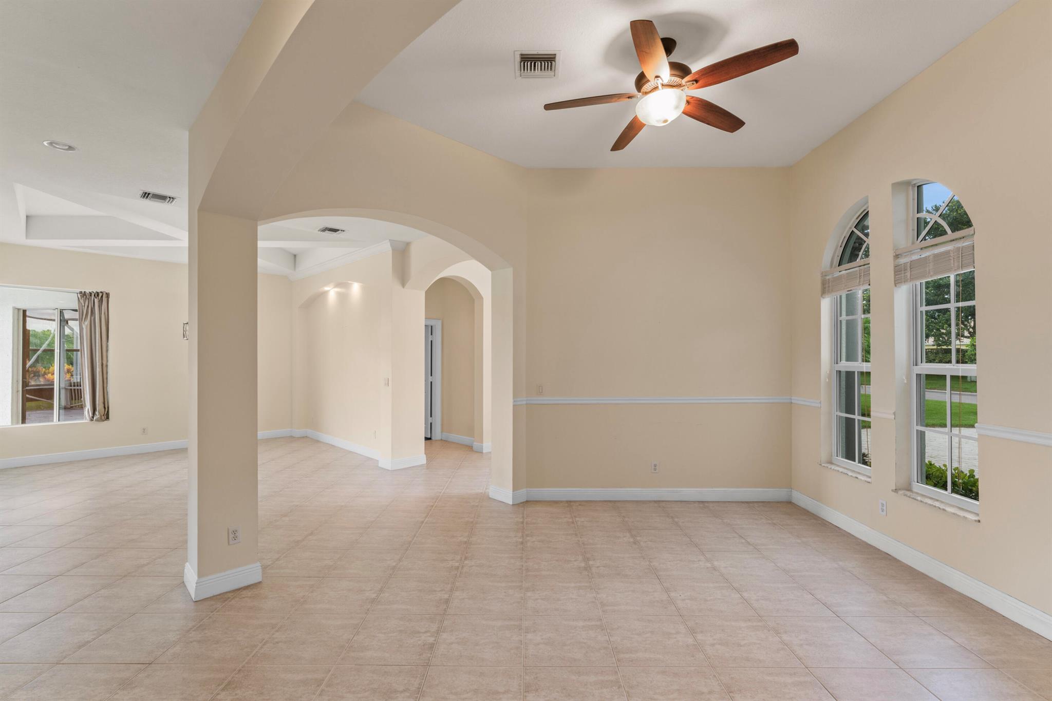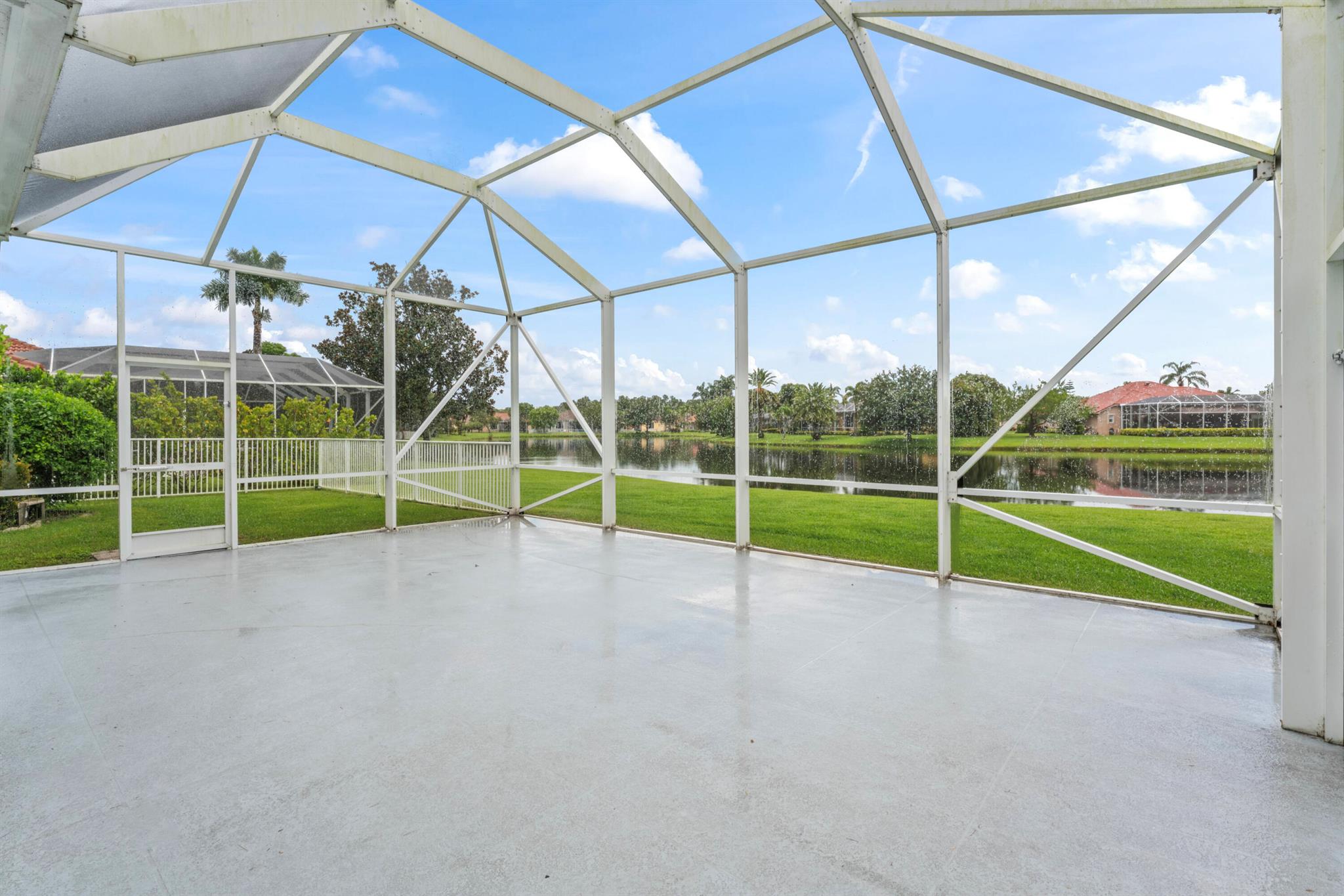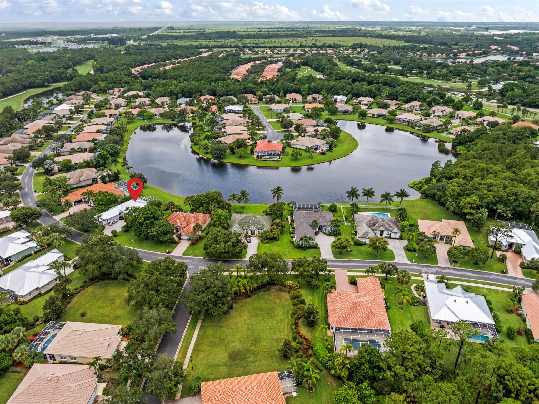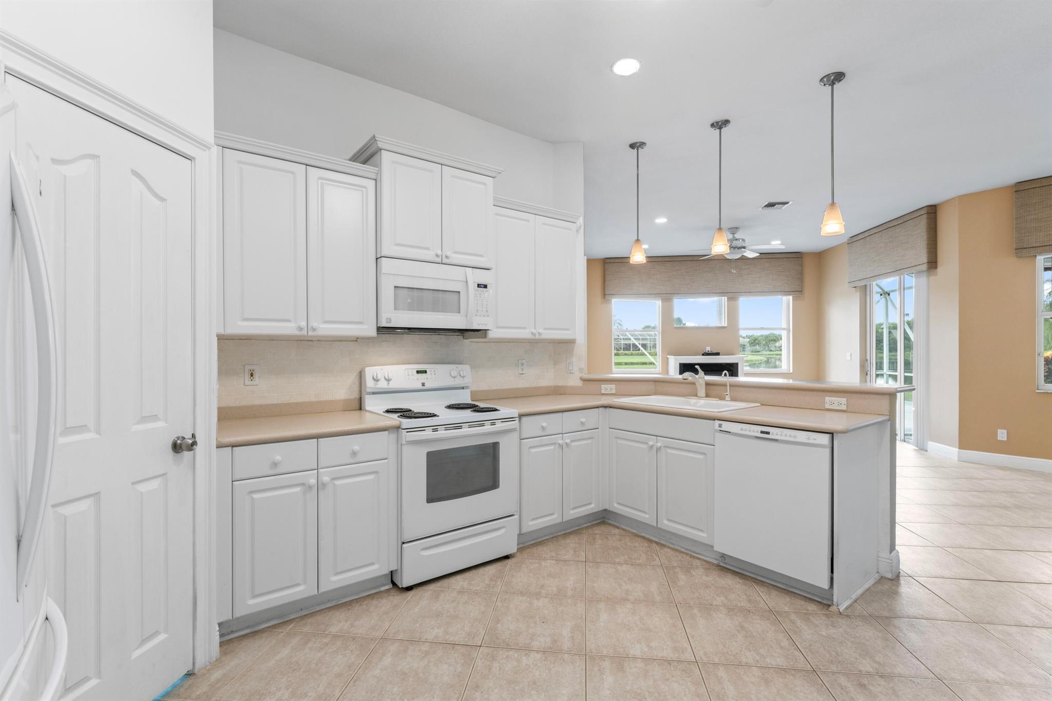 Stunning lakefront home in Florida Club with sweeping views, SW exposure, and privacy on an oversized lot. This 3BR/3BA + den (optional 4th BR) is loaded with upgrades: tile floors, plantation shutters, 10' ceilings, gas fireplace, and custom finishes throughout. Kitchen features Corian counters and ample cabinetry. Luxurious primary suite with Roman tub and separate shower. Enjoy outdoor living in the screened lanai with SunSetter awning, full dog run, and lush landscaping. Extras include impact windows, whole-house generator, 5-stage reverse osmosis system, new roof (March 2025), and 3-car garage with brick driveway. Located in a non-equity golf course community with clubhouse, tennis, pool, and low HOA. Easy access to I-95. One-of-a-kind lot with the best lake views don't miss out