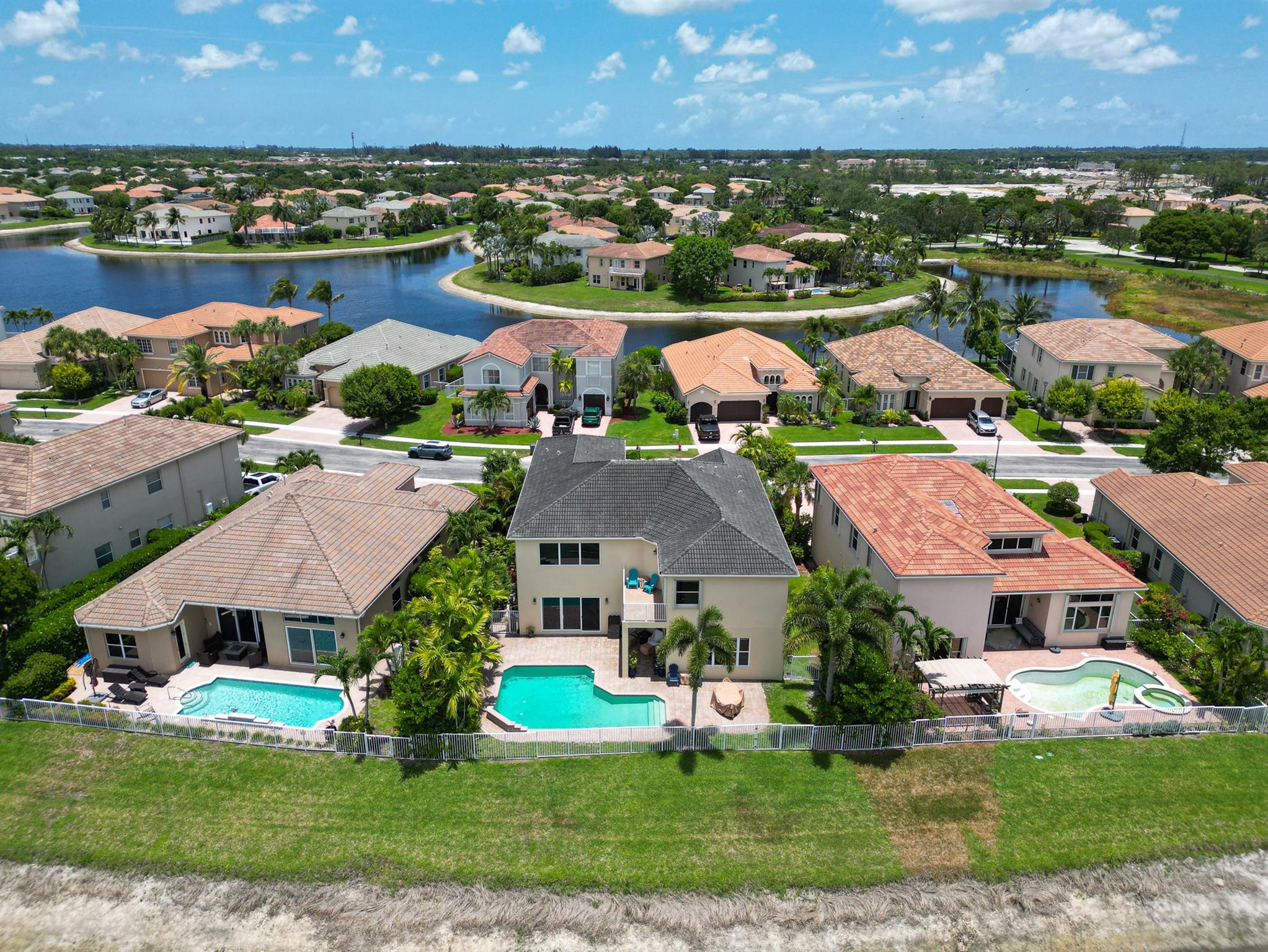 Discover lakeside serenity in Black Diamond. Wellington’s 24/7 guard-gated family community. This 6-bed, 4-bath Tiffany model spans 4,123 sq ft with 62' direct lake shoreline, and nearby A-rated schools. Enter the 22' high living room with floor-to-ceiling impact windows showcasing lake views. Gourmet kitchen features granite counters, LG high-end stainless appliances, gas, and a big island—perfect for gatherings. 2025 smart upgrades include Nest thermostats, app-controlled lighting, ADT color touchpads. Upstairs, the master suite boasts dual walk-in closets, shower, soaking tub and a private balcony. Outside, enjoy a lanai, ext. patio, sparkling pool & lush landscaping. HOA includes high speed internet, clubhouse, heated pool, fitness ctr, tennis courts, and walking paths. Call me today!