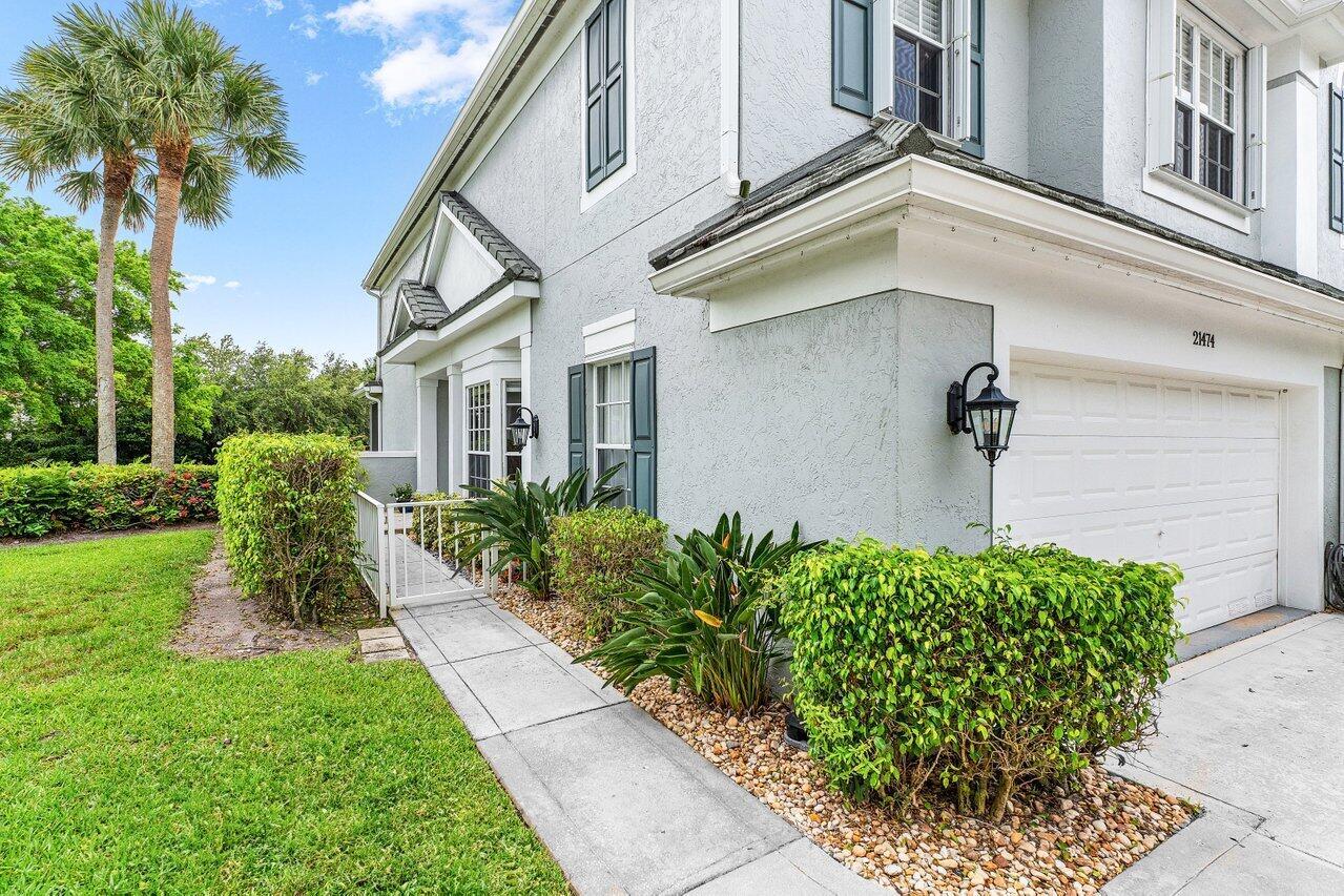One of the Best Locations within the Community, Stylishly Updated 3 bedroom Corner Townhome w/ Southern Exposure, located just minutes from Town Center Mall, Dining, and Walking Distance to the Boca Raton Swim and Racquet Community Center. Features a Spacious 2-Car Garage with EV Charger, a Renovated Kitchen w/ Quartz Countertops, Engineered Wood Flooring throughout. The Primary Bedroom offers Vaulted Ceilings, and the Spa Inspired Bath includes a Double Vanity with Soaking Tub. Renovated Guest Bath & Powder Room, Enjoy the Covered Screened Patio with No Rear Neighbors Desirable Southern Exposure, Perfect for Entertaining. Situated in a Quiet, Gated Community and Zoned for Top-Rated Boca Raton Schools. This Townhouse Offers the Ideal blend of Style, Function, and Unbeatable Location
