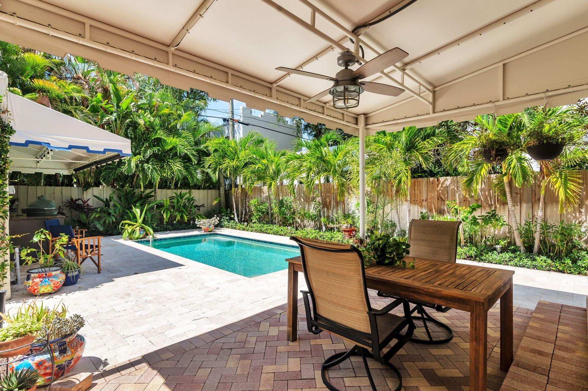 Located in the heart of Historic Flamingo Park on a beautiful tree canopied street. Spanish Mission style 2BR/1BTH pool home. Beautiful original details & stunning upgrades make this a perfect South Florida retreat. Surrounded by swaying palm trees, butterfly garden & mature landscaping. Covered front porch accented with barrel tiles and a cypress door. Bright living room with original fireplace mantle & hardwood floors flowing throughout. Formal dining room opens to incredible kitchen featuring breakfast counter, granite countertops, gas range, stainless steel appliances, gorgeous cabinetry & lots of windows. Split bedrooms with 1920's style bathroom. Sunroom perfect for an office. Tropical pool area with fountains, BBQ grill, outdoor shower, plus 2 car garage currently used as a gym.