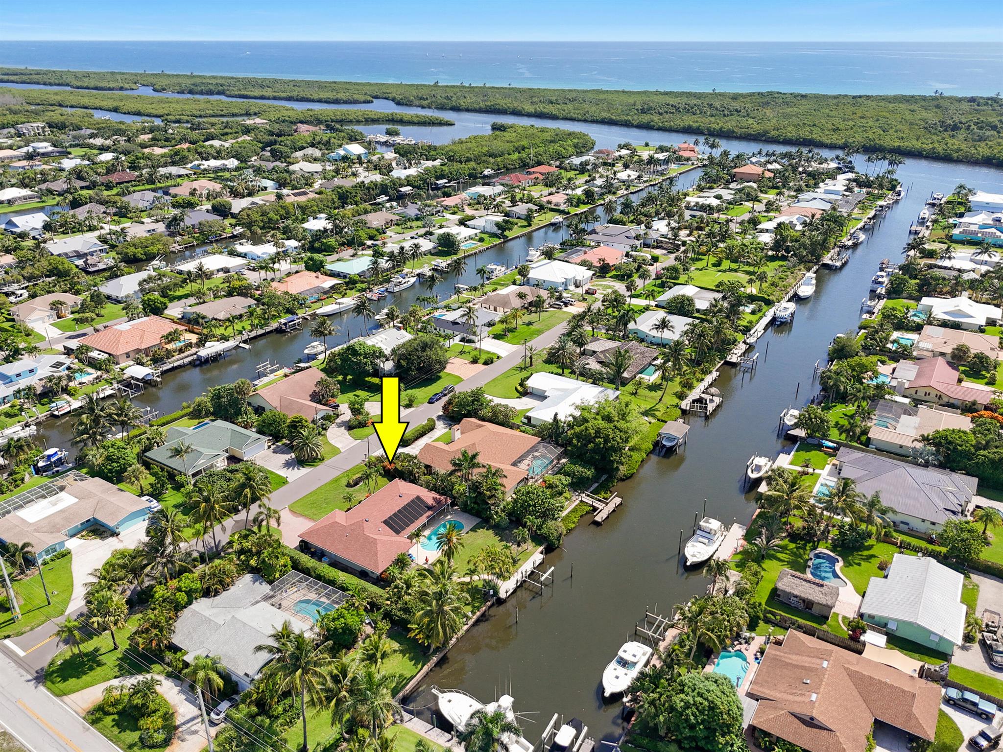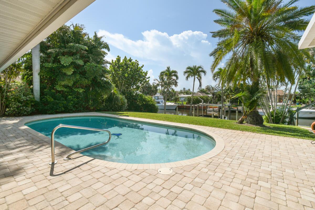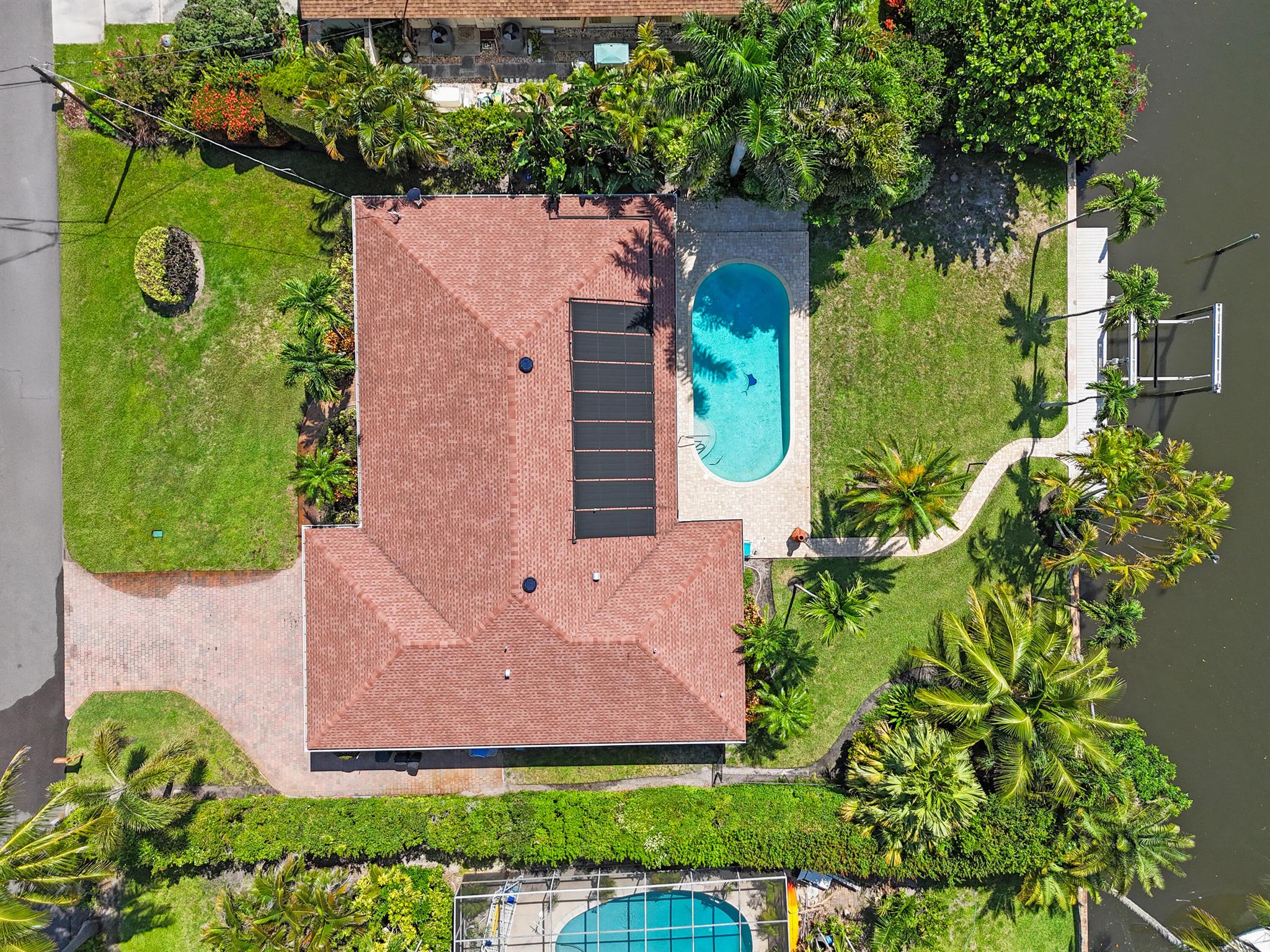 Coastal Waterfront Retreat with Southern Exposure. Welcome to this beautifully renovated coastal-style waterfront home offering the ultimate South Florida lifestyle. Situated on a spacious .32-acre lot with 100 feet of waterfront and no fixed bridges, this boater's paradise includes a 14,000 lb boat lift, seawall, and direct ocean access. Enjoy sun all day with prime southern exposure, perfect for relaxing poolside or entertaining in the expansive covered outdoor living space. The fenced backyard features a sparkling pool and lush, manicured landscaping for added privacy and charm. Inside, the light and bright open floor plan features volume shiplap ceilings, split bedroom layout, and impact windows throughout.