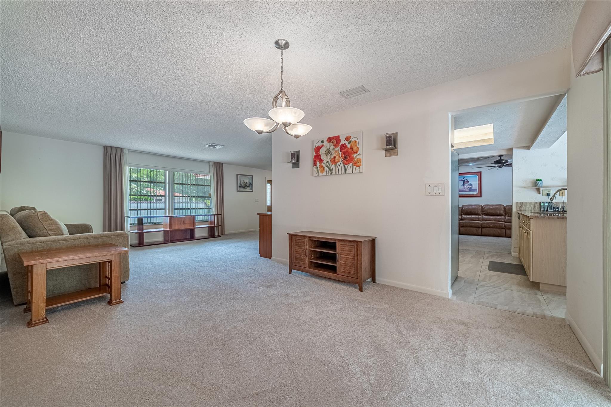 Spacious 3/2 featuring new carpet and beautiful tile floor in kitchen and foyer. Generously sized bedrooms-great for a growing family. Enjoy outdoor living with a large open pool and covered patio area perfect for entertaining. Mature shrubs provide privacy. Paver driveway, wired security alarm, and no HOA. Move-in ready with great curb appeal.