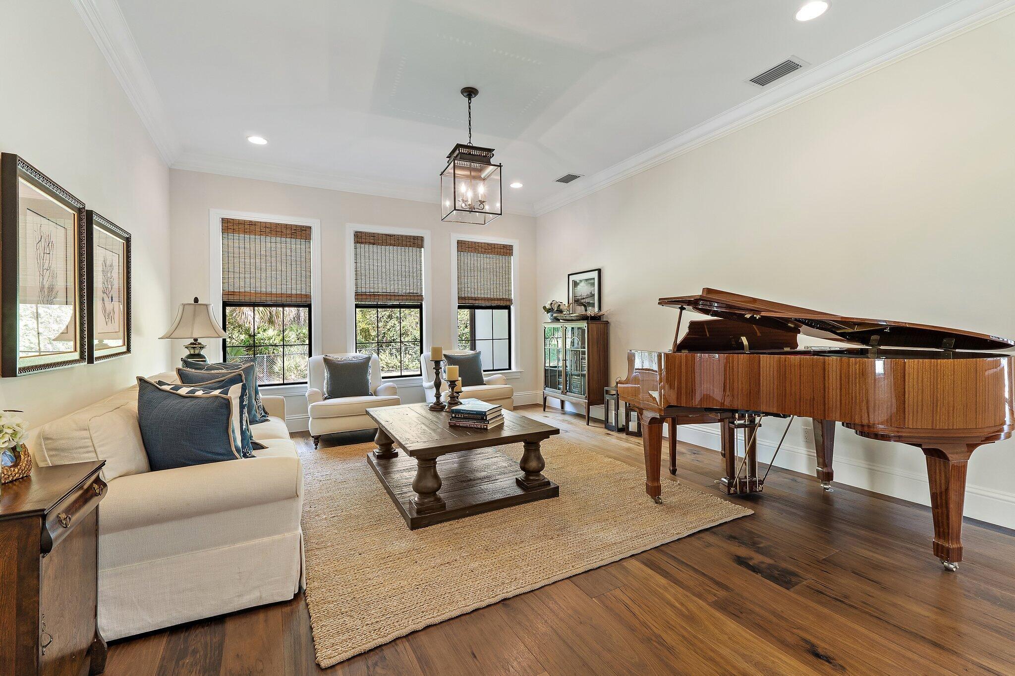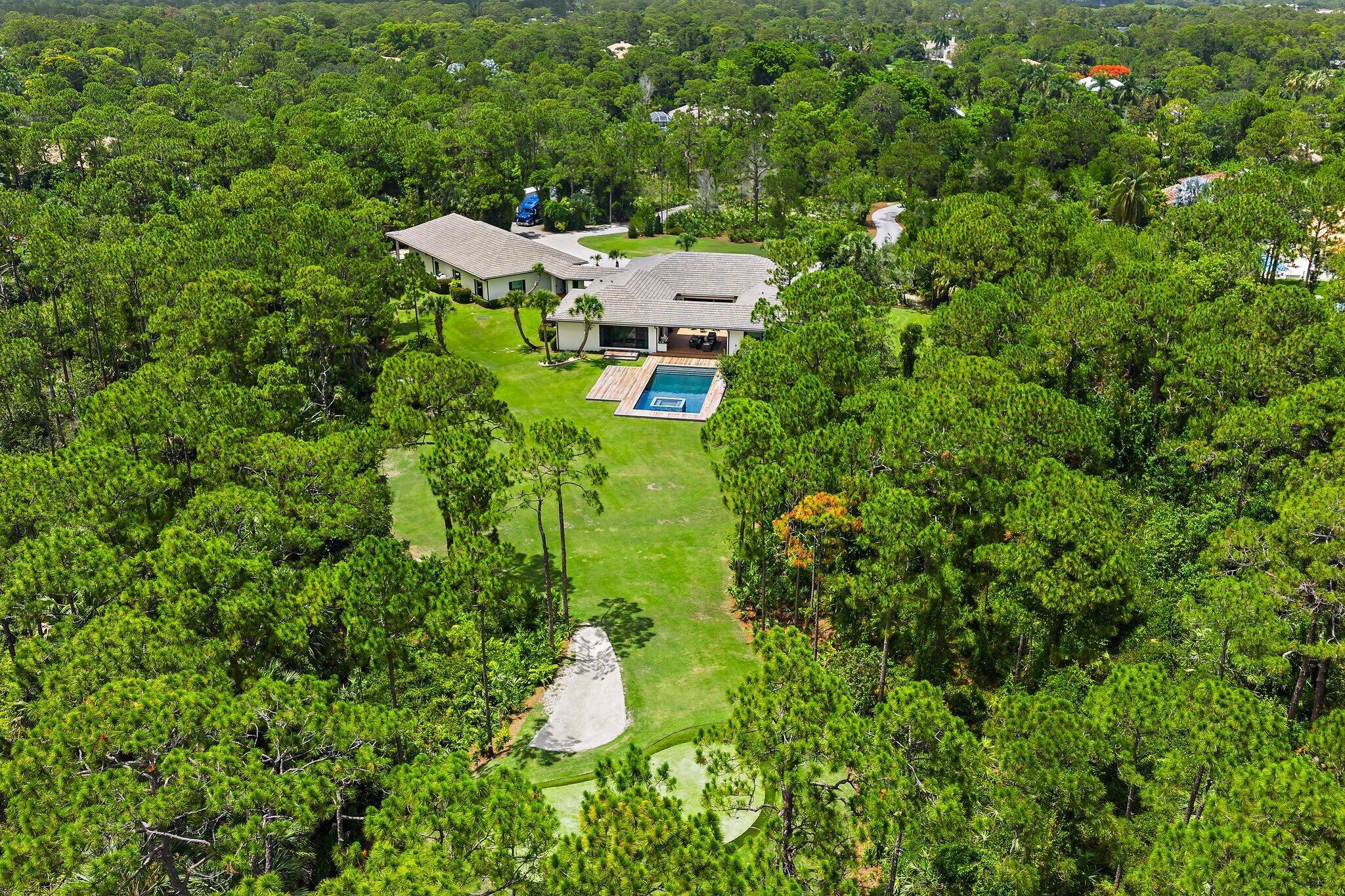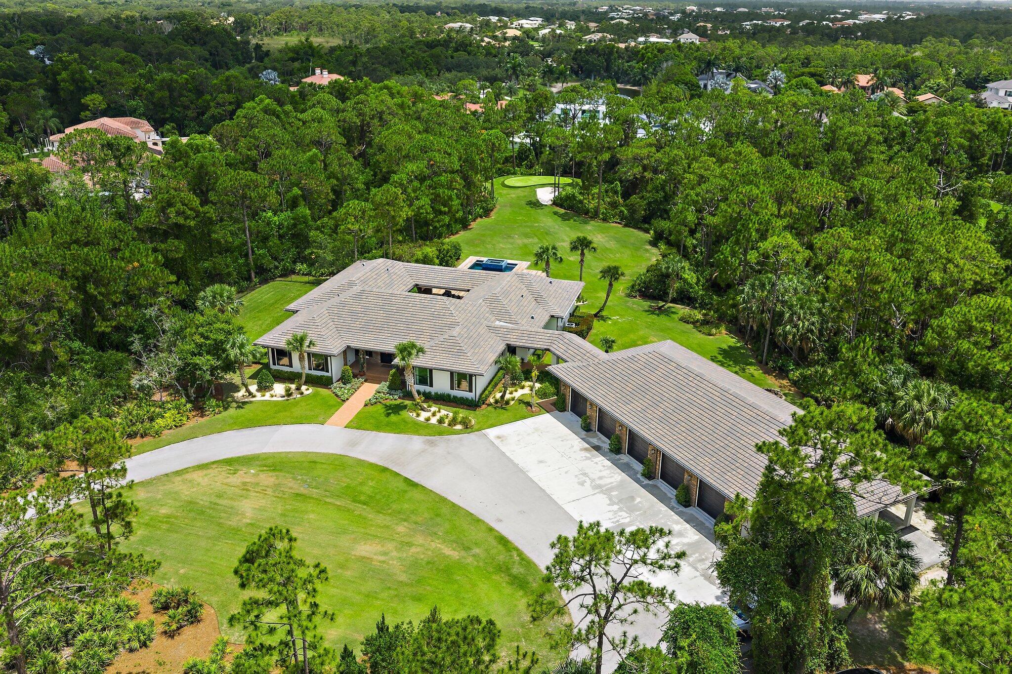 You may have heard it before, but THIS home is truly one of one. Situated in the heart of Jupiter in a private, gated sanctuary on over 5 acres is a 4-bedroom, 4.5-bathroom residence with office/flex room, theatre, game room and wine room. It was built in 2016 by renowned local luxury builder D&D Specialties. Touting 5,500 square feet of living space AND a 3,000 square foot, air-conditioned 10+ car garage complete with its own office and gym. Entertain guests or keep your skills sharp on your personal par three golf hole. Take a dip in the stunning pool with champagne hot tub and beautiful Ipe wood deck. Natural and manicured landscaping provides a dramatic approach and solitude from the outside world. Luxury, beauty and privacy, only minutes from everything the area has to offer.