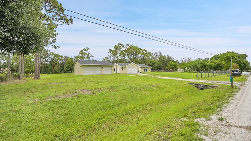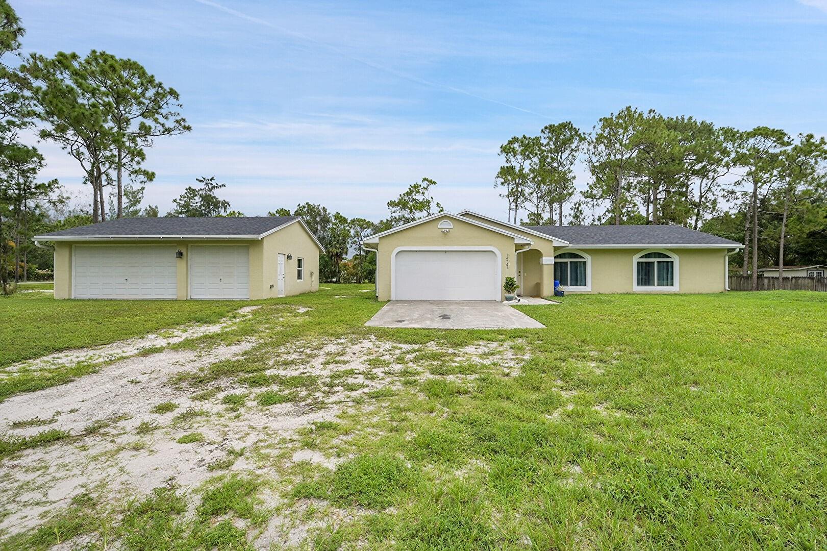 Turnkey Home in the Heart of Loxahatchee, Florida. Welcome to this beautifully upgraded 3-bedroom, 2-bath home offering 1,250 Sq ft under air, nestled on over an acre of fully fenced land with a private canal. This move-in-ready gem features a new roof (2022), double-pane impact windows and doors, luxury vinyl flooring, and updated bathrooms and kitchen with modern finishes. Enjoy peace of mind with new piping, a reverse osmosis water system, and a newer hot water heater (2022). In addition to the attached 2-car garage, this property boasts a bonus 3-car detached garage—perfect for a workshop, storage, or additional vehicles. A rare opportunity to own a completely upgraded home with space, privacy, and functionality in the desirable Loxahatchee area. No HOA. ***Showings will begin 7/14/25