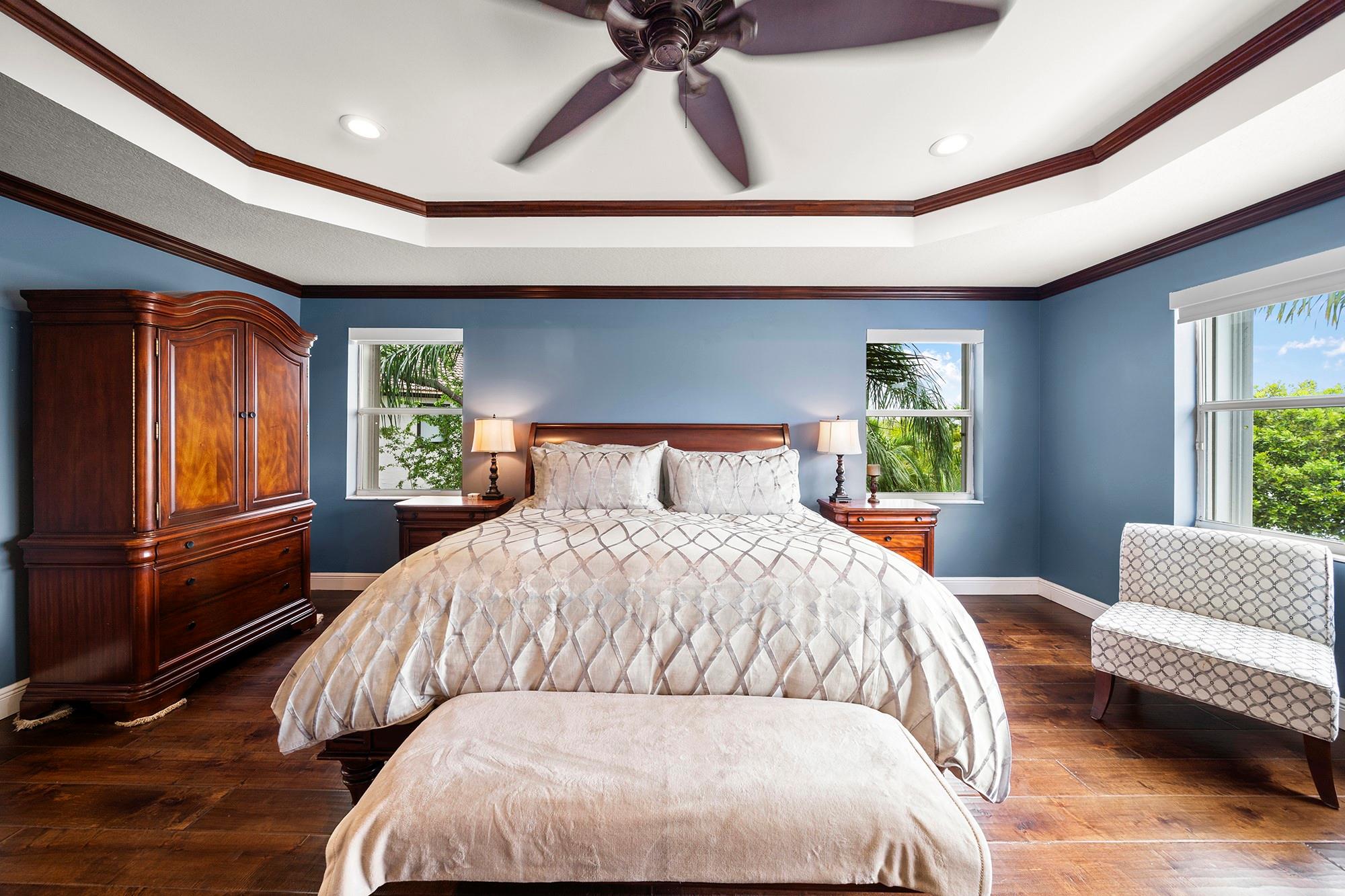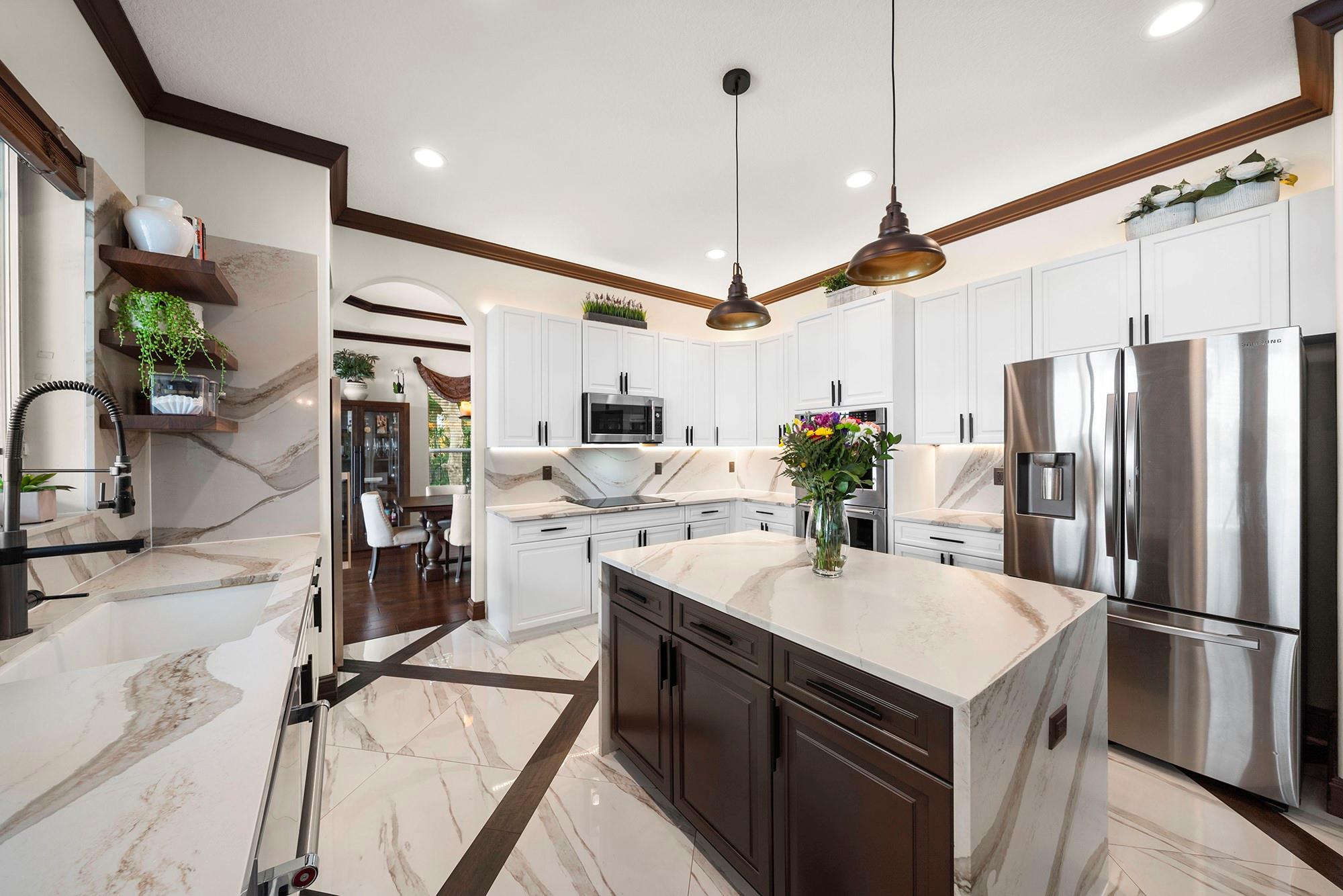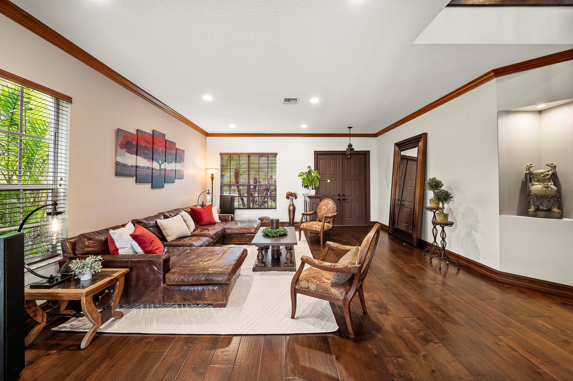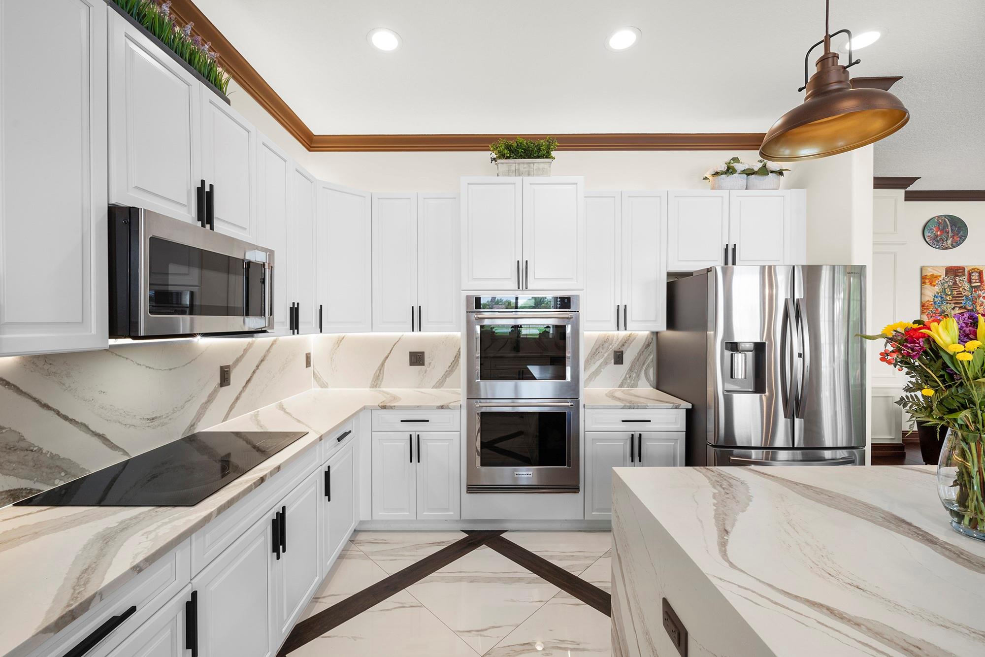 Opportunity knocks!! Priced UNDER Appraised value! Exquisite Estate offers breathtaking lake views! Elegance abounds-hardwood floors, gourmet island kitchen with new Cambria Quartz counters and appliances. Entertainers dream, enjoy gathering in the beautiful family room overlooking the tranquil pool area. The luxurious primary suite offers custom-designed walk in closets, while all three bathrooms have been completely renovated with designer finishes. New heated saltwater pool & spa, fully controlled via the iAquaLink app. Covered patio boasts ceiling fans and TV mount, perfect for entertaining. Upgraded ACs, EV charger, built-in garage storage, LED lighting. Sunset Lakes features resort-style amenities, including a clubhouse, fitness center, and tennis courts. Don’t miss this dream home!