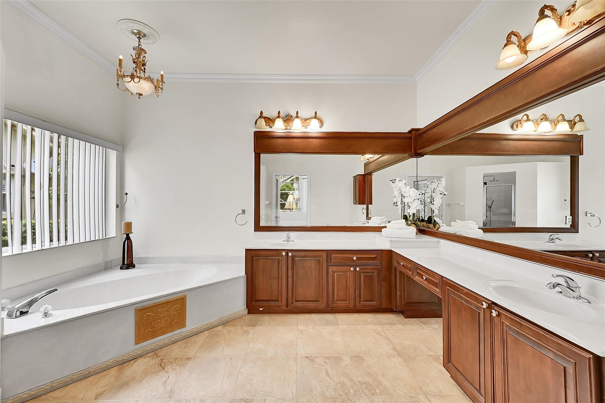 Imagine the sunsets here! Panoramic lake & pool views the moment you walk into this beautifully maintained home in the sought-after North Springs neighborhood - no HOA! Vaulted ceilings & tons of natural light make the space feel even bigger. Bright, open layout offers great flow for everyday living & entertaining. Spacious family room connects seamlessly to the kitchen & breakfast area - perfect for gatherings. Large primary suite has a sitting area w/ lake views & two walk-in closets w/ built-ins. The primary bath features double vanities, soaking tub, & a separate shower. All bedrooms are generously sized. 1/2 bath for guests & separate pool bathroom outside, so no one has to bring water through the house after swimming. This smart & functional layout works for any lifestyle.