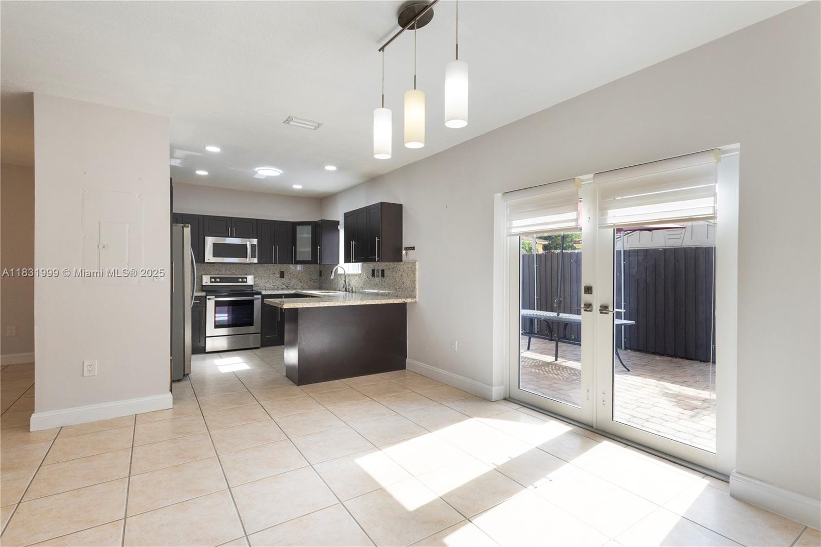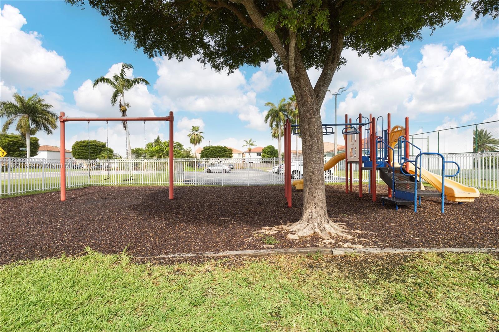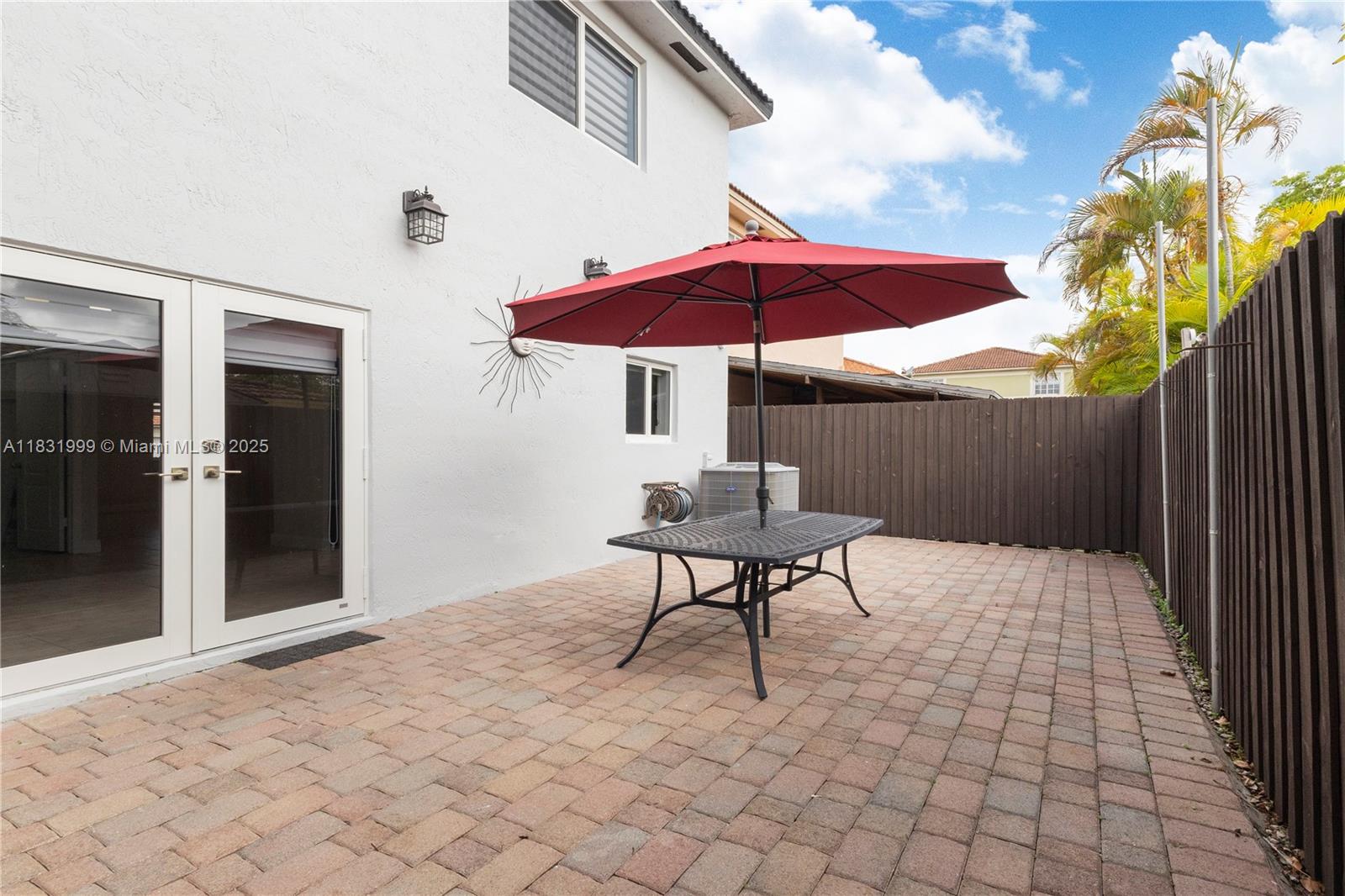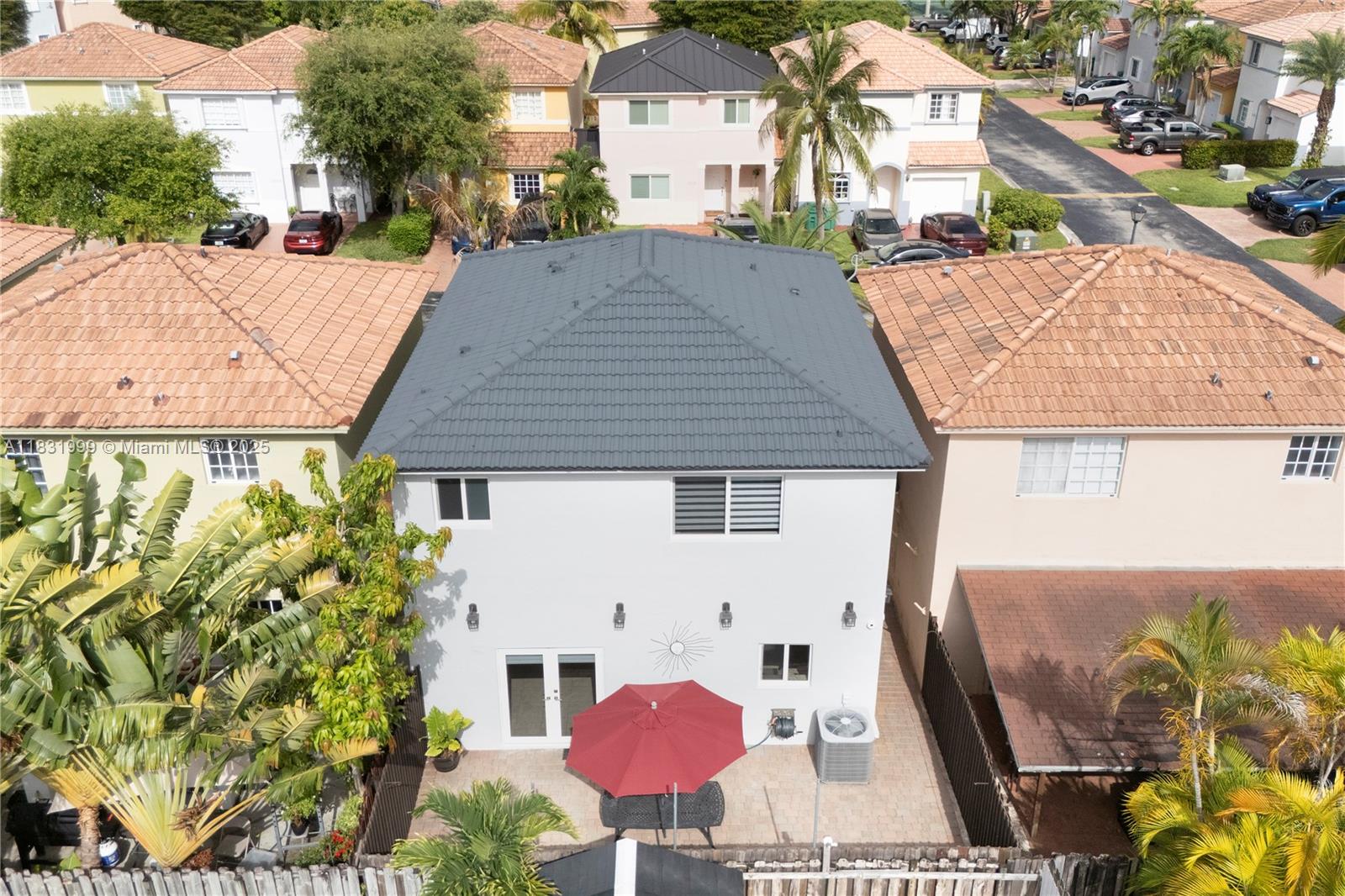 Spectacular well-maintained single-family home in a gated community at Kendall. 3 bedrooms, 2.5 bathrooms, plus a wet bar. Granite countertops, stainless steel appliances, washer & dryer, ceiling fans, Impact-resistant windows and doors installed in 2024, pre-wired for professional security camara system, tile flooring throughout the first floor & luxury laminated wood floor on the secund level. Carrier AC unit with Nest Thermostat, blinds installed in windows and doors, covered shed, fenced & paved patio. This pet-friendly community has 24/7 security guard, clubhouse, gym, pool, racquetball court, basketball & tennis court, playground & plenty guest parking spaces. Located near Costco, Zoo Miami, Walmart, Publix, 30 minutes to MIA. Must see!