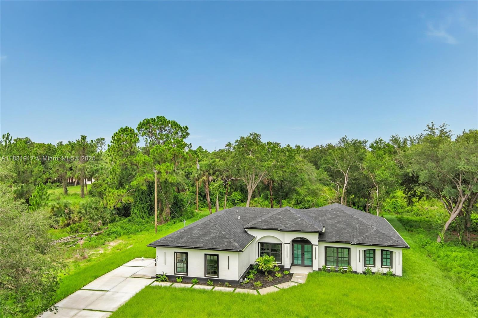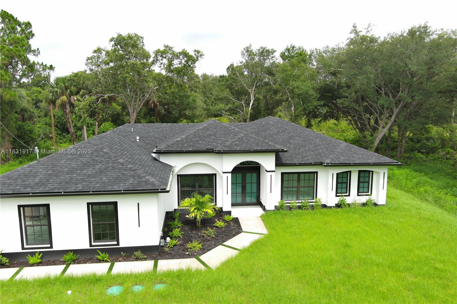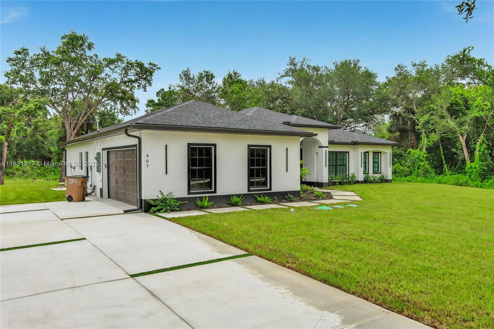 Welcome to your ideal sanctuary! This stunning new construction offers over 2,000 sq ft of luxurious living space designed for modern families. Featuring 4 bedrooms and 2 beautifully appointed baths, the home blends comfort with style. The bathrooms showcase elegant floor-to-ceiling tiles for a sophisticated feel.Enter a grand foyer that leads to an open floor plan, perfect for entertaining. The oversized lanai is ideal for morning coffee or evening gatherings under the stars. Enjoy the convenience of a smart home with auto sprinklers to keep your lawn pristine. The kitchen features sleek stainless steel appliances, making cooking enjoyable. A spacious 2-car garage provides ample storage and protection for your vehicles. Situated on a generous half-acre lot with an oversized driveway.