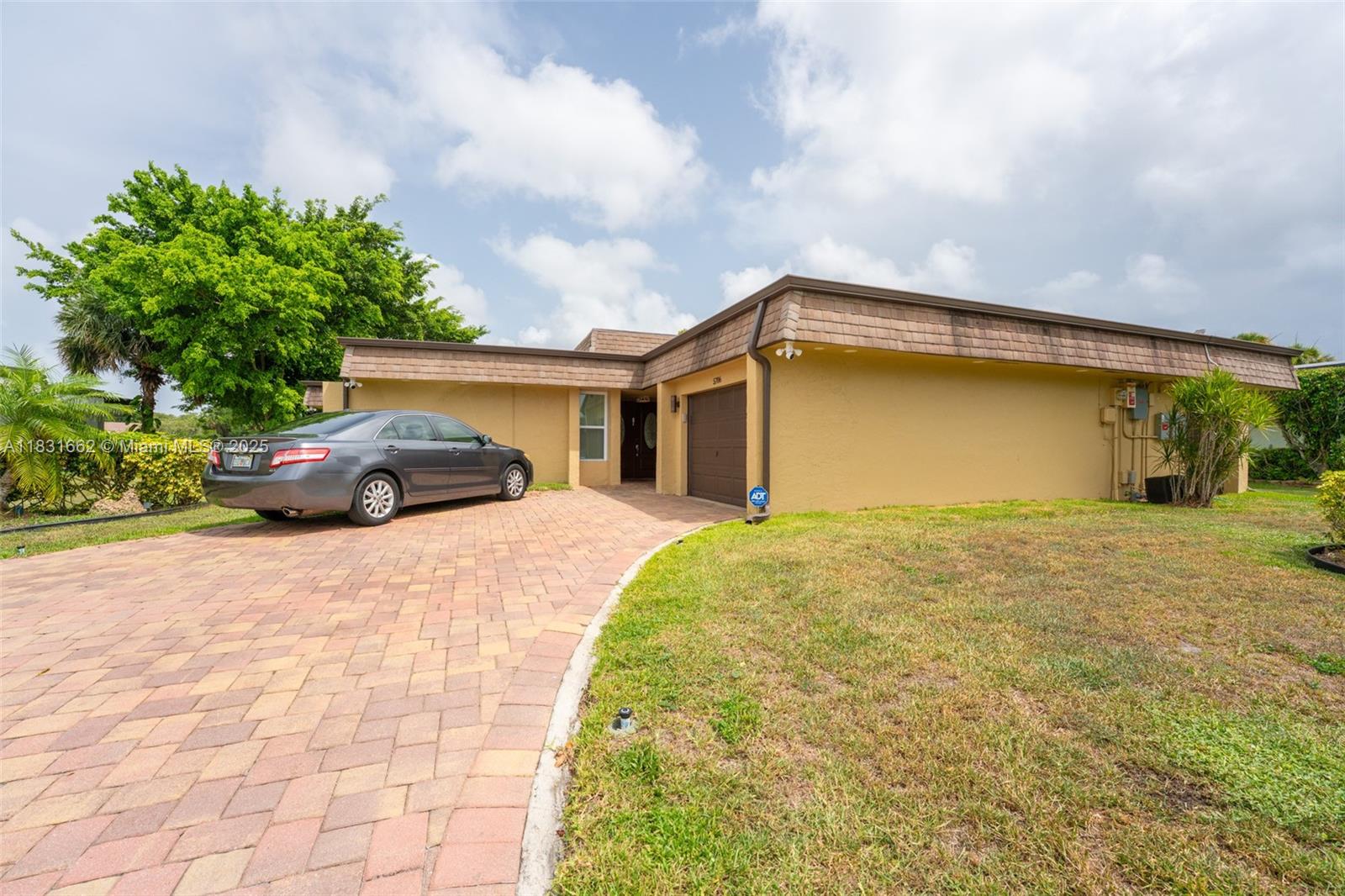 Welcome to your dream home! This stunning 3-bedroom, 2-bath residence features an additional versatile room ideal for a home office, playroom, or guest space. Enjoy a spacious two car garage with golf cart parking, an in-ground pool and spa, impact windows, doors, and sliding glass doors, plus recessed lighting throughout. The updated kitchen boasts new stainless steel appliances, tile floors, and new vinyl flooring in select areas. A 2020 roof and energy-saving solar panels add long-term value. Located in a desirable area, this home blends comfort, efficiency, and style perfect for modern living.