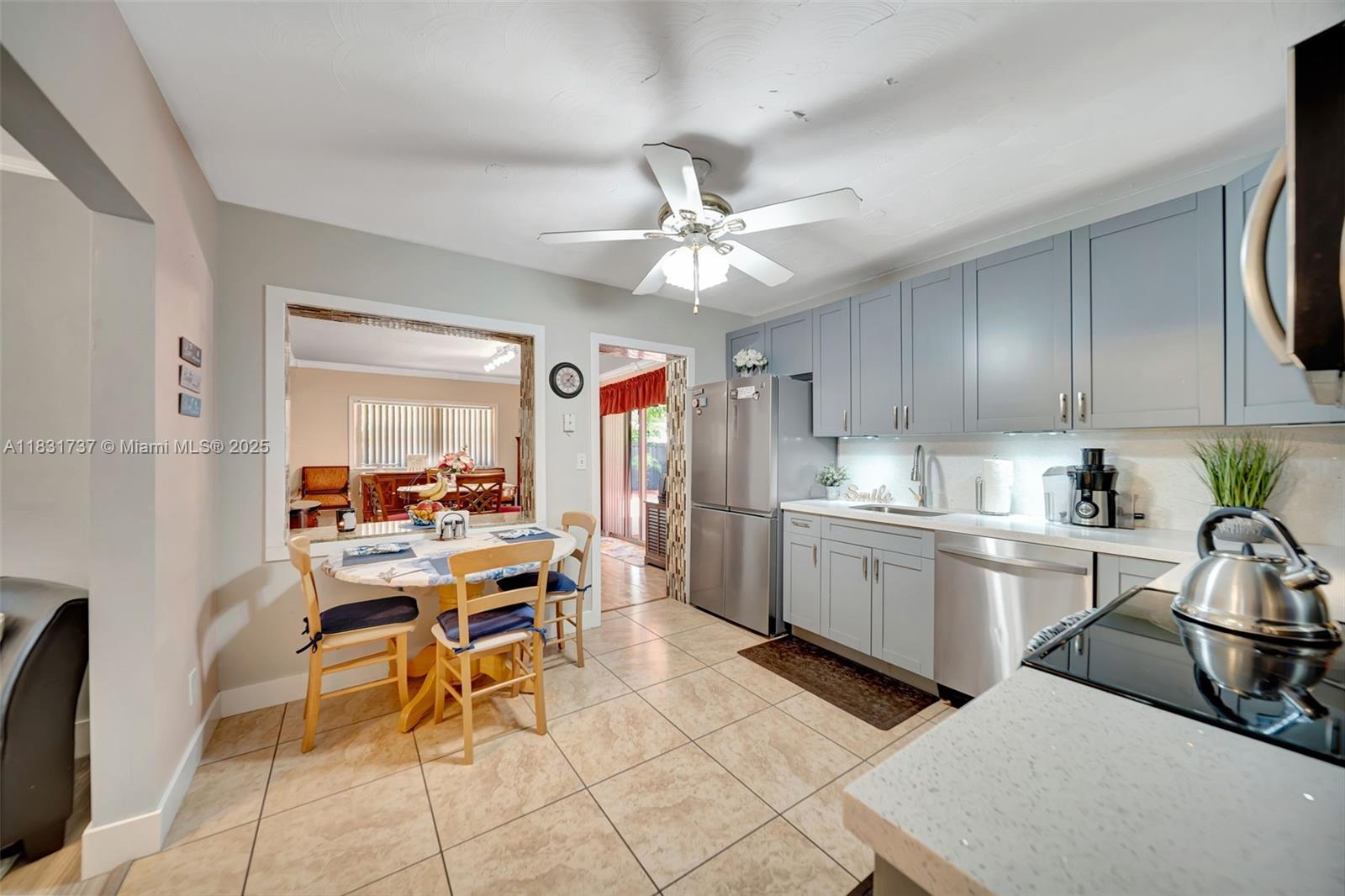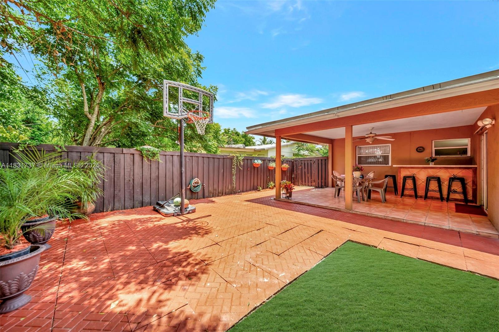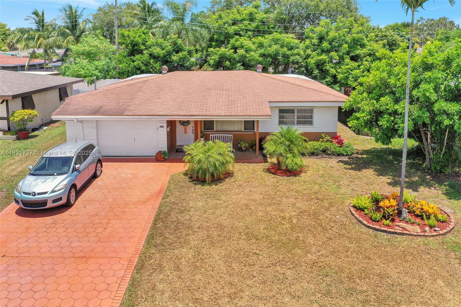 Beautiful home offers 3 bedroom, 2 bath. 1,820 sq ft of living space. The spacious layout features an upgraded kitchen, large living area, formal dining/family room, den or office, and a master bathroom with double sinks. Elegant laminate flooring flows throughout, and the eastern exposure fills the home with natural light. Large front and backyard, plus a covered patio with a snack bar, perfect for entertaining. Parking: 1-car garage and a paved driveway accommodating up to 5 large vehicles. Located in a quiet residential neighborhood just steps from T.Y. Park with its beautiful green spaces and water park. Prime location is under 10 minutes to Hard Rock Casino, FLL Airport, Memorial Hospital, major highways, shopping, dining, and more.