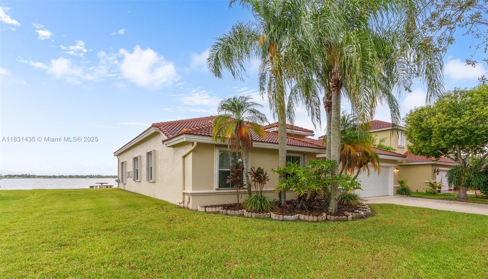 Don't miss this one! These waterfront lots are rarely available. Stunning Sunrises Await! Waterfront, Single-Level, 4 Bedrooms, 2½ Bathrooms Home is Nestled in Keystone Lake, a Guard Gated Community Built Around a Serene 143- Acre Lake. Impeccably Maintained, High Ceiling, Open Concept, Split Floor Plan, Screened and Covered Lanai, Expansive Unobstructed Lake View. Custom Zebra Shades and Accordion Shutters Throughout. Roof Replaced 2017. Low HOA Includes Basic Cable and High-Speed Internet, Guarded Main Gate plus 2 Additional Gate w/ Call Box, Microphone/Camera and Tot Lot. Top Rated Schools, Easy Access to All Major Highways, Minutes to Hospitals, Shopping, Restaurants, Parks and More! Only One Lucky Buyer.
