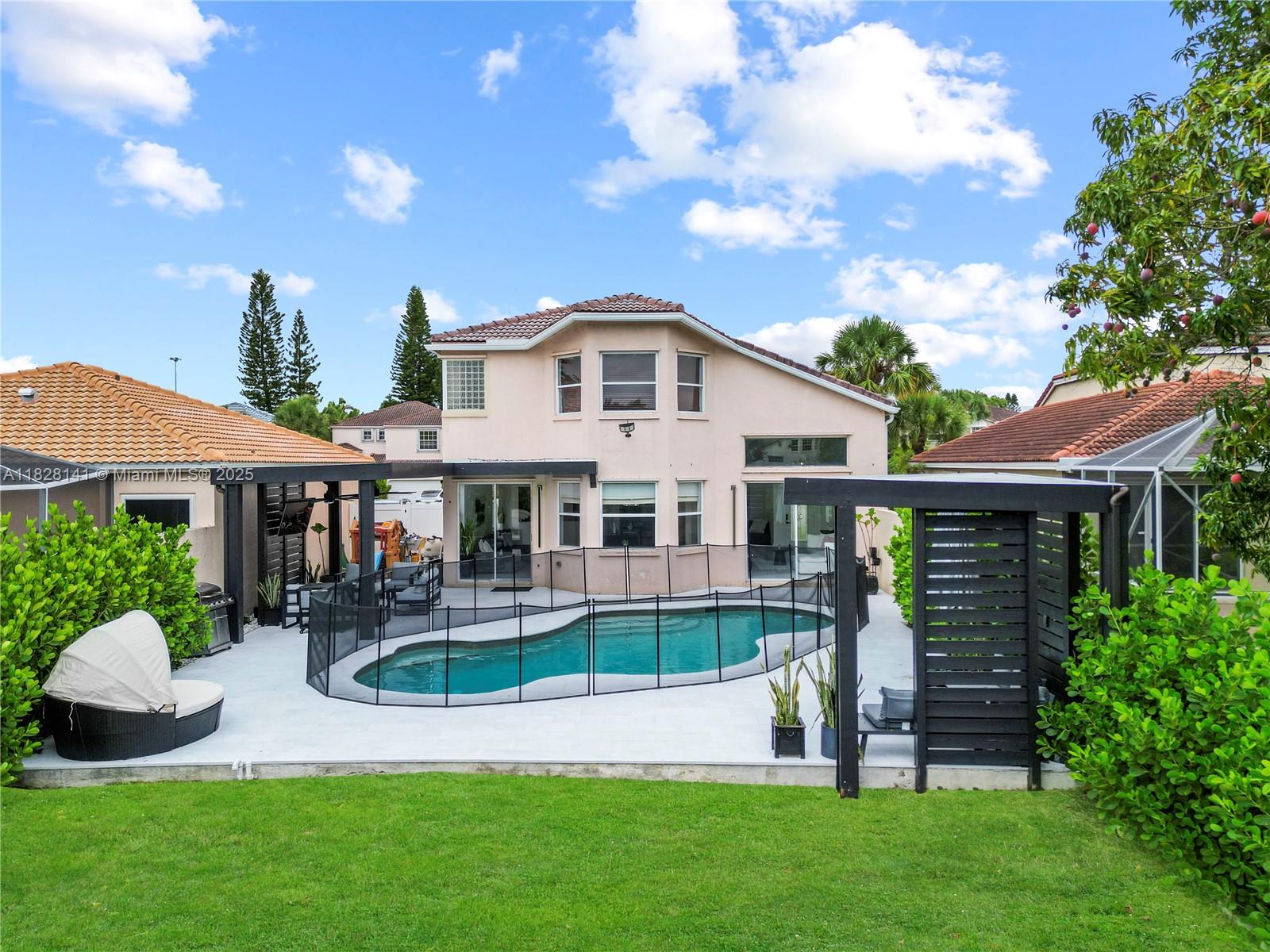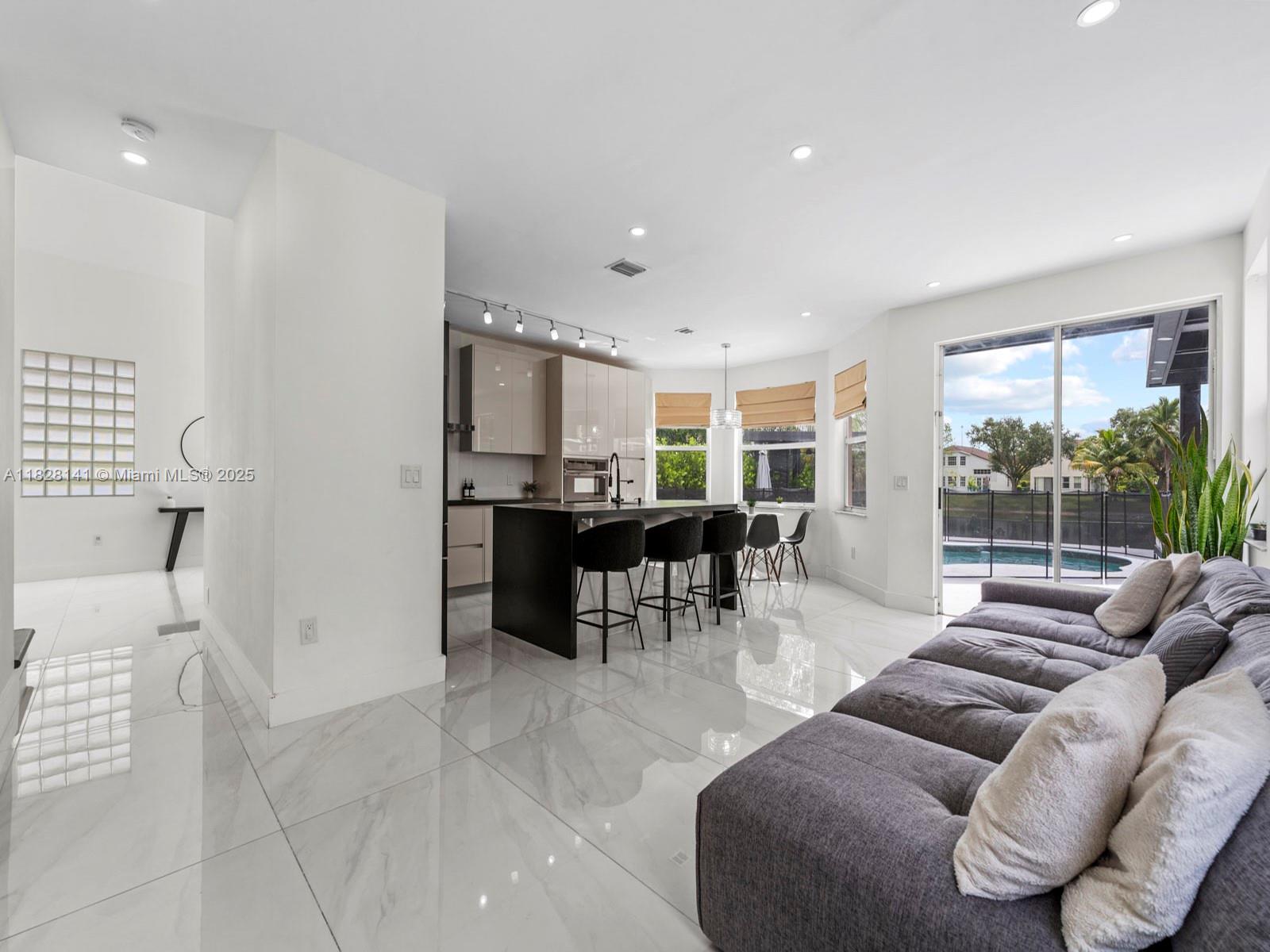 Welcome to this breathtaking 3 bed, 2.5 bath home in Towngate. Enjoy the beautiful water views from the moment you step inside. This home boasts marble + waterproof vinyl floors, a sleek kitchen with quartz countertops & dark SS appliances, vaulted ceilings, a mud room, custom closets, ample storage space, & a 2-car garage. The primary bedroom has generous floor space along with lake views, a large custom walk-in closet, & dual vanity sinks. Second bedroom also has a walk-in. A luxurious pool deck awaits you in the backyard, featuring 2 pergolas with recess lighting + fans - perfect for relaxing & entertaining. Clusia lines the backyard for an added touch of privacy & lush greenery. Great community amenities. Central location right off I-75 surrounded by excellent restaurants & shopping.