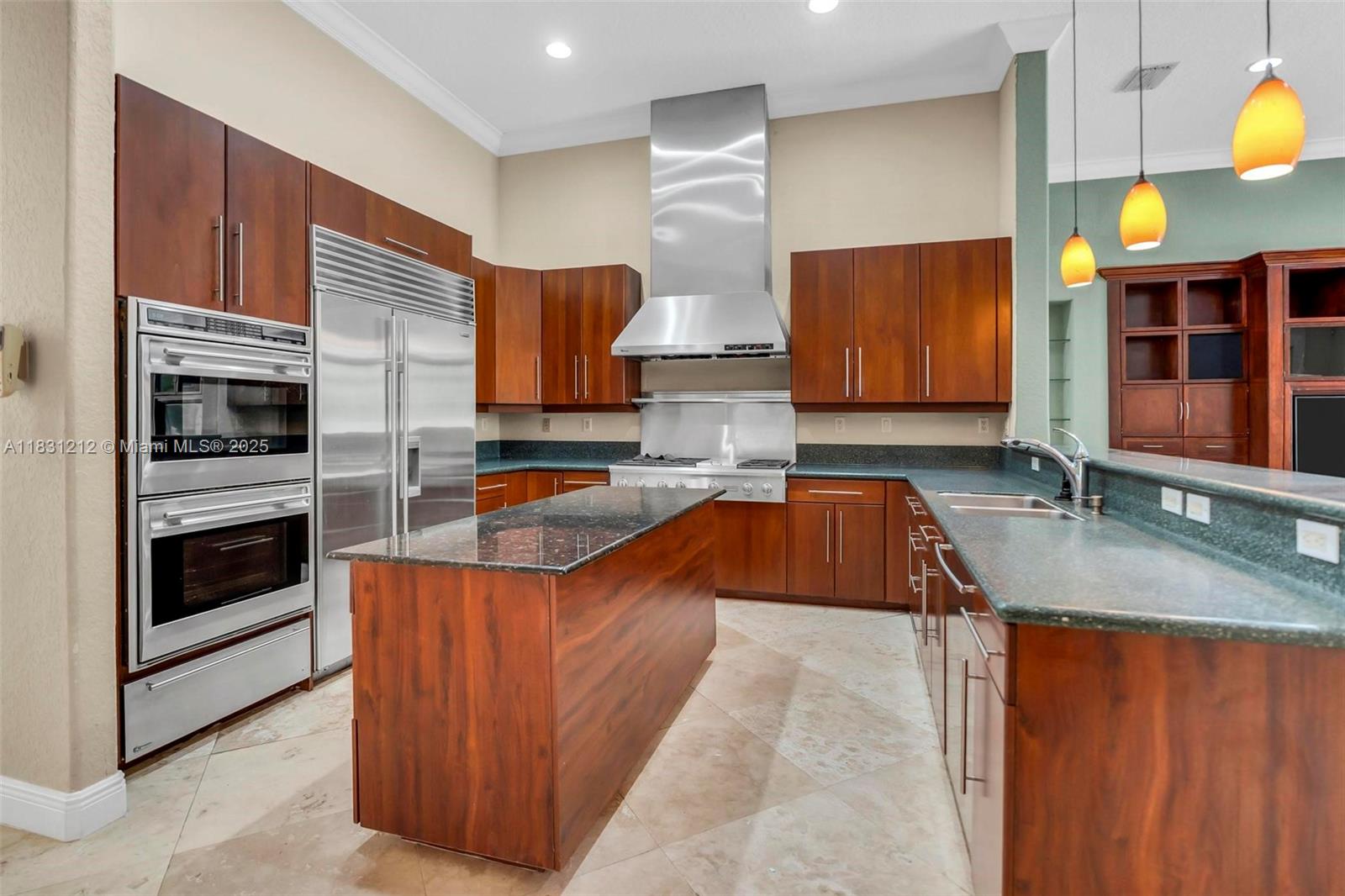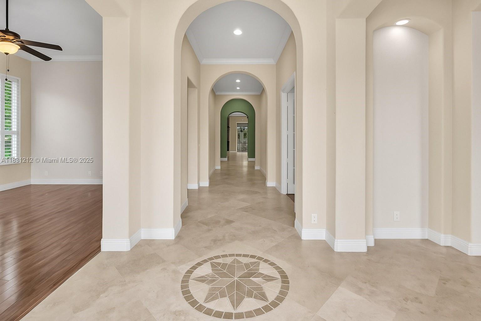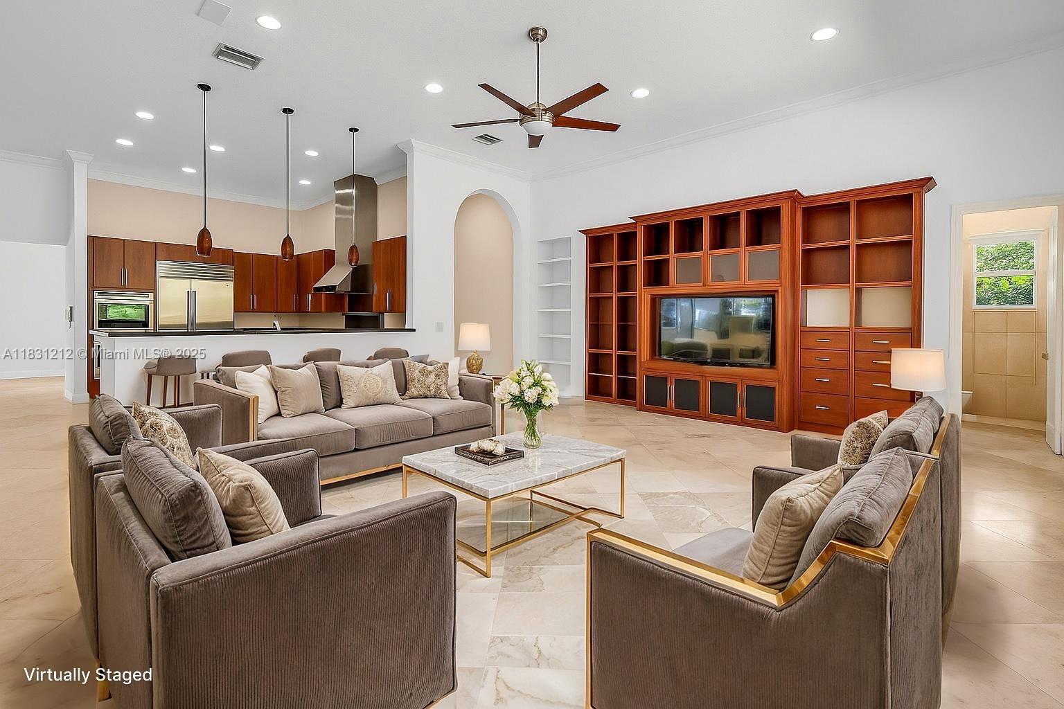Experience refined luxury in this exquisite estate home with panoramic lake views and lush tropical landscaping surrounding a resort-style pool. Located in the prestigious Saddle Brook community of Davie, this 6-bedroom, 5.5-bath residence offers a 3-car garage, soaring volume ceilings, and marble flooring throughout the main level. The gourmet kitchen features top-tier appliances and a gas cooktop. Additional highlights include a 2021 roof, full-impact windows, whole-house generator, custom walk-in closets, and elegant designer finishes throughout. A true masterpiece of comfort and sophistication.