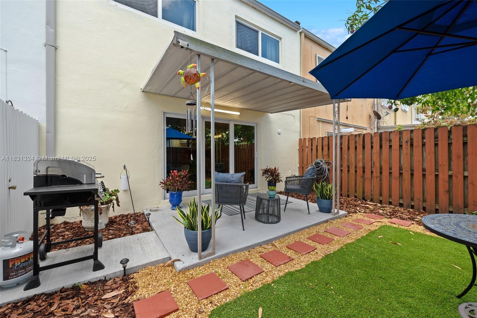 Step into this bright and spacious home featuring 3 spacious bedrooms and 2.5 modernized bathrooms. The home offers numerous upgrades for your comfort and peace of mind, including new impact windows, a newer AC unit enhanced with UV light, a newer tankless water heater, fresh exterior paint, and a newer washer and dryer. The well-designed layout flows seamlessly, showcasing a kitchen equipped with stainless steel appliances, timeless finishes, and recessed LED lighting throughout. Sliding doors lead to a fully fenced backyard featuring turf, a mature mango tree, and a covered patio, perfect for year-round entertaining. Ideally located just minutes from Amelia Earhart Park, top-rated schools, dining, shopping, and major highways, this home truly combines comfort, style, and convenience.