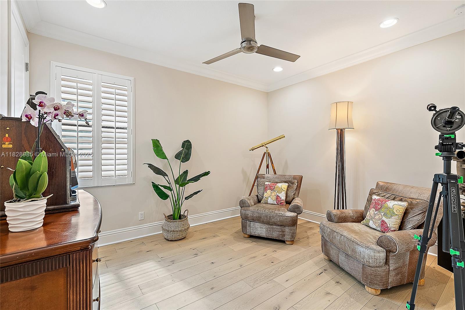 Perfectly situated in the center of Artistry, this home offers a peaceful water view and desirable southern exposure, filling the interior with natural light throughout the day. With an easement between you and the next-door neighbor, you'll enjoy a greater sense of privacy and space, rarely found in this community. Inside, tasteful upgrades and designer finishes create a polished yet comfortable atmosphere. White oak flooring, quartz surfaces, beautiful crown molding, and upscale fixtures are featured throughout. A versatile front room sets the stage for entertaining or formal gatherings, while the chef's kitchen delivers top-tier performance with GE Monogram appliances, a 6-burner gas range with griddle, three ovens, an oversized waterfall island, wine cooler, and upgraded cabinetry.
