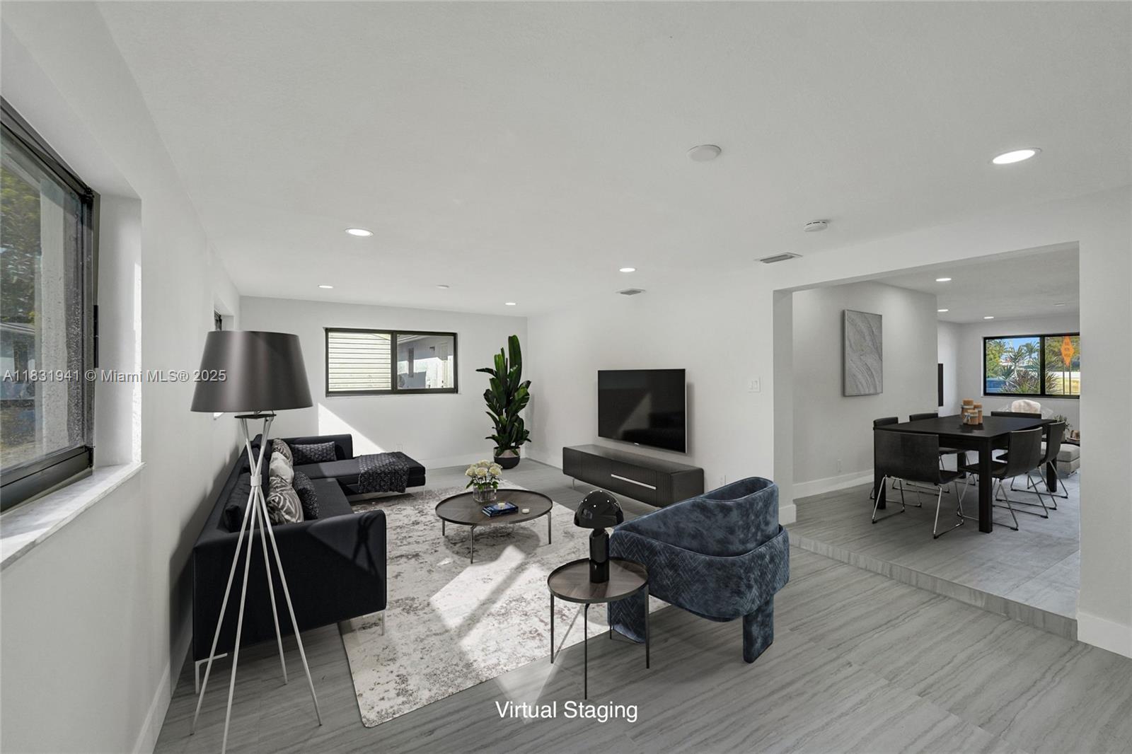 Experience lakefront living in this beautifully upgraded 3BD/2BA home featuring porcelain tile floors throughout. Enjoy a brand-new kitchen with quartz countertops, waterfall edge, and new cabinetry. Both bathrooms have been fully remodeled with quartz finishes. Recent improvements include a new roof, impact windows and doors, new central A/C, tankless water heater, and a modern front entry door. An oversized sunroom offers the perfect space for entertaining with peaceful lake views. Located just minutes from Dania Pointe, Fort Lauderdale Airport, and the beach. Supra Lockbox located on carport door NEW WHITE PRIVACY FENCE RECENTLY INSTALLED!