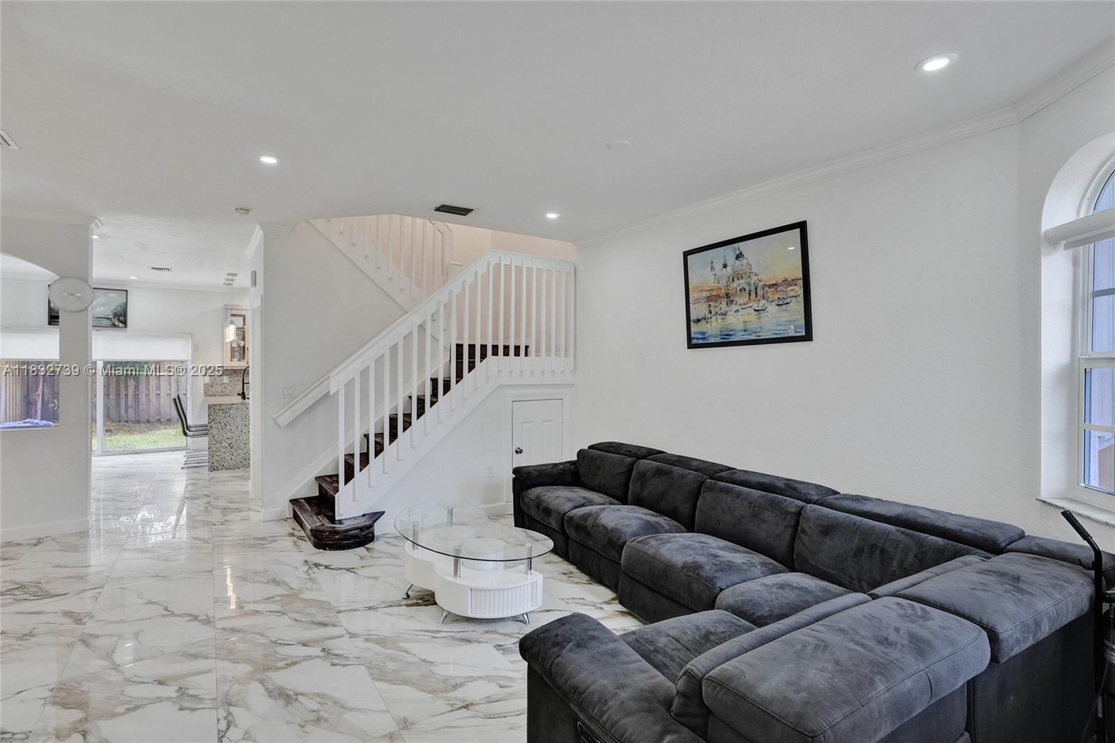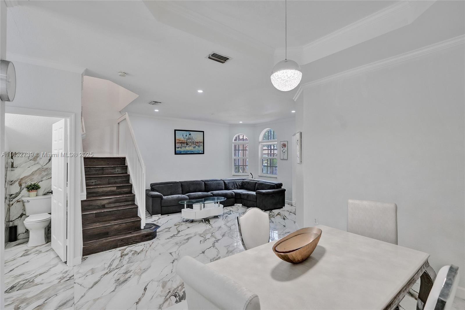Amazing 4BR, 2.5BA townhome with many upgrades including all impact doors and windows in the 24-hour manned-gates security of Bellagio at Vizcaya. The living room is perfect for entertaining, Separate formal dining room and adjacent family room offers plenty of room for the whole family. All bedrooms are upstairs including a HUGE master with a double vanity and separate shower and roman tub. There is a fenced in backyard, Full size washer/dryer, and one car garage right across the street from the sparkling community pool and clubhouse. Great community great location and great schools nearby!