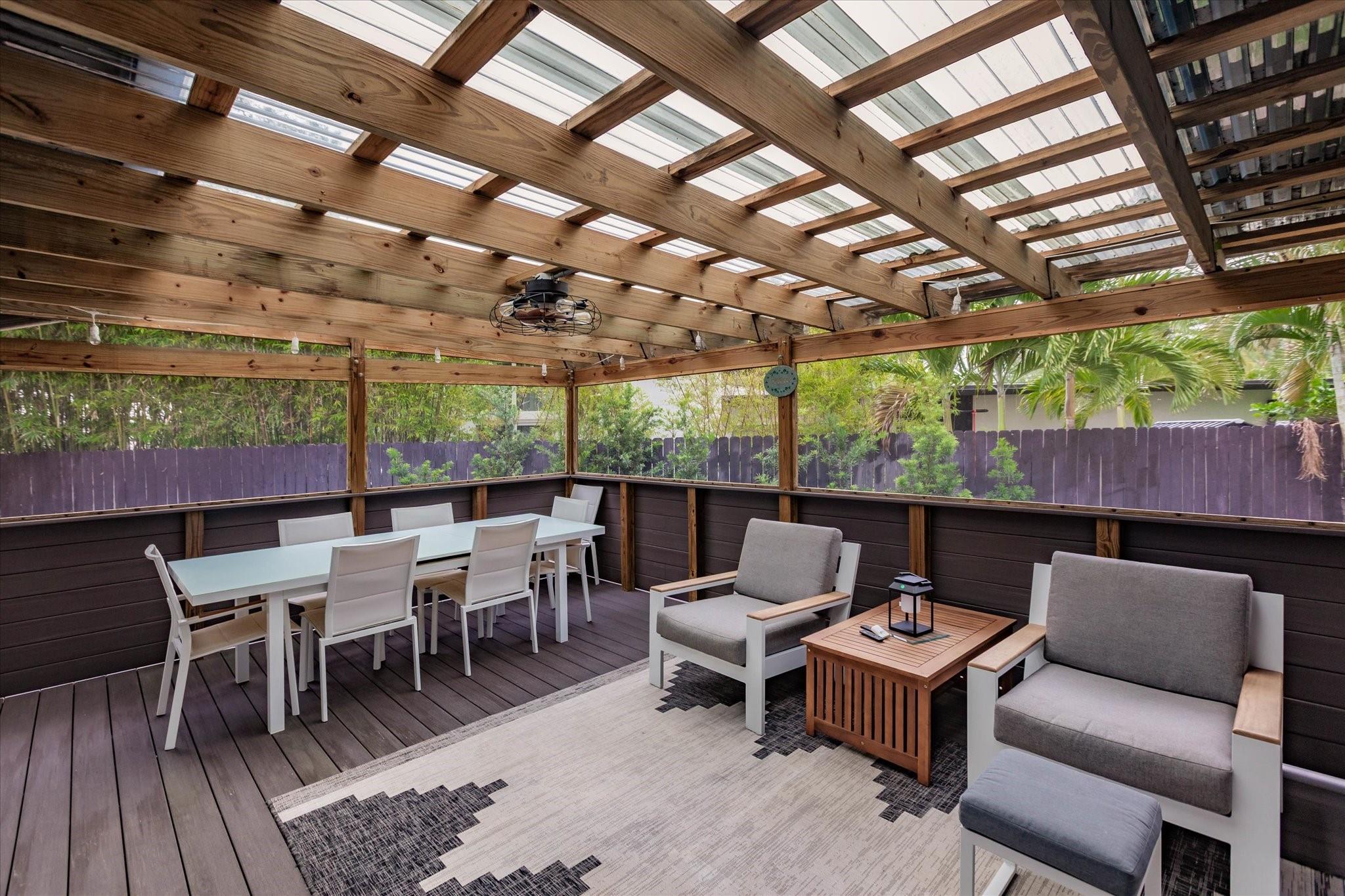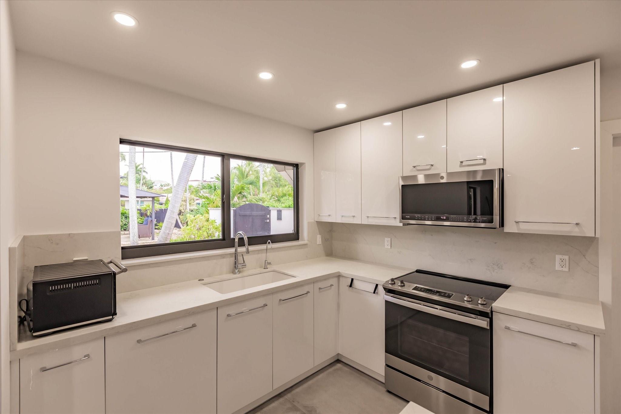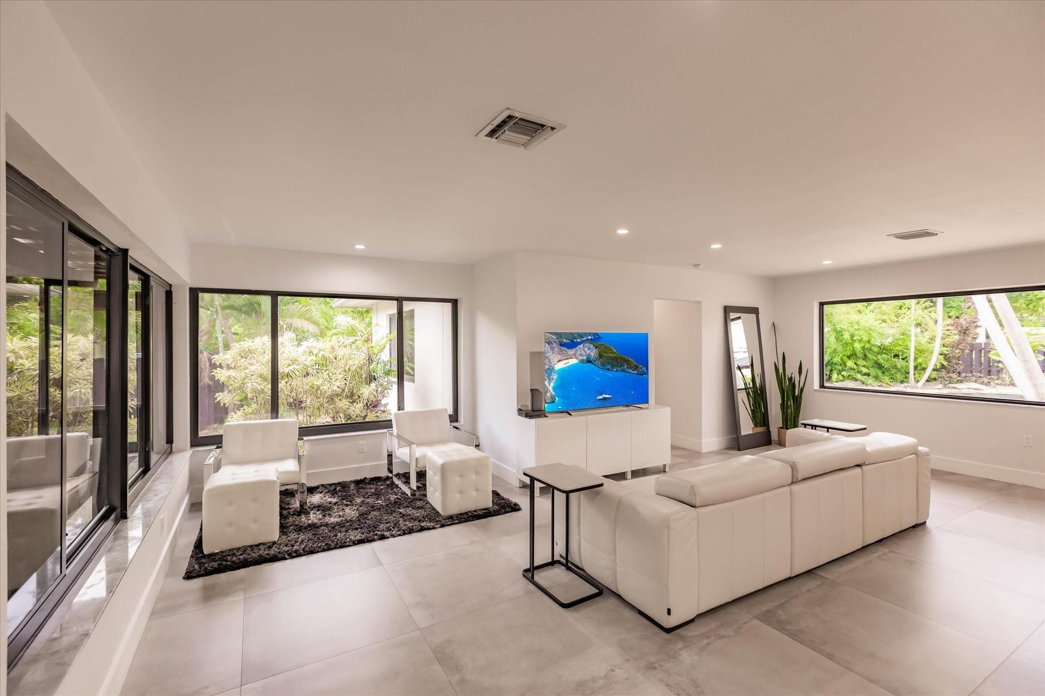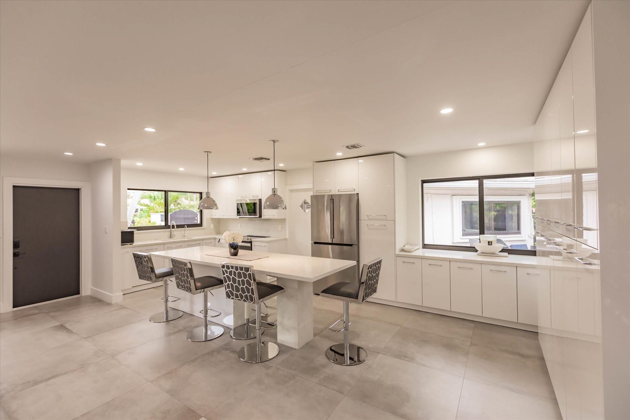 Beautiful pool home in sought after Coral Ridge. Recently updated. Quality Porcelanosa flooring throughout including the garage. Fully fenced private backyard, renovated kitchen with 10 foot quartz center island and combined living area. Full size 2-car garage. Outside shower. Large impact windows and doors bring the lush landscaping in. Top rated private and public schools (including Bayview Elementary).