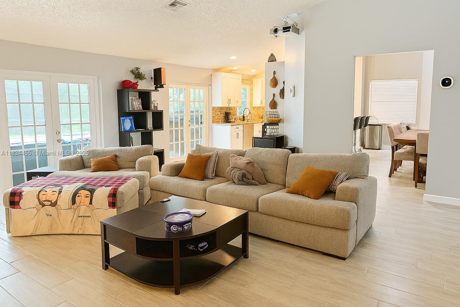 Price reduced, well below market value! 5-bedroom pool home on oversized 11,519 sqft corner lot in sought-after Pine Ridge, Coral Springs. This entertainer’s dream features a beautifully updated open kitchen with granite counters, white cabinets, s/s appliances, and a breakfast bar. Soaring ceilings, arched windows, and new tile flooring throughout all main areas+over 2,000 sqft of living space. Large primary suite with walk-in closet, & direct pool access. Saltwater/heated pool recently resurfaced w/marble deck & new screened enclosure. Home includes full impact windows, newer A/C, 7-year-old tile roof, 2-car garage, and a circular drive for 6+ cars. Fenced yard w/lush landscaping & fruit trees. A-rated schools. Close to parks, shops,+dining. Call or text agent today for your private tour