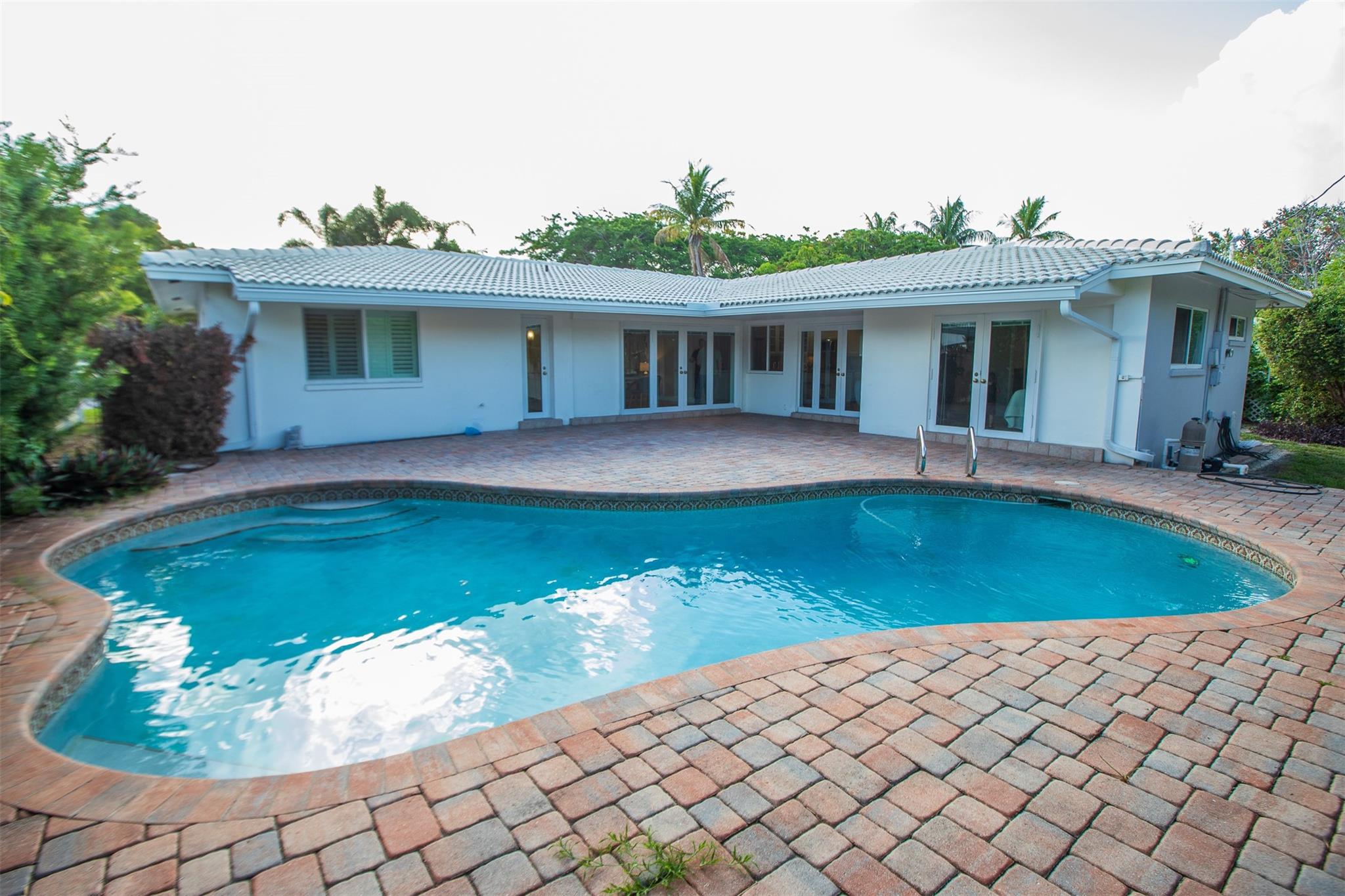 Beautifully updated 3-bedroom, 2-bath home in sought-after Coral Ridge Isles—just minutes from the beach and downtown Fort Lauderdale. This spacious split-floor plan features an open kitchen with granite countertops, stainless steel appliances, and wood flooring throughout. All impact windows and doors provide security and energy efficiency. Step outside to a large pool deck and sparkling swimming pool—perfect for entertaining. The oversized 2-car garage features a beautifully designed epoxy floor, and the huge circular driveway offers plenty of parking. Incredible location near top schools, shopping, dining, and the beach.