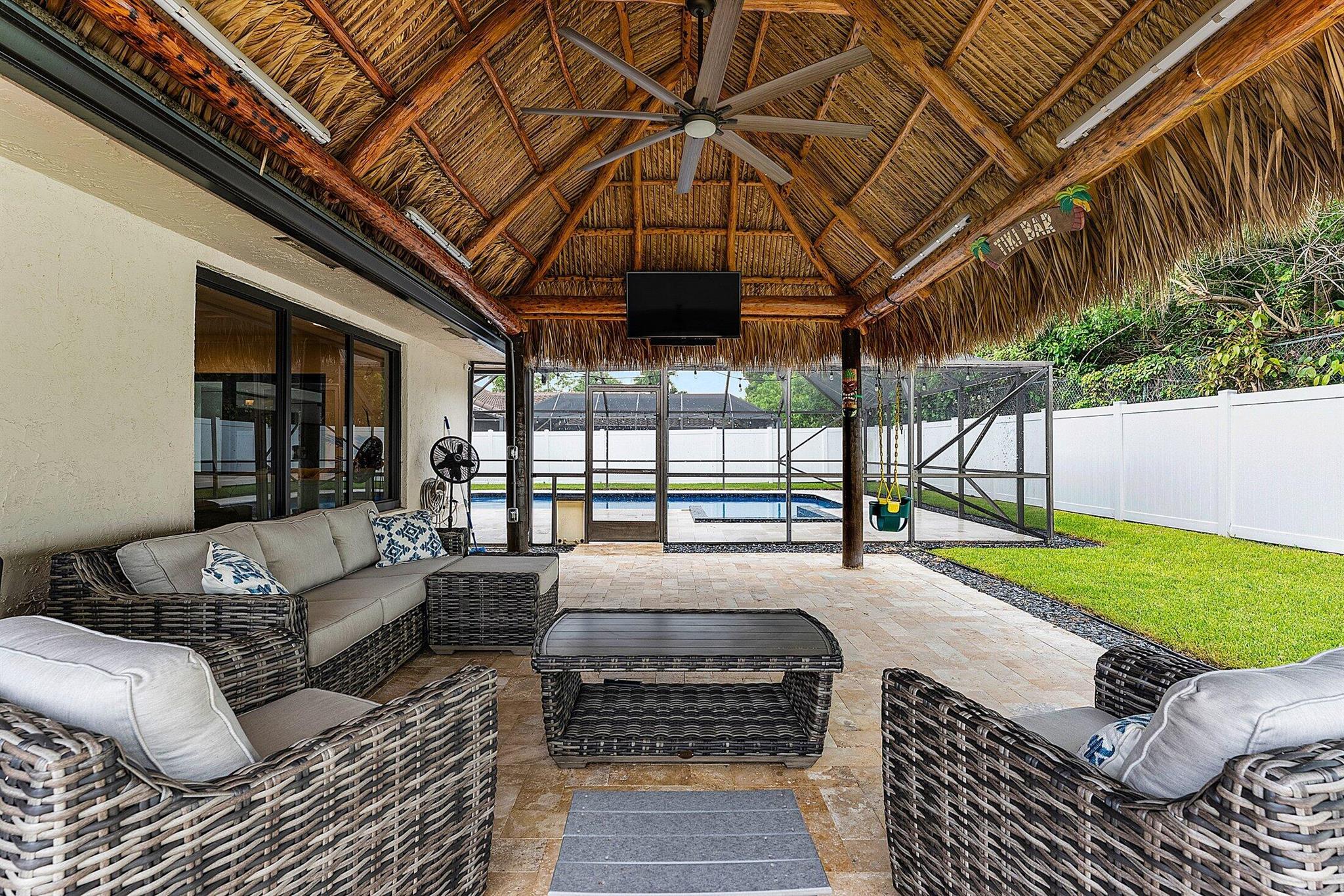 Rare opportunity in Boca Rio Heights, one of Boca's best-kept secrets! Tucked away in this quiet, hidden gem of a neighborhood, this 4 bedroom, 2.5-bath pool home offers the perfect blend of privacy, space, and style. Enjoy lush landscaping and peaceful golf course views from your backyard oasis. Inside, a wide-open & fully updated split floor plan is designed for both comfort and entertaining, featuring vaulted ceilings, impact windows, and an abundance of natural light. Additional upgrades include a 3-car garage, newer AC units, roof, and water heater, plus a tiki hut & new travertine pool deck that completes your tropical retreat. Homes in this neighborhood rarely come to market & a home like this in Boca for less than a million is almost unheard of. Schedule your showing TODAY!