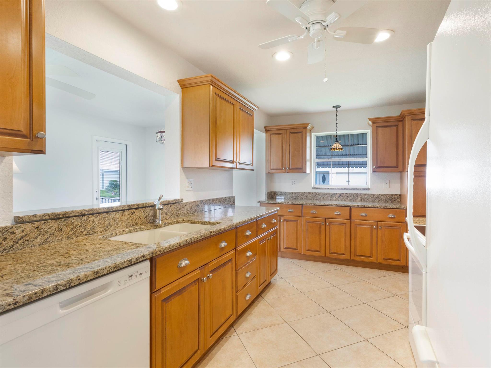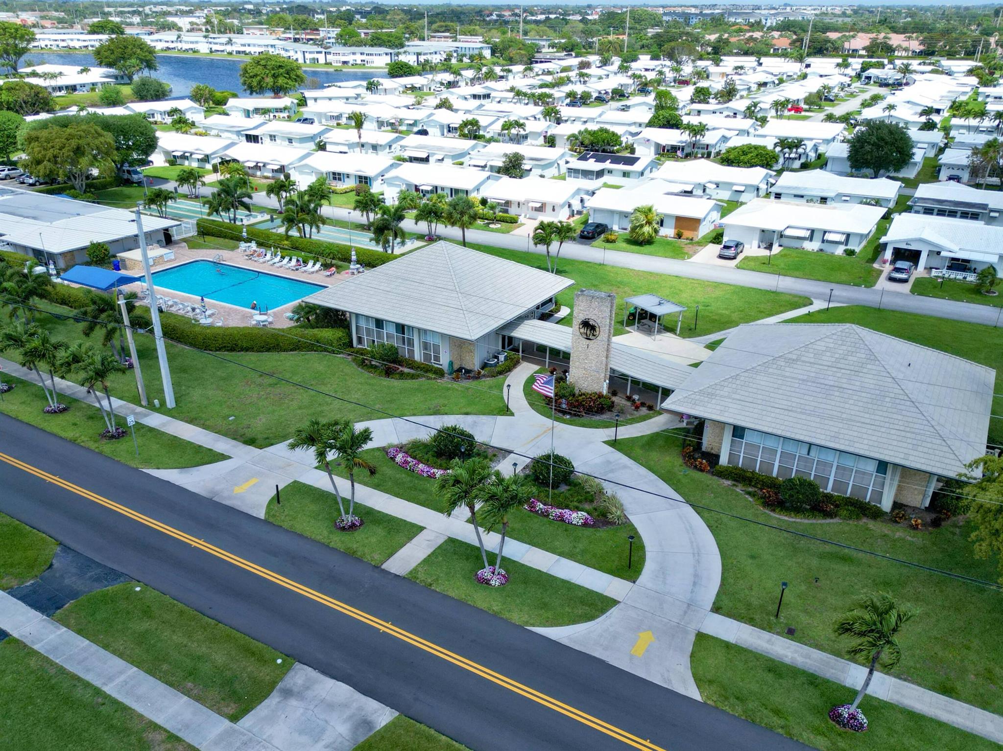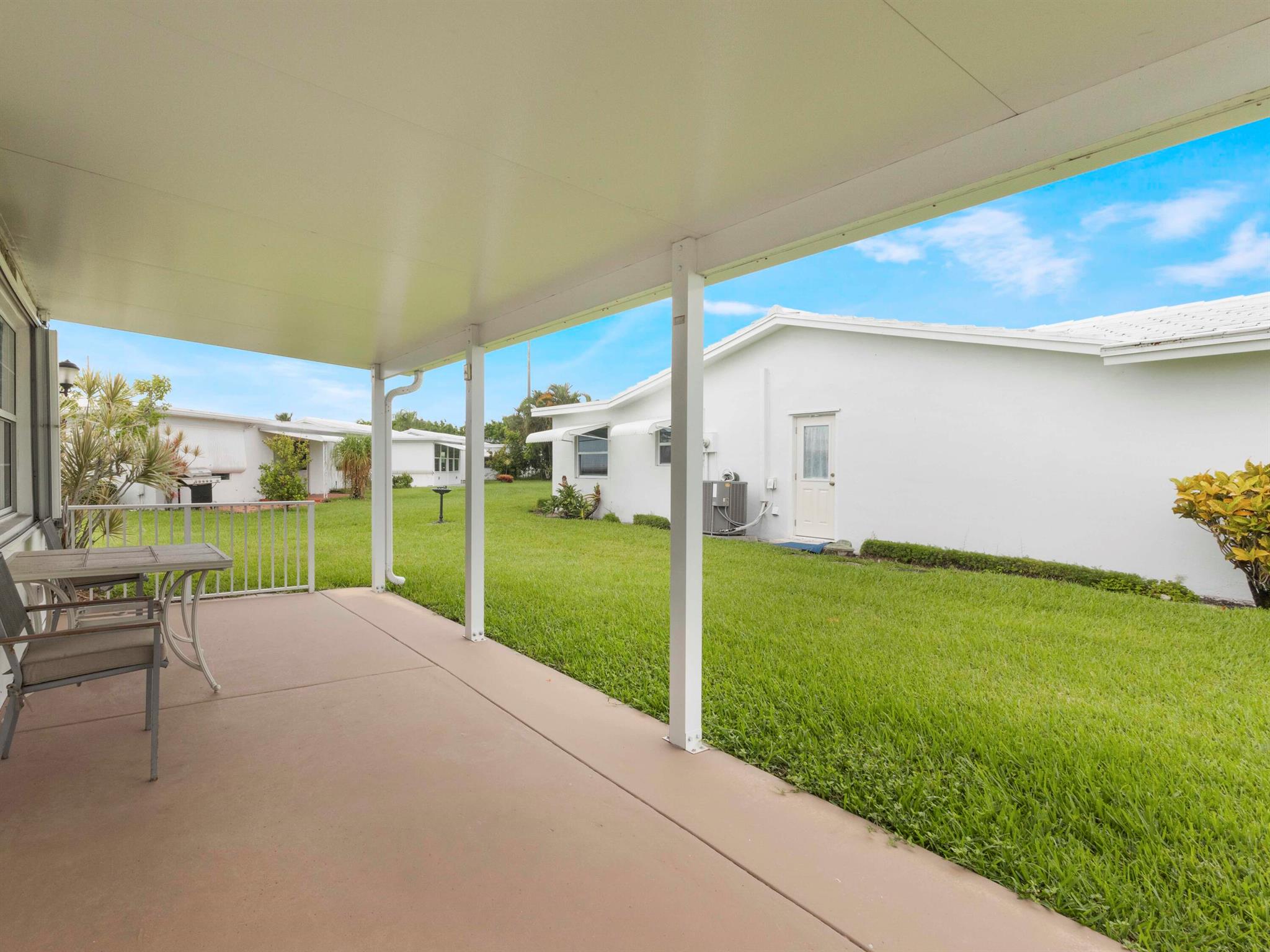 Location! Beautiful Regis Model home on a large corner lot in a very quiet area of Leisureville. (No heavy thru traffic) Immaculate condition with a new back patio and patio roof in 2019. Custom kitchen in warm tones, tile floors and wood tone laminate in bedrooms. Great closet space. Double wide driveway. 3 heated pools, 3 clubhouses, and FREE 18 hole par 3 golf!!