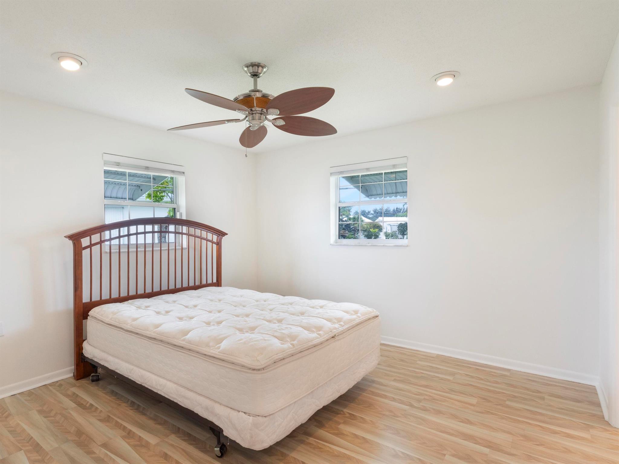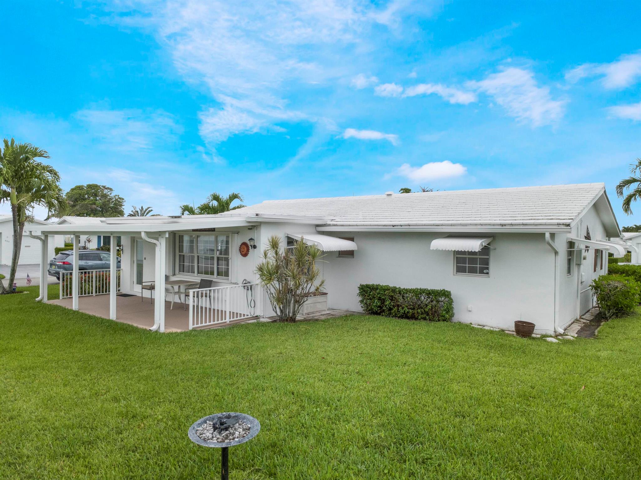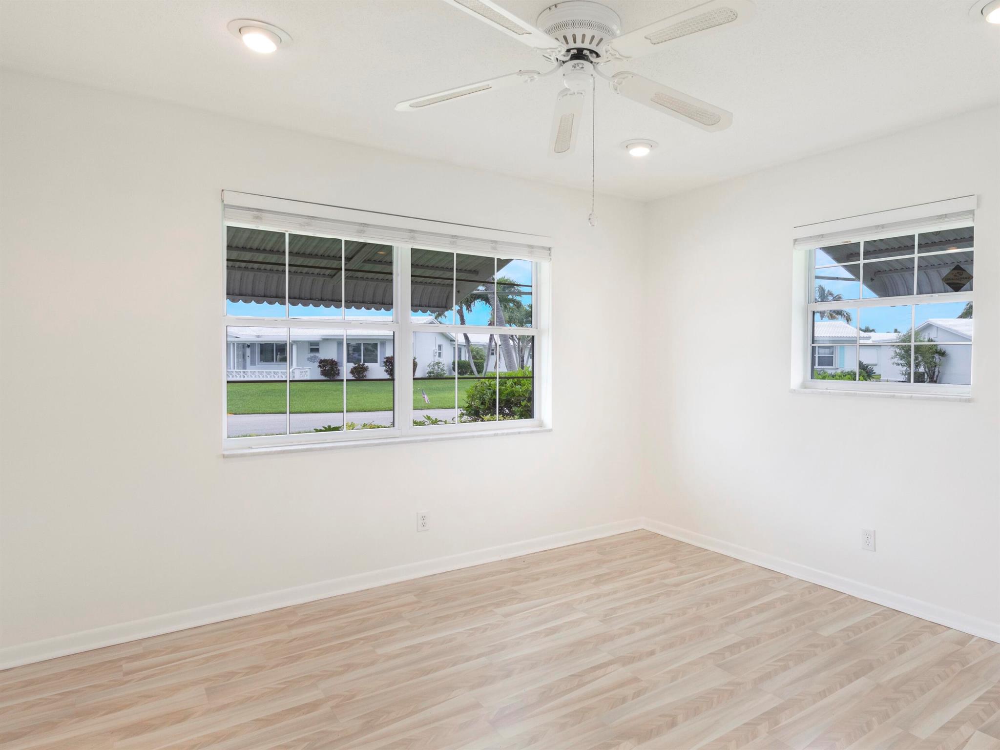 Location! Beautiful Regis Model home on a large corner lot in a very quiet area of Leisureville. (No heavy thru traffic) Immaculate condition with a new back patio and patio roof in 2019. Custom kitchen in warm tones, tile floors and wood tone laminate in bedrooms. Great closet space. Double wide driveway. 3 heated pools, 3 clubhouses, and FREE 18 hole par 3 golf!!