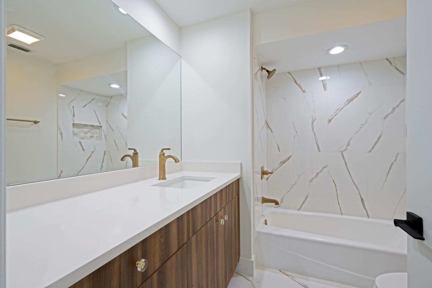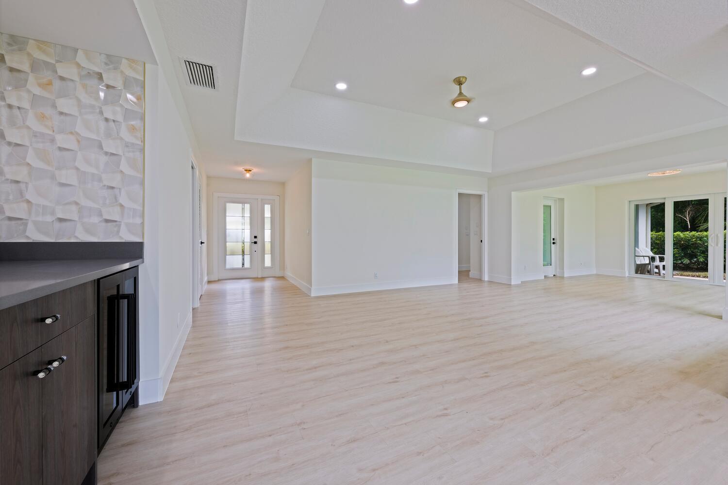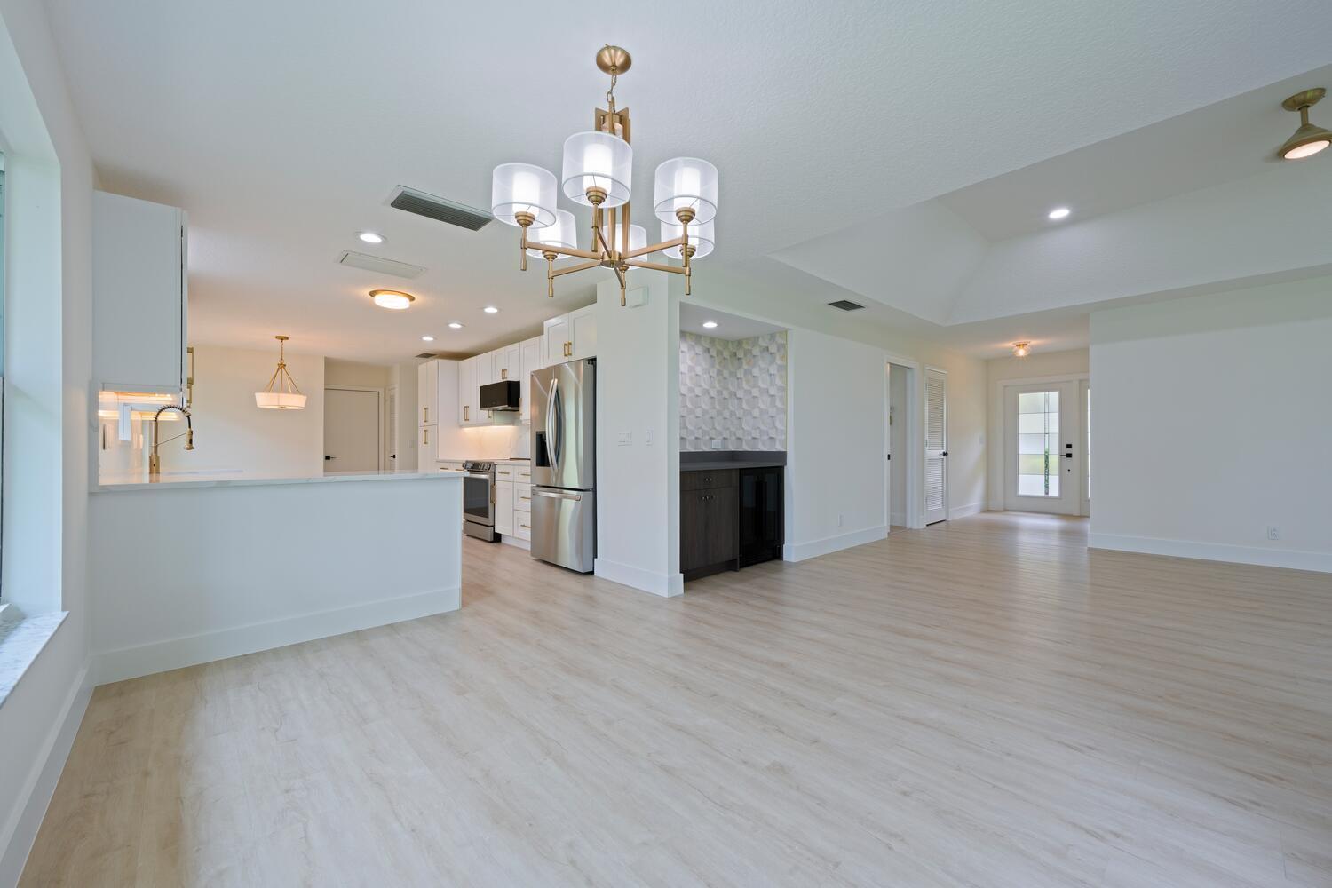 This home in Monarch Country Club is located on the 15th fairway of the Arnold Palmer Championship Golf Course, offering beautiful views from the living room. It features three bedrooms, two bathrooms, and a two-car garage with space for a golf cart. Recently remodeled, upgrades include a newer roof with leaf guard gutters, impact-resistant windows, and light oak luxury vinyl tile. The primary bathroom has modern Euro-style cabinets, and the kitchen includes new LG appliances and a wine fridge. An enclosed porch provides additional relaxation space. The monthly HOA fee of $541 covers gate maintenance, lawn care, cable, high-speed internet, and biannual roof cleaning, while the exterior, walkways, and driveways are pressure cleaned and repainted every six years.