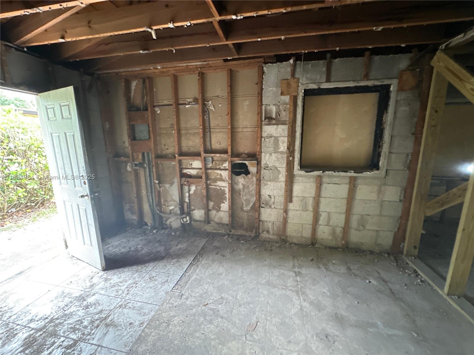 Opportunity knocks with this 777 sq ft, 2-bedroom, 1-bathroom single-family home with pool in need of restoration. Situated on a quiet street in a well-established neighborhood in North Miami. This property offers strong investment potential for contractors, investors, or visionary homeowners looking to customize their dream space. Ample lot space for potential expansion. I do have blueprints supporting a larger footprint to maximize best use scenarios for the space upon request. Please note: The home has sustained fire damage and will require significant renovation. This property offers a clean slate as all pre-existing drywall, electrical, plumbing and flooring have been removed. No mold or smoke smell.