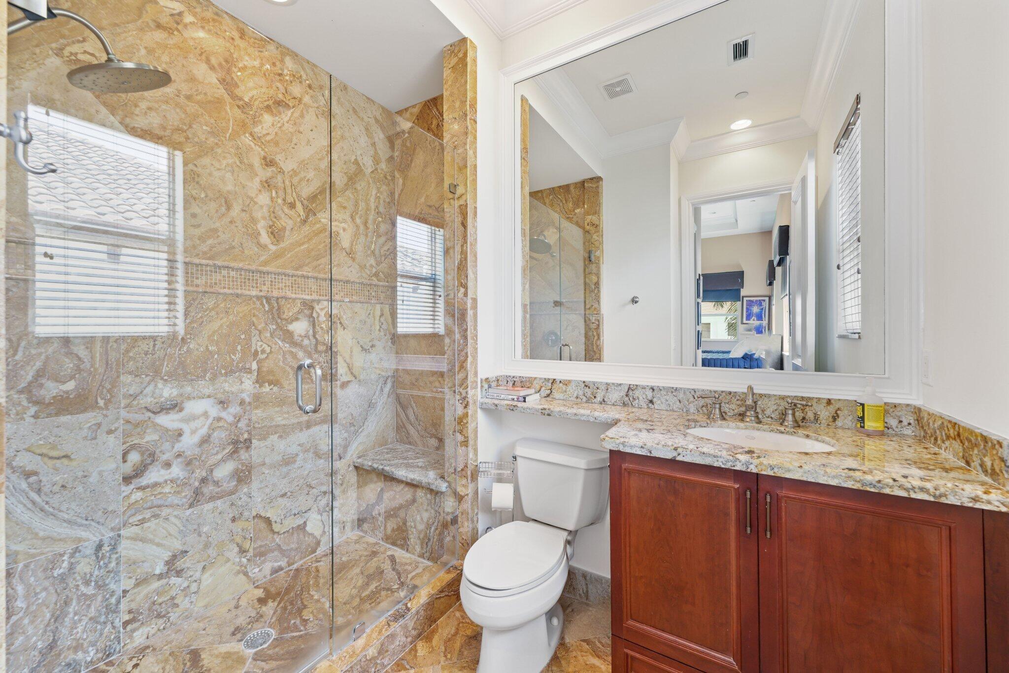 Discover exceptional waterfront living in the prestigious Tropic Isle community of Delray Beach. This 7-bedroom, 7.2-bathroom custom estate spans nearly 7,000sf under air & offers the ultimate in luxury and craftsmanship. Each bedroom features its own en-suite bathroom. Built in 2008 the home is constructed with solid concrete pilings and hurricane-impact glass throughout.Inside, soaring ceilings, marble & granite finishes, and expansive water views create an elegant yet inviting atmosphere. A high-tech movie theater and elevator up to the 3rd floor bonus room adds modern convenience, while the open-concept layout includes a first-floor guest suite, gas fireplace for effortless entertaining.Outside, enjoy 90 feet of seawall, a 70-foot dock with deep-water access and no fixed bridges