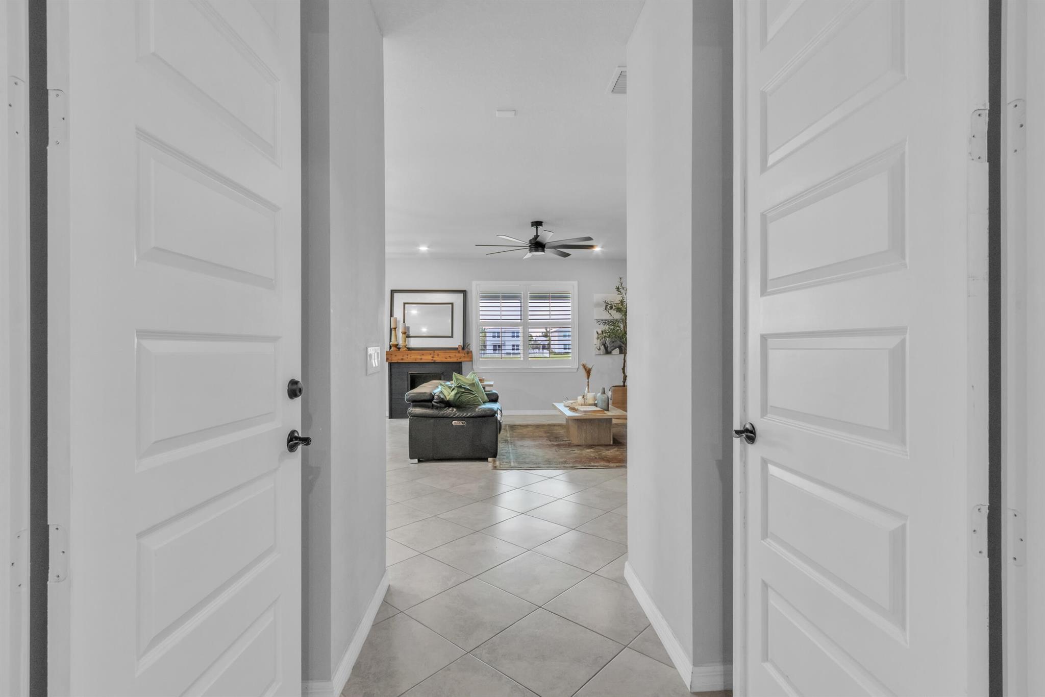 MOTIVATED SELLER - REASONABLE OFFERS WELCOME!Welcome to this beautifully-designed 3-bedroom, 2-bath home located in one of Tradition's most desirable neighborhoods. Constructed in 2021 with sturdy CBS block construction, this smart home combines energy efficiency with elegant, modern finishes for a lifestyle of comfort and convenience.The thoughtfully designed open, split floor plan offers seamless flow and functional privacy - ideal for both everyday living and entertaining. Throughout the interior, you'll find tasteful plantation shutters, impact-rated windows, and sleek flooring for a streamlined look that's both stylish and low-maintenance.