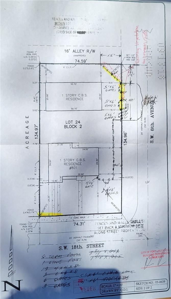 Rare Croissant Park 10,000 SF lot. 2/1 home that needs a total rehab, the value lies in this large lot and detached garage that is over 1250 SF w plumbing and electric. Layout on garage is a 1BR / Pool House and Room to Park 3 Cars inside + toys. Lot is on a corner with an alley easement giving access to multiple bay garage doors. Because of the alley easement you could easily separate both with a fence and use the back garage for personal use and keep the front house rented. Alternatively it would make a very cool whole home compound with an amazing detached living space and garage. Endless possibilities in one of Fort Lauderdale's best suburbs. <3 miles to the Ocean, 2 miles to Las Olas Night Life Dining & Shopping. Quick access to 95 / 595 for commutes & under 10 min to FLL Airport