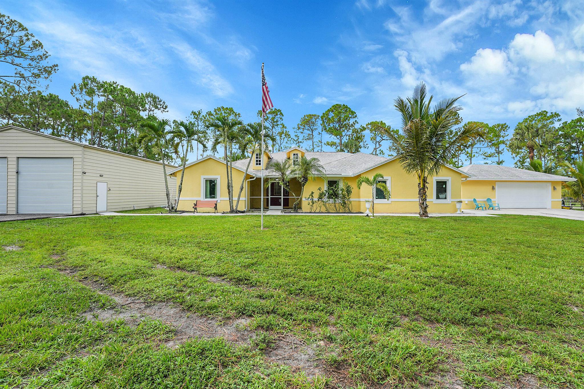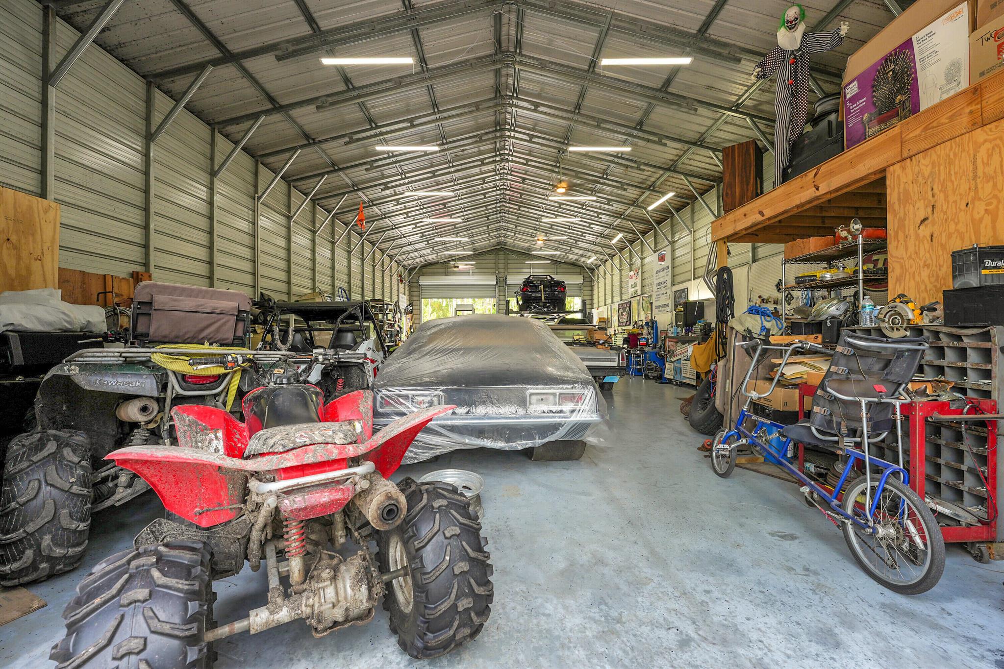 Welcome to this beautiful NON HOA 4 bedroom, 2 bathroom home that includes a bonus room/office & 2 detached buildings.Nestled on 1.3 Acres this home has it all. Brand new hurricane impact windows, A split bedroom floor plan showcasing a primary bedroom retreat to enjoy your own peaceful space with a walk-in closet bigger than you can picture!The kitchen is completely redone with brand-new stainless steel appliances, cabinets and new floors throughout the house.Outside you'll find a screened in covered porch perfect for entertaining, a sparkling in ground pool, 2 storage sheds and plenty of room for the animals. The massive detached shop is 30 x 65, has electric, a car lift with double roll up door in front & one in the back. There is RV hook up.