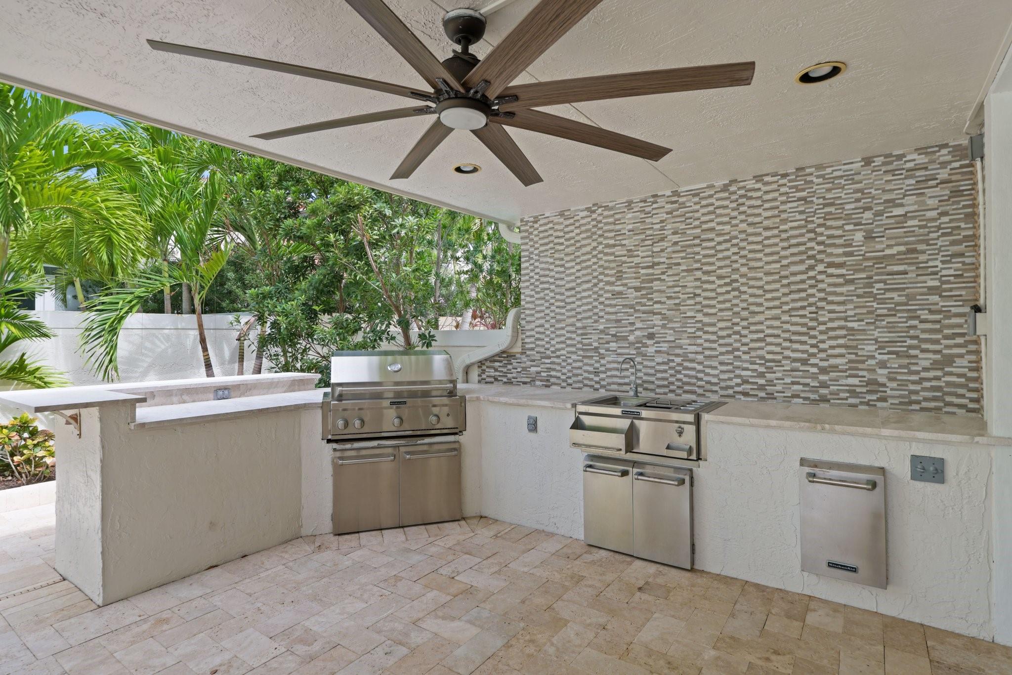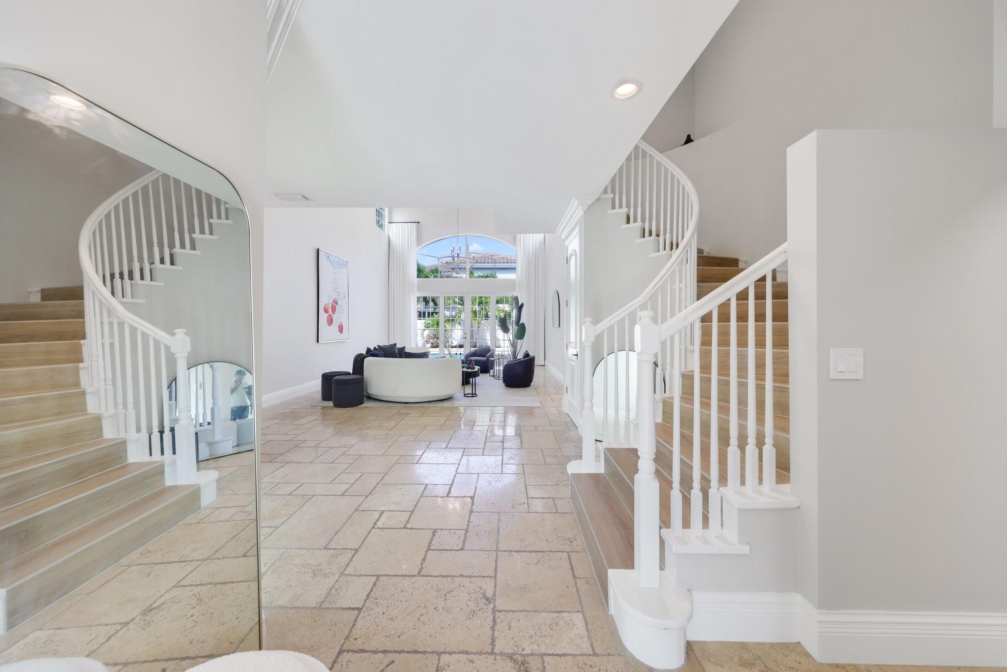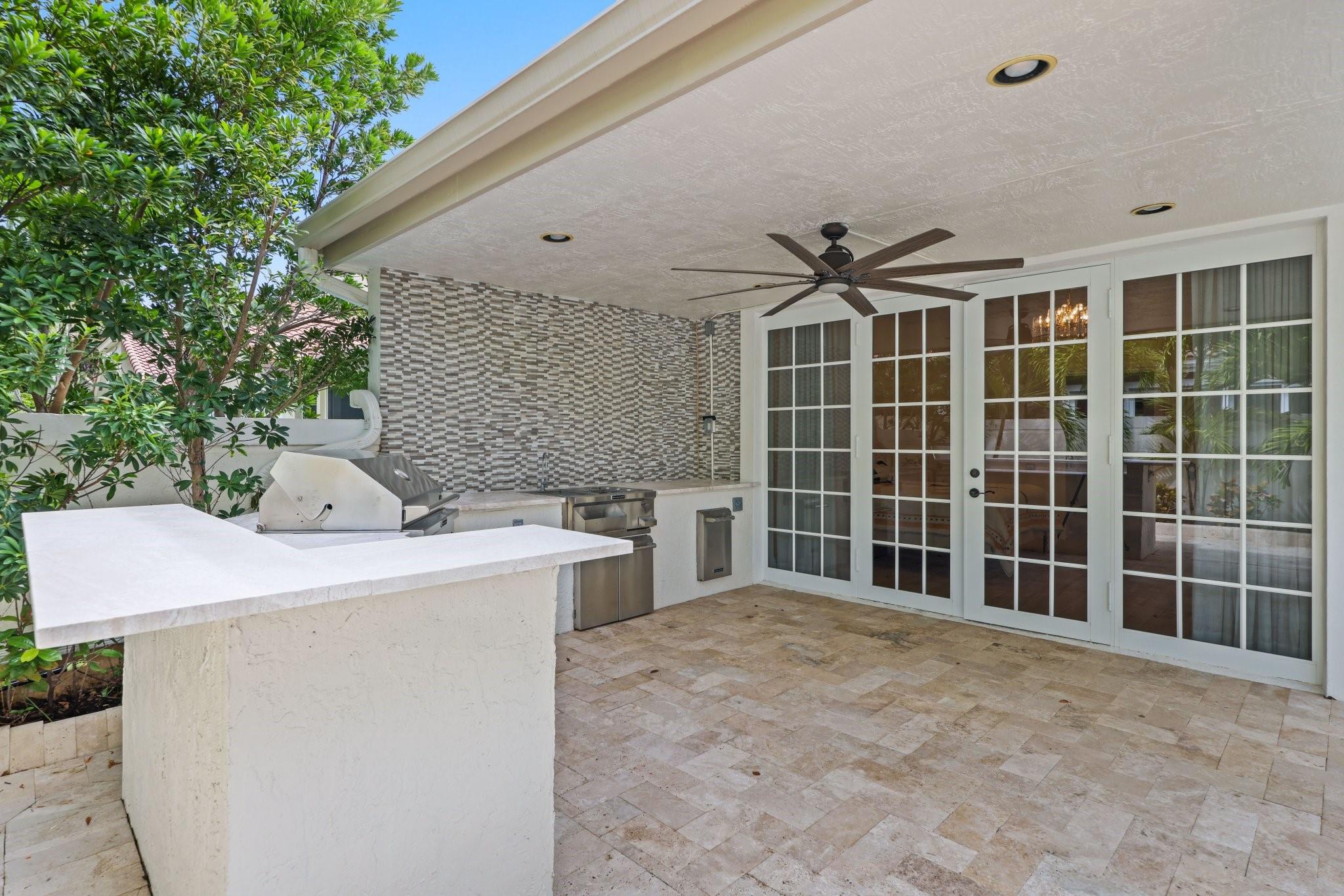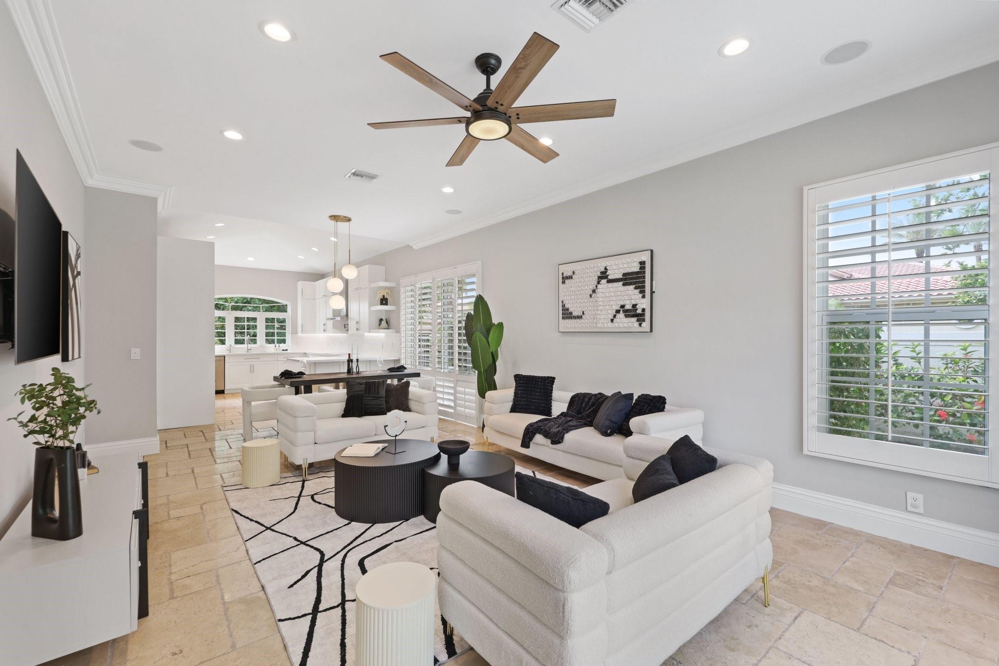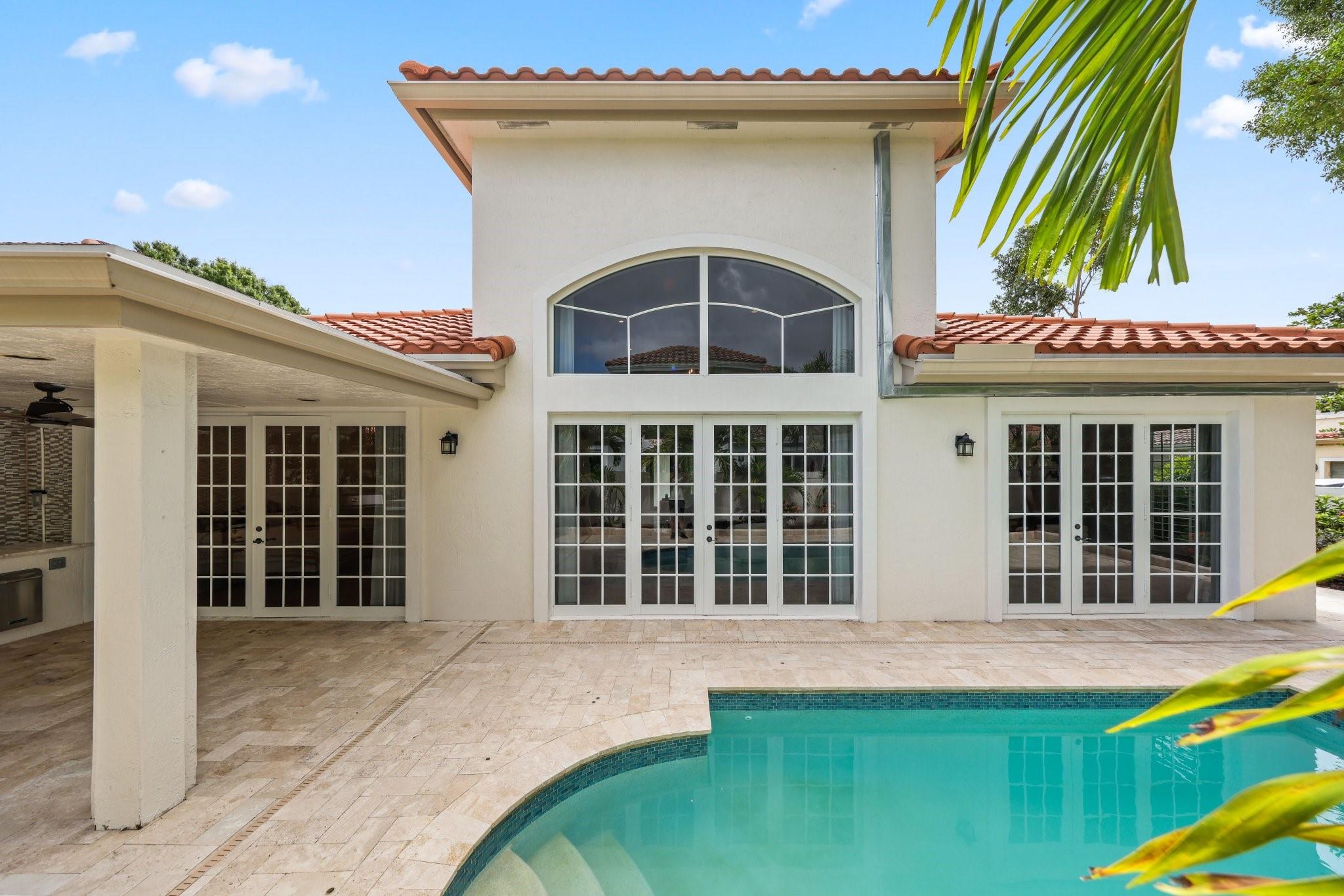 Fully renovated, move-in ready home with IMPACT WINDOWS in the gated community of Santa Barbara. Travertine floors throughout the living area and custom designer finishes throughout. Heated pool, 2 new A/C units (2020), and newer roof (2016). Spacious primary suite with XL walk-in closet w/ custom built-ins. Master bathroom remodeled in 2023 with high-end finishes. Freshly painted interior w/ wood-look tile upstairs - NO CARPET. Backyard & pool recently remodeled w/ travertine deck & custom covered built-in grilling station. Your BBQs will be the best in the neighborhood! Clubhouse offers gym, tennis, pool, and cabanas with low HOA. Zoned for some of the best schools in Boca! Close to Town Center, beaches, I95, and anything else you could want.