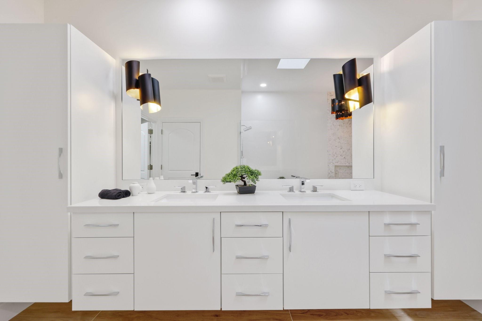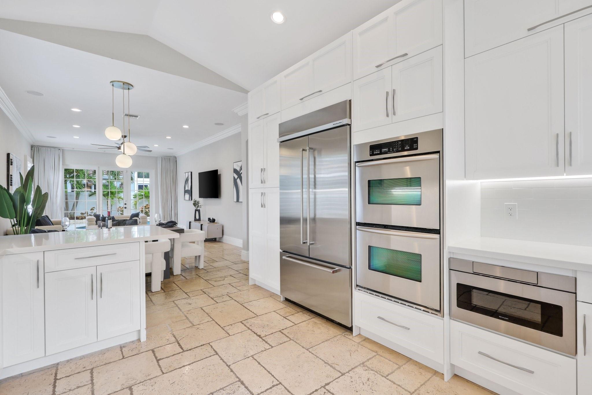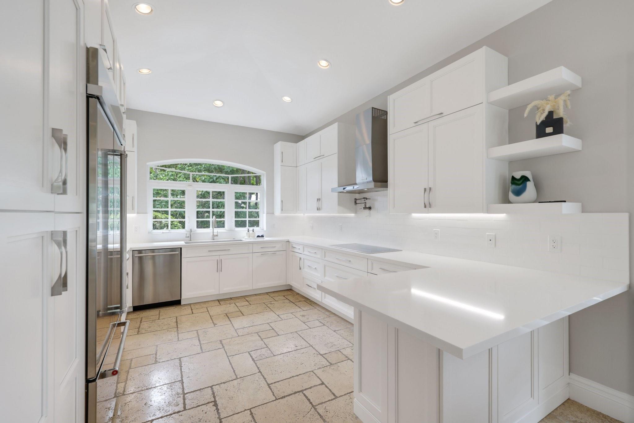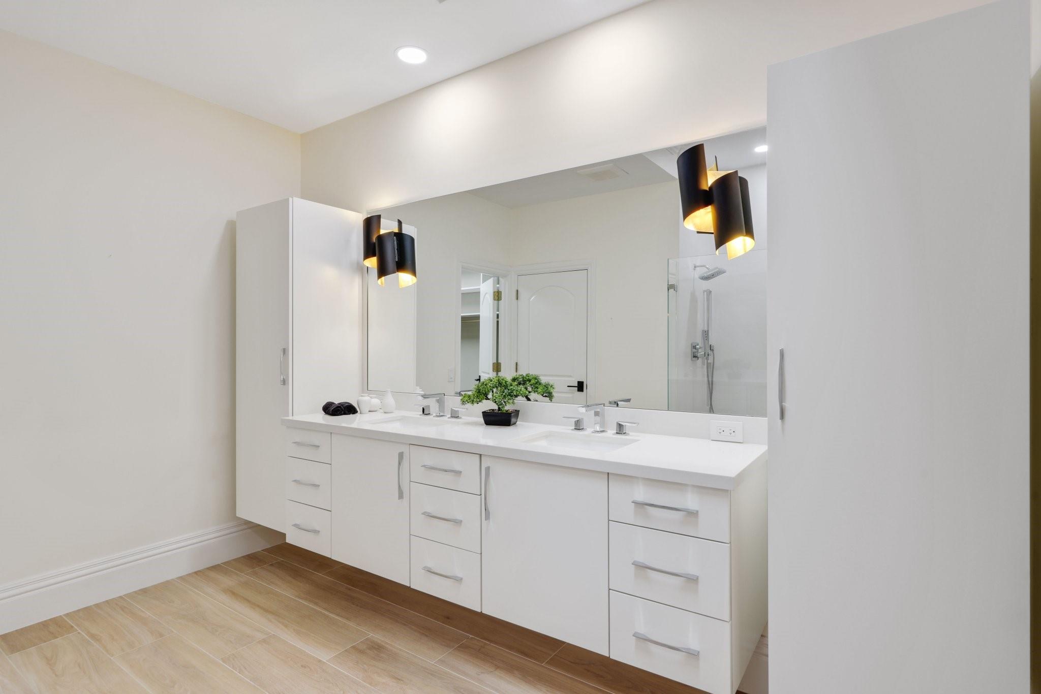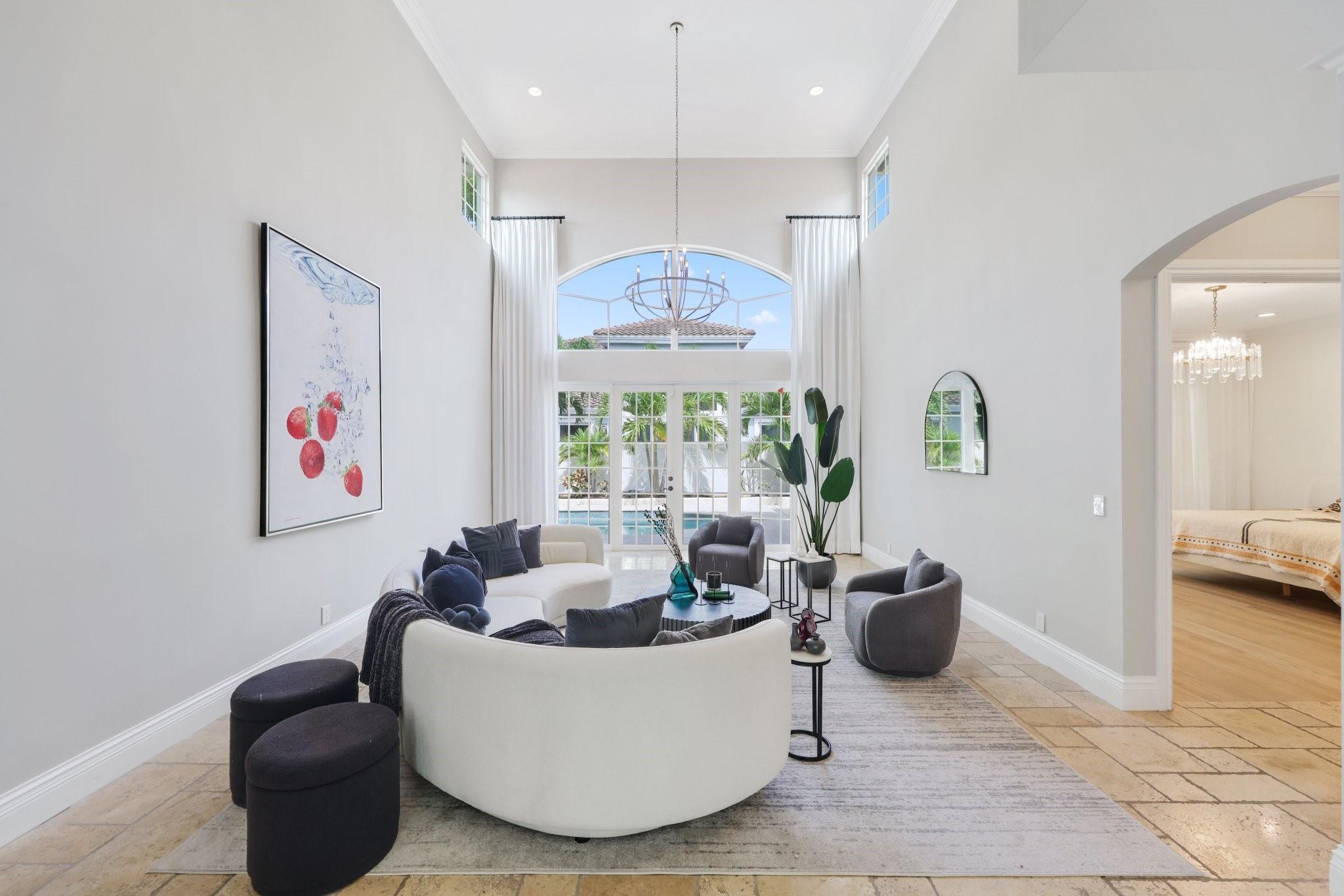 Fully renovated, move-in ready home with IMPACT WINDOWS in the gated community of Santa Barbara. Travertine floors throughout the living area and custom designer finishes throughout. Heated pool, 2 new A/C units (2020), and newer roof (2016). Spacious primary suite with XL walk-in closet w/ custom built-ins. Master bathroom remodeled in 2023 with high-end finishes. Freshly painted interior w/ wood-look tile upstairs - NO CARPET. Backyard & pool recently remodeled w/ travertine deck & custom covered built-in grilling station. Your BBQs will be the best in the neighborhood! Clubhouse offers gym, tennis, pool, and cabanas with low HOA. Zoned for some of the best schools in Boca! Close to Town Center, beaches, I95, and anything else you could want.