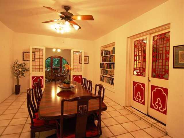 Historic 2 story 5/3.5 home in the remarkable 1920's Chinese Village. 3375 sq', 6090 sq' walled & gated lot, foyer, large dining room, exquisite formal living room with fireplace, oak floors & a wall of intricately carved glass & Chinese fret work doors o verlooking the large backyard. Eat-in kitchen. 1 bedm 1 & 1/2 baths down, 4 bdrms + office & 2 bths up. 2 car garge. Rare opportunity to acquire this elaborately detaied homage to "Forbidden City" architecture. Possibly rm for a pool. Needs some updating.
