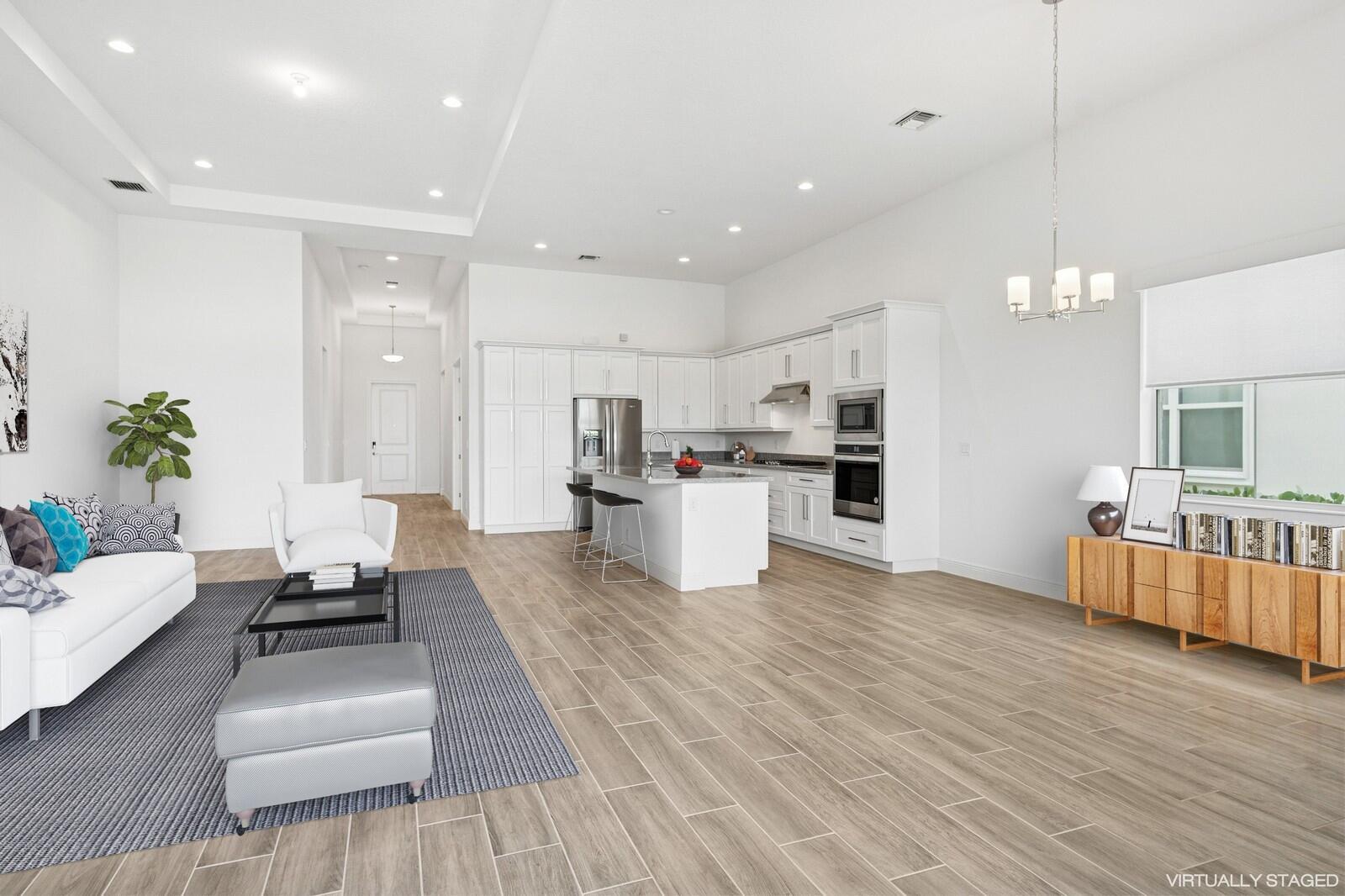 Move into this modern day retreat and start enjoying a new lifestyle, The 3 bedrooms, den & 2 & 1/2 baths offers upgraded features that define modern elegance. The elegant kitchen has a large pantry and quartz countertops.The den can be used for many activities or even a 4th bedroom. Looking from the dining and great room you see a relaxing water view. Regency is known for its upscale amenities including a luxury Clubhouse with a resort style pool, tennis, pickleball, art studio, reading area and spa treatment rooms.. A Publix, hospital & school on site will serve the entire community Access to the FL turnpike, I-95 and the airport are all within 10-20 minutes making it an ideal location. Sandhill Crane Golf Club is next door. Why wait to enjoy!!!