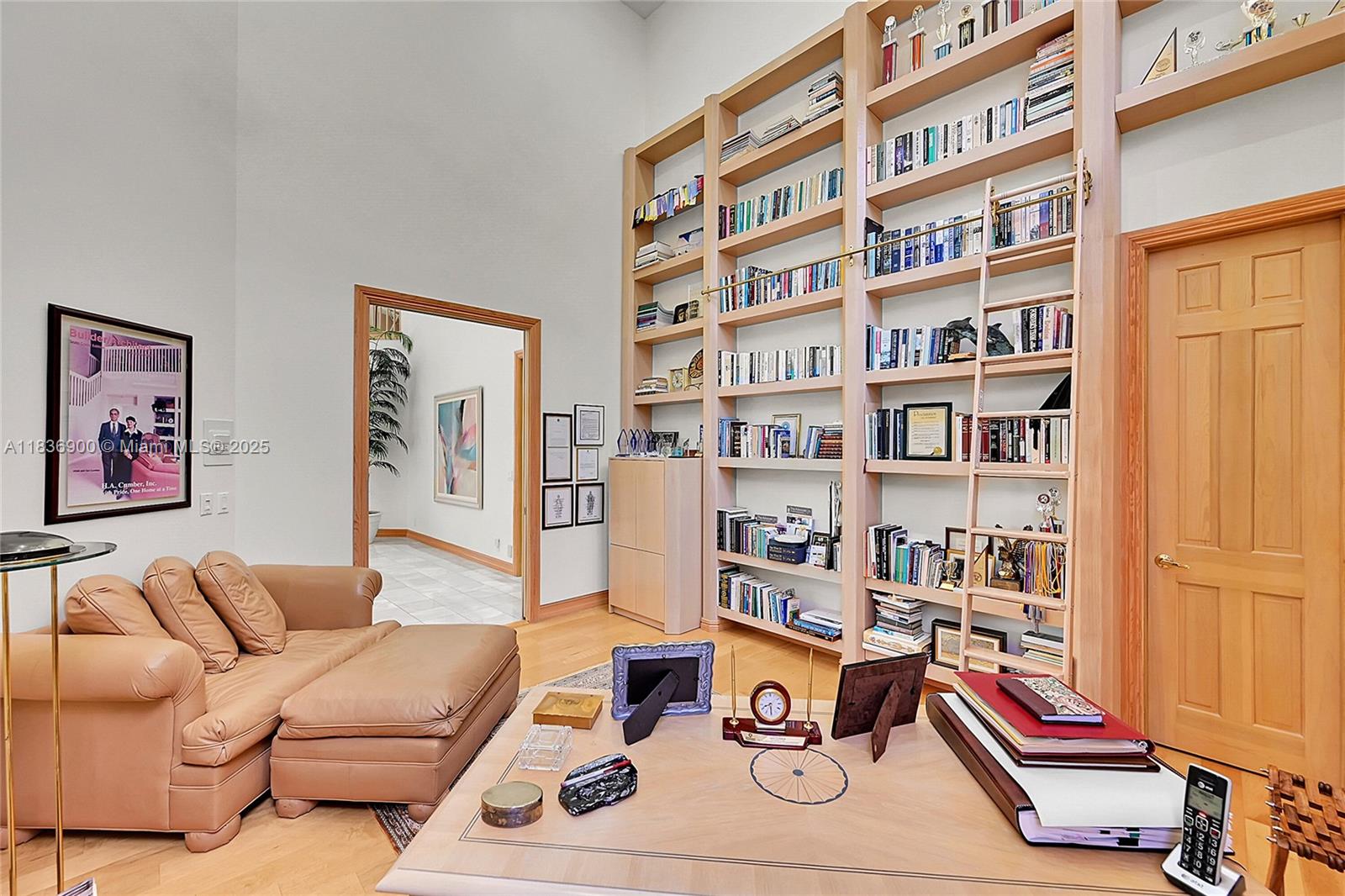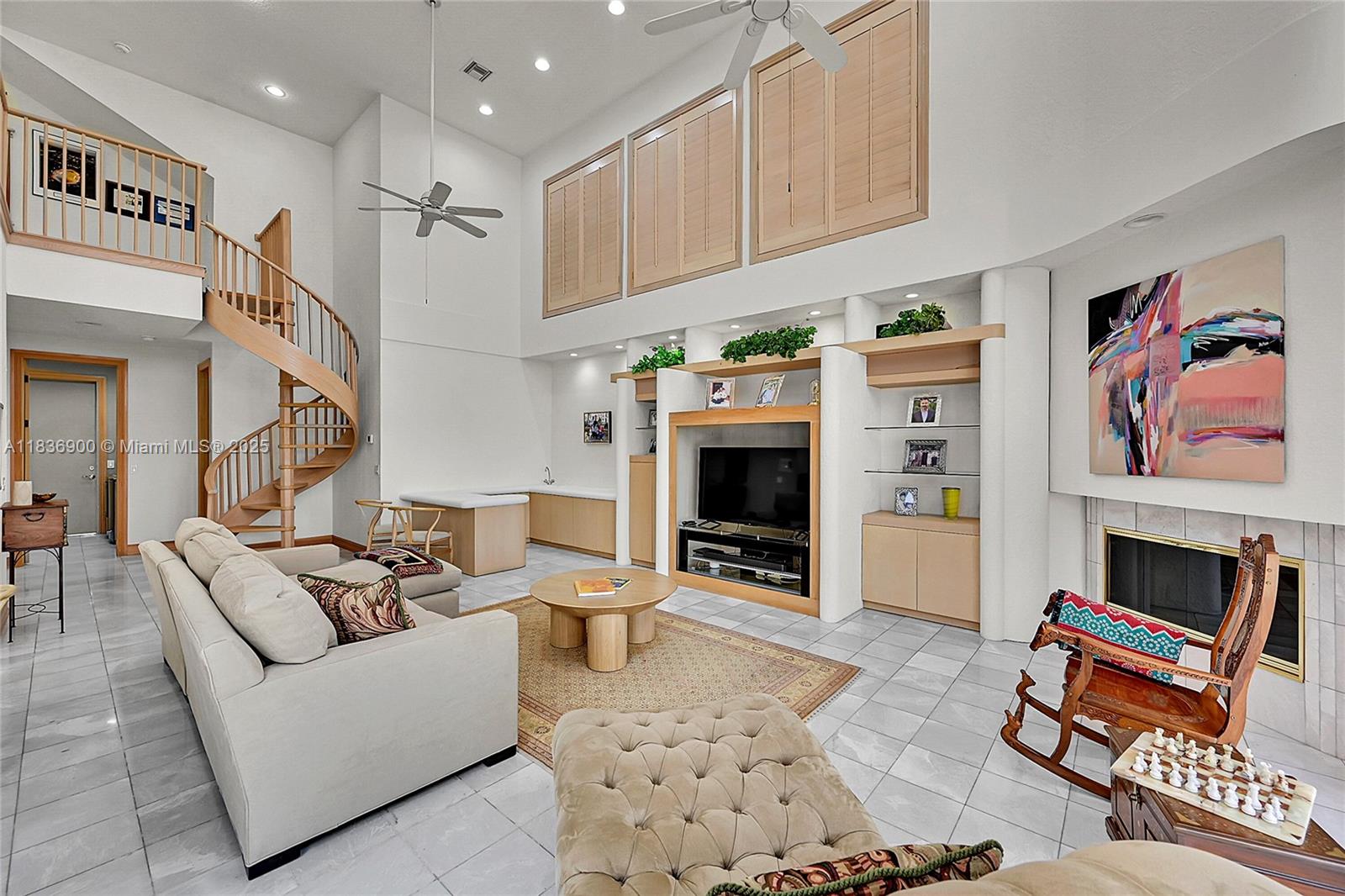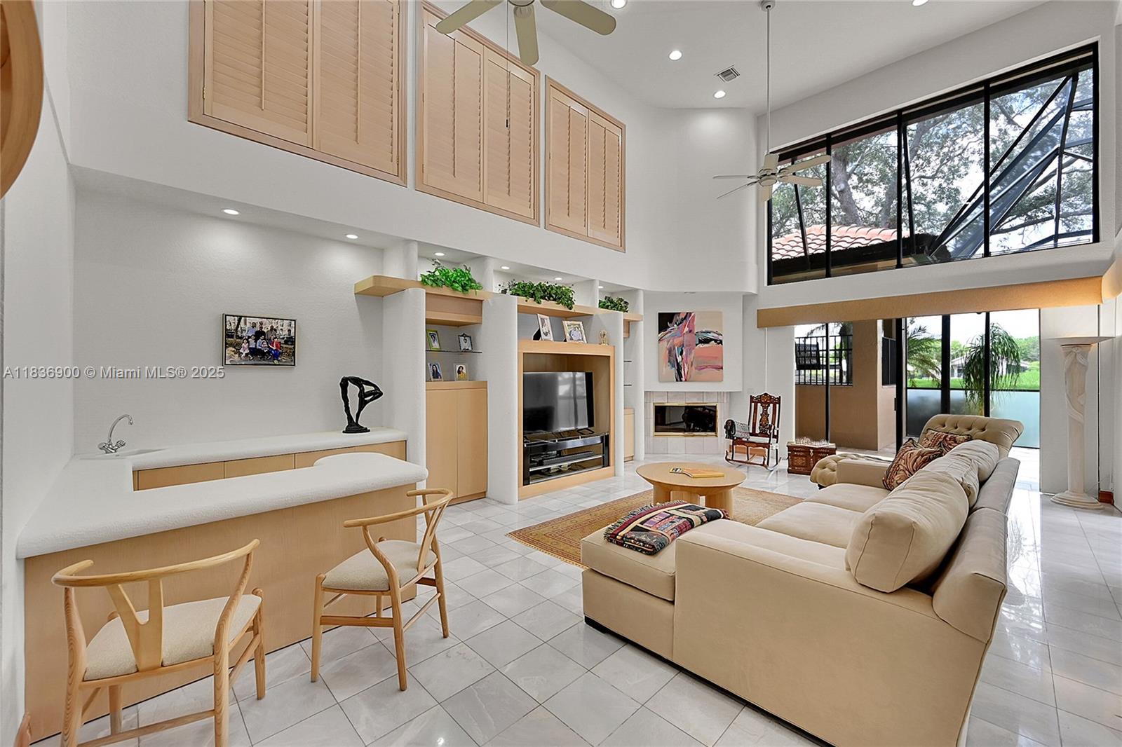 Custom 5500sf builder’s home that starts with 16' of panoramic golf & lake views from the sprawling entry with 21' ceilings! 4 Ensuites (3 on the main floor), 2 lofts, office & library with 16’ shelves & sliding ladder—the owner's favorite room! The white kitchen shines with full granite backsplash, stainless KitchenAid appliances, and endless storage that flows into a family room with fireplace, wet bar, & built-ins. Hardwood and marble floors, central vac, and plantation shutters throughout. Custom built closets! The owner’s wing is a retreat with a exercise and sitting room. Outdoors: travertine honed patio, outdoor cabinets for KT pass thru, tile-slide pool, privacy screen, and underground pool cleaning system. Elevated porch swing for amazing sunsets! Culdesac location feels private!
