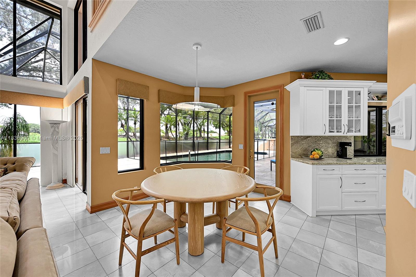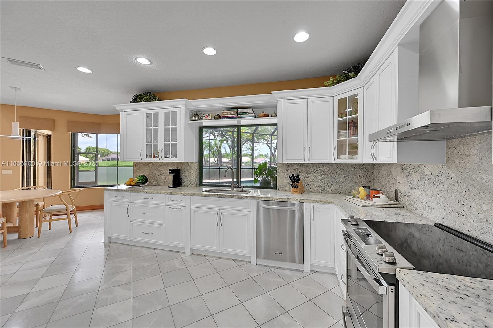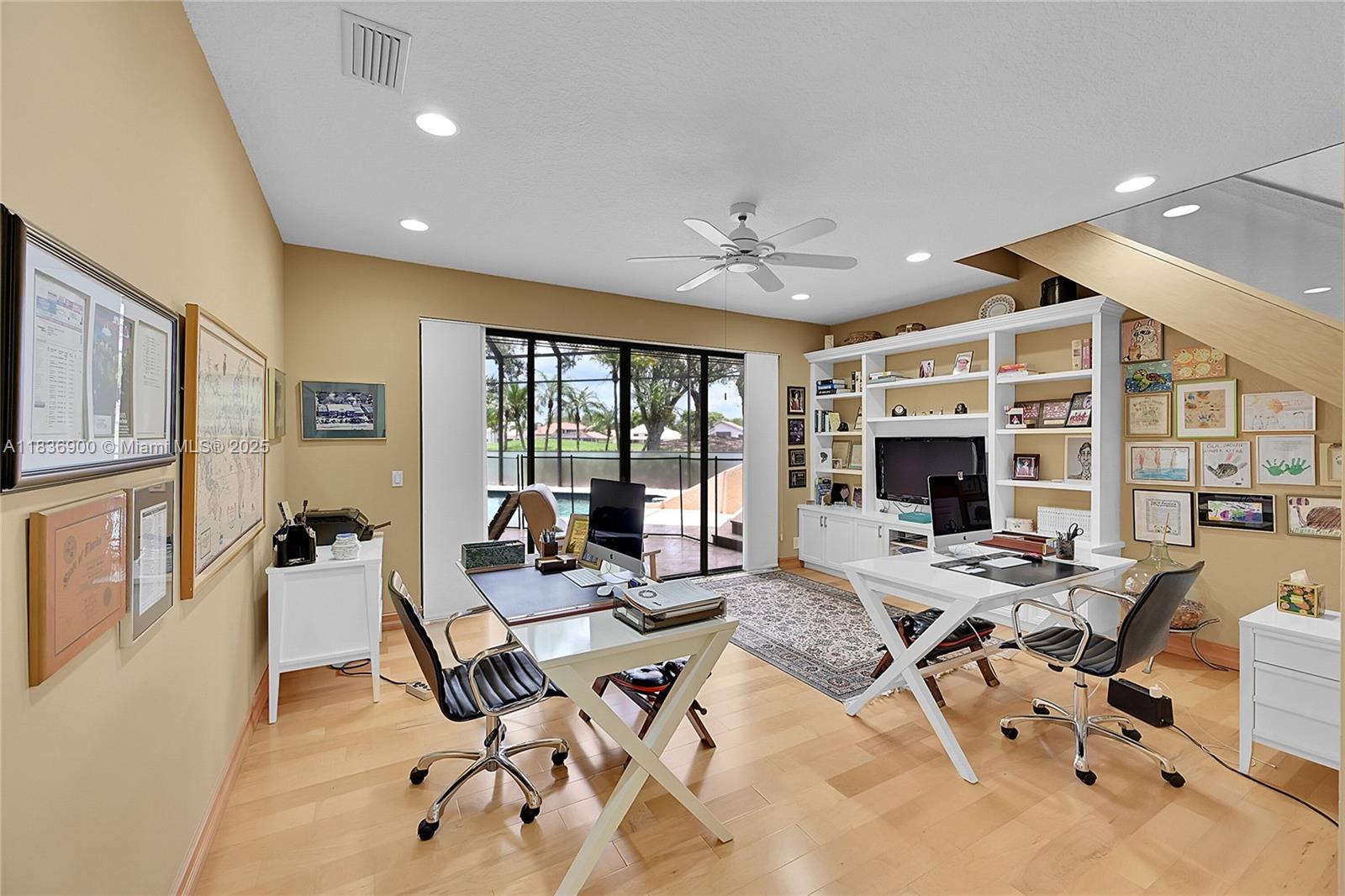 Custom 5500sf builder’s home that starts with 16' of panoramic golf & lake views from the sprawling entry with 21' ceilings! 4 Ensuites (3 on the main floor), 2 lofts, office & library with 16’ shelves & sliding ladder—the owner's favorite room! The white kitchen shines with full granite backsplash, stainless KitchenAid appliances, and endless storage that flows into a family room with fireplace, wet bar, & built-ins. Hardwood and marble floors, central vac, and plantation shutters throughout. Custom built closets! The owner’s wing is a retreat with a exercise and sitting room. Outdoors: travertine honed patio, outdoor cabinets for KT pass thru, tile-slide pool, privacy screen, and underground pool cleaning system. Elevated porch swing for amazing sunsets! Culdesac location feels private!