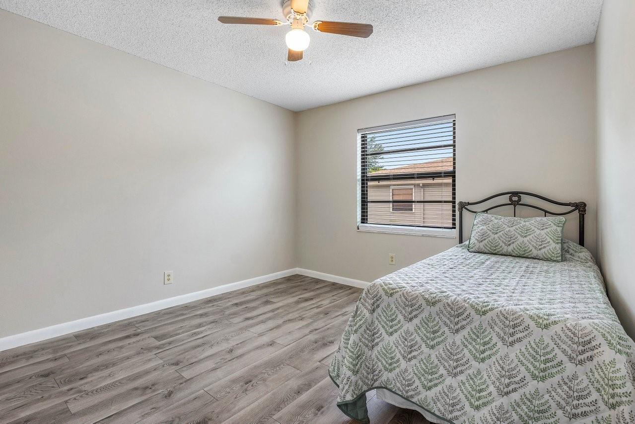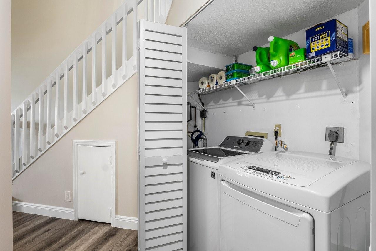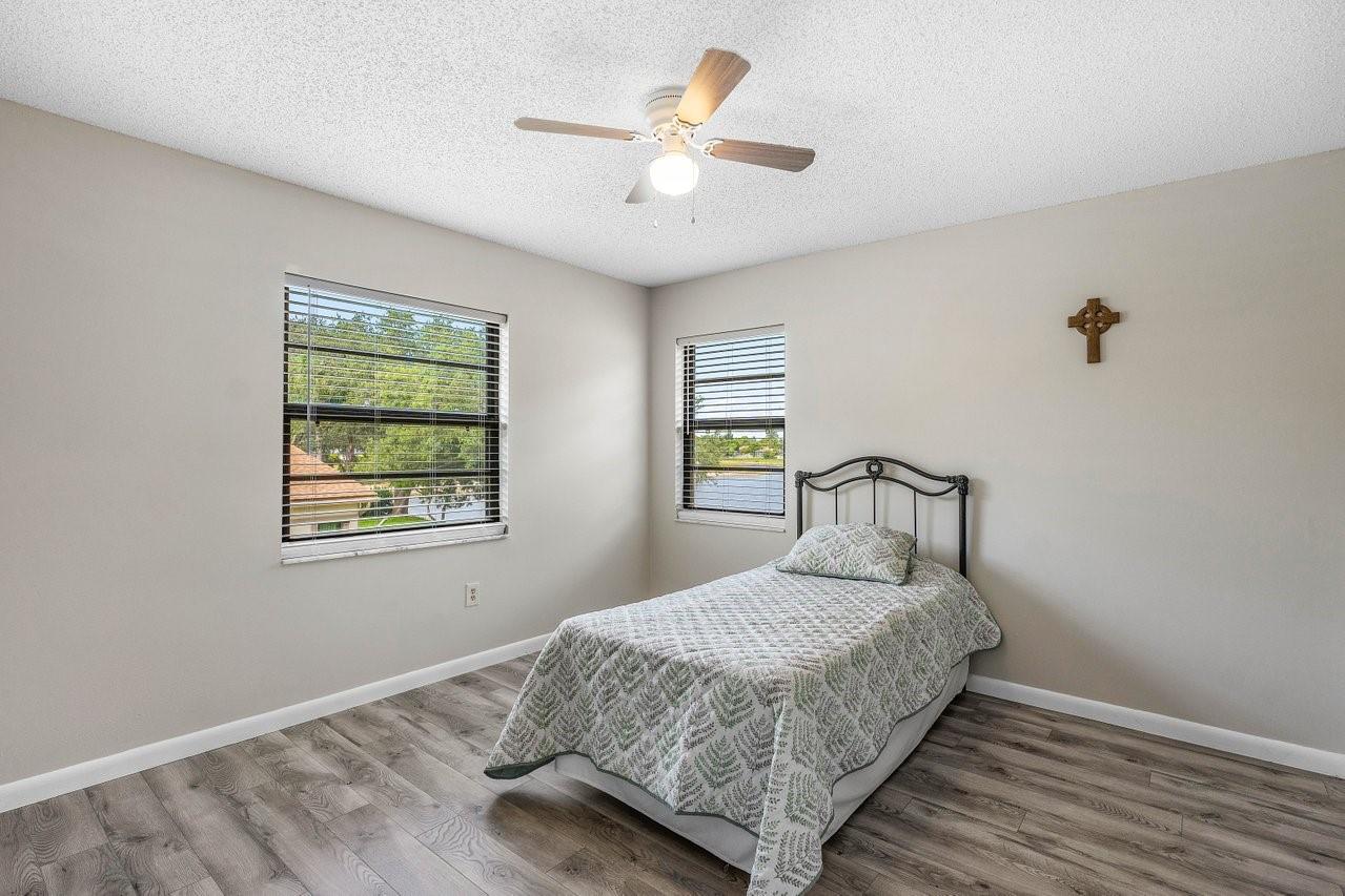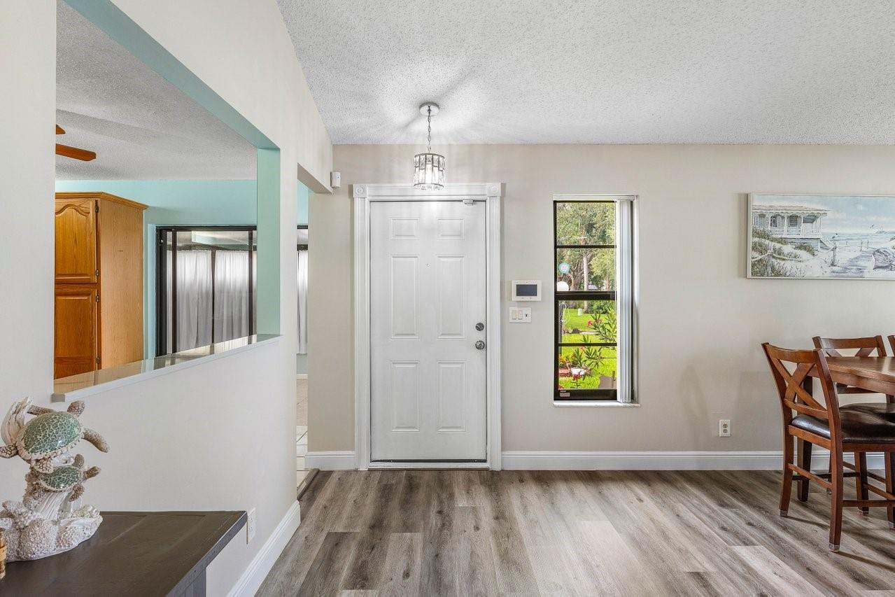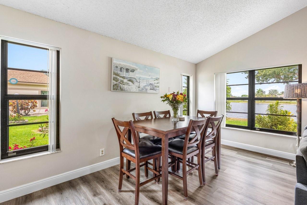 Exceptionally well kept, two-story townhome, 3-bedroom, 2.5-bathroom located in the desirable Lakeside Green community. This townhome offers a spacious open-concept layout with soaring vaulted ceilings & updated hurricane impact windows throughout. The main living & dining areas flow effortlessly into a enclosed lanai. The first-floor primary suite features a large walk-in closet, ensuite bath, and private sliding doors leading to lanai. Recent updates; tankless water heater(2024), new A/C unit(2022), roof replacement(2023), fresh interior paint & newer flooring. Enjoy resort-style amenities including two community pools, a clubhouse, fitness center, game room, tennis & badminton courts, playground, & scenic walking/bike trails. The HOA covers cable, exterior maintenance, & landscaping.