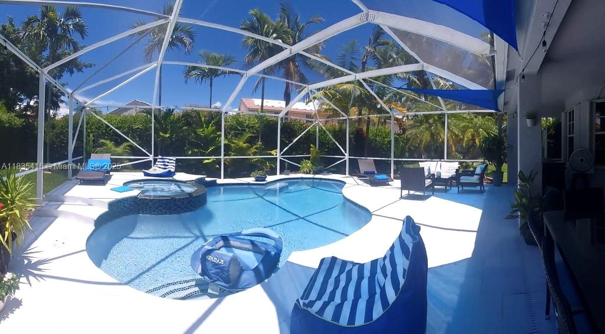Stunning smart home fully equipped with top-tier upgrades and luxury finishes. Includes generator, gas tank, and professional security system (leased as owned) with cameras, wireless sensors, and smart front door lock. Total home automation via Samsung SmartThings and Alexa: control lights, outlets, irrigation, and fire/smoke alarms remotely. Saltwater pool with sand-blasted white marble deck (anti-slip), Diamond Brite interior finish, Bluetooth multicolor LED lights, and vacuum cleaner system. Premium surround sound with 5 indoor speakers, subwoofer, and 2 outdoor speakers. Custom-built family room unit with integrated audio and video system. Brand-new 10-ton A/C, new water heater, recently installed roof up to latest city code (7 years). Includes 3 sheds (one dedicated for the generator